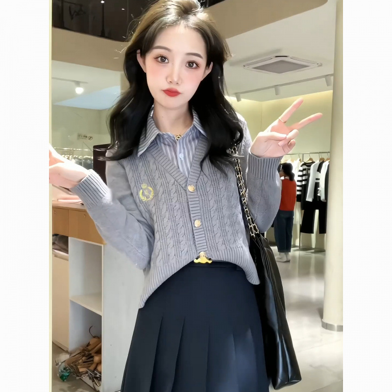 가을 겨울 소금 스타일 한국 드라마 달콤한 프랑스 새 스타일 느낌 아카데미 스타일 가짜 투피스 톱 스커트 투피스 세트 여성스토어 가기