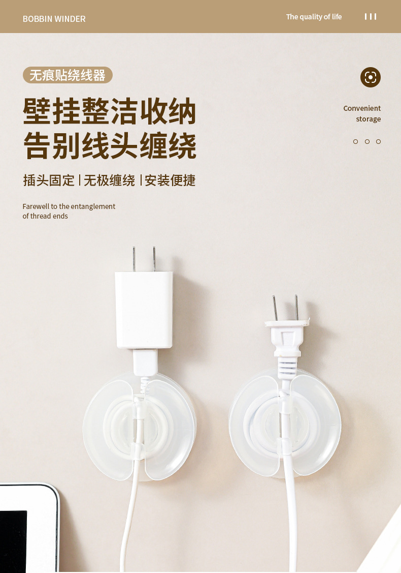 • 商品名称:绕线卡扣二合一无痕贴绕线器--透明白