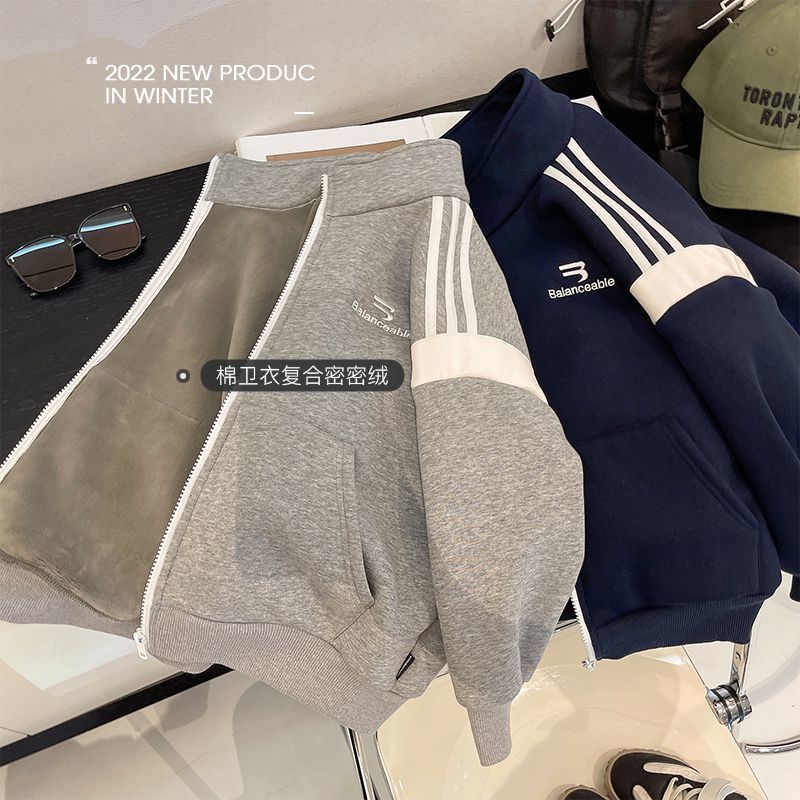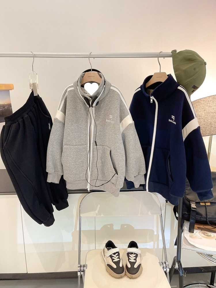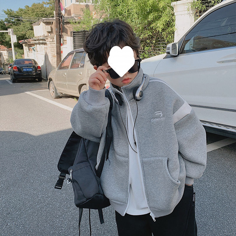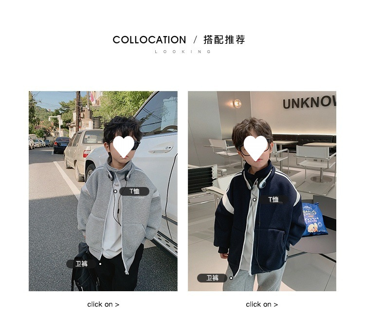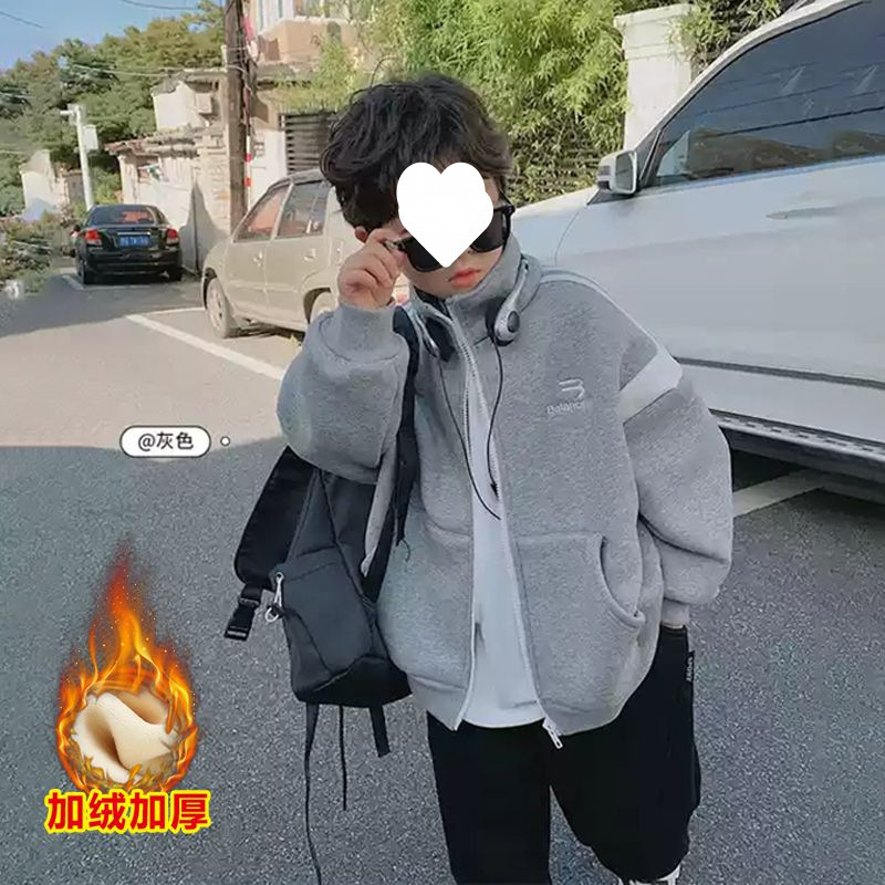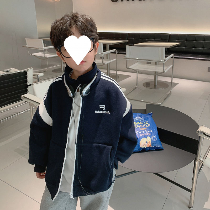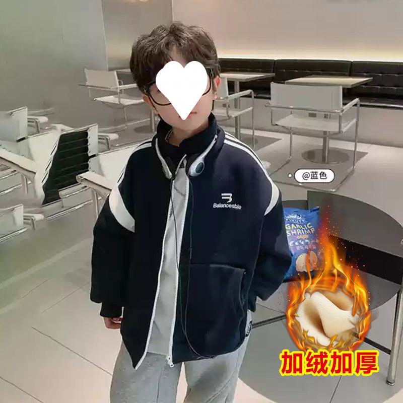 보이즈 코트 2025 겨울 뉴 보이즈 대비 컬러 치세 벨벳 따뜻한 유행 잘 생긴 칼라 야구 세트 탑
