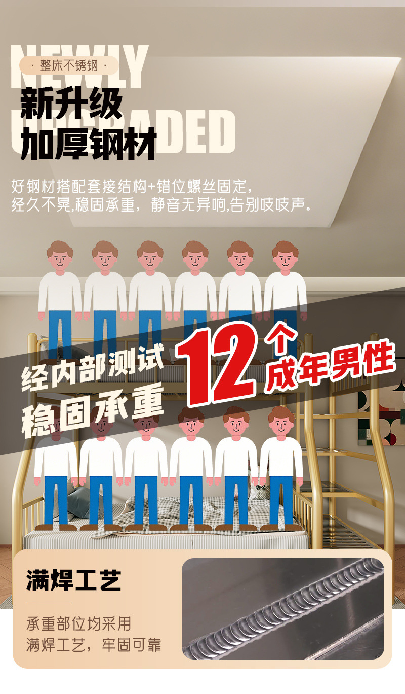 두꺼운 스테인레스 스틸 상하 벙크 더블 침대 스텝 사다리 어린이 학생 기숙사 렌탈 룸 아이언 높고 낮은 침대스토어 가기