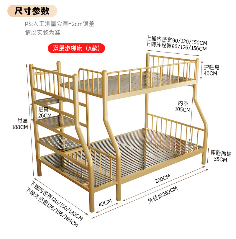 두꺼운 스테인레스 스틸 상하 벙크 더블 침대 스텝 사다리 어린이 학생 기숙사 렌탈 룸 아이언 높고 낮은 침대