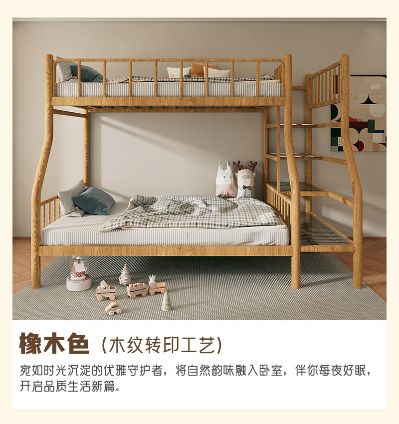 • 오크색 스테인리스 스틸 침대 프레임 + 통기성 침대판