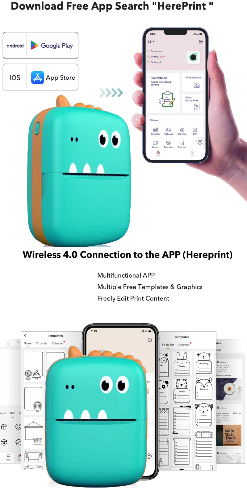 국경 간 무역 미니 라벨 사진 무선 연결 전화 열 프린터 공장 미니 프린터