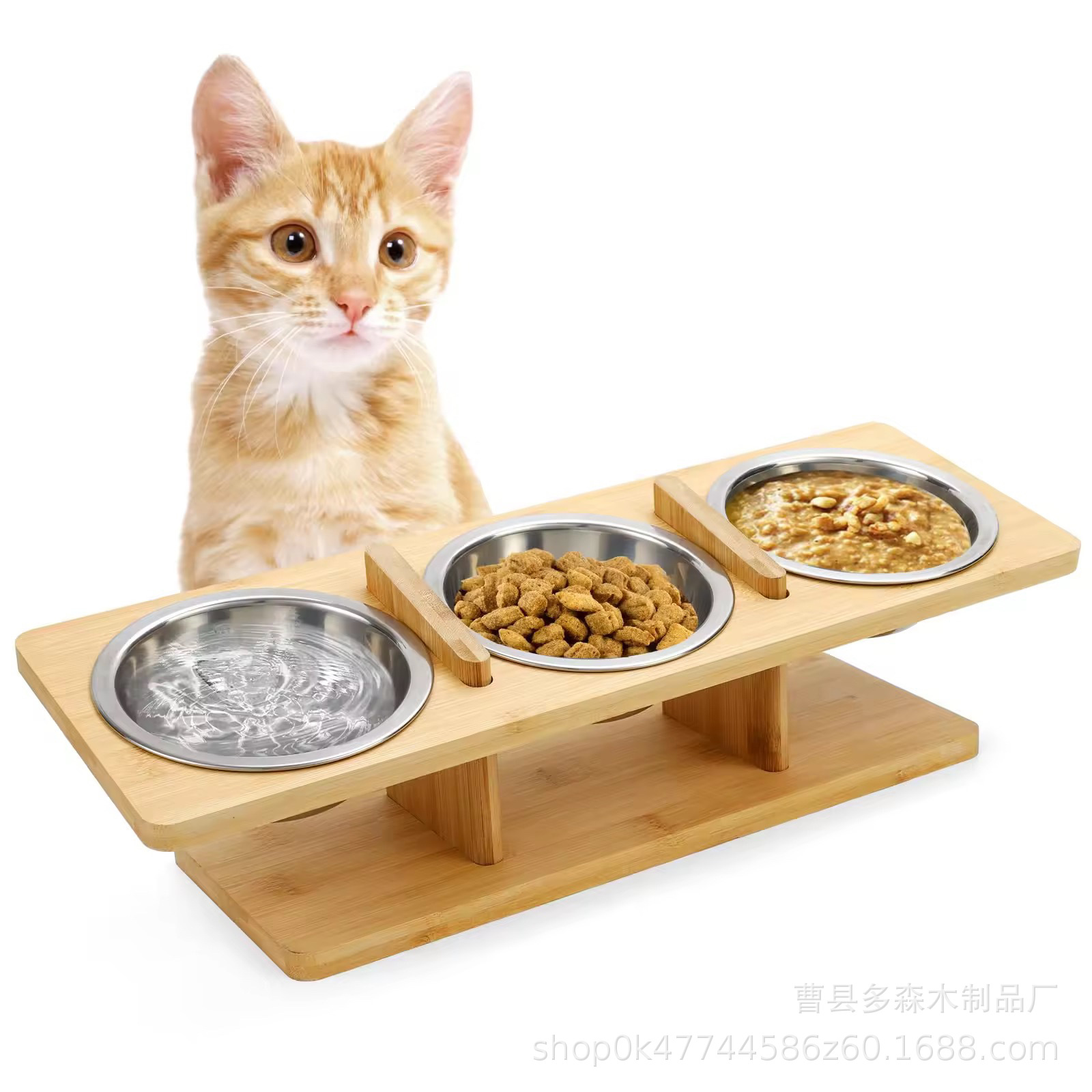 국경 간 나무 애완 동물 그릇 랙 경사 입 수직 고양이 그릇 랙 대나무 높은 애완 동물 먹이 그릇 식용 랙 피더스토어 가기