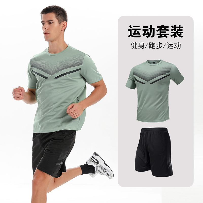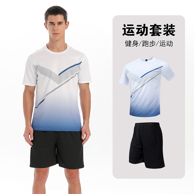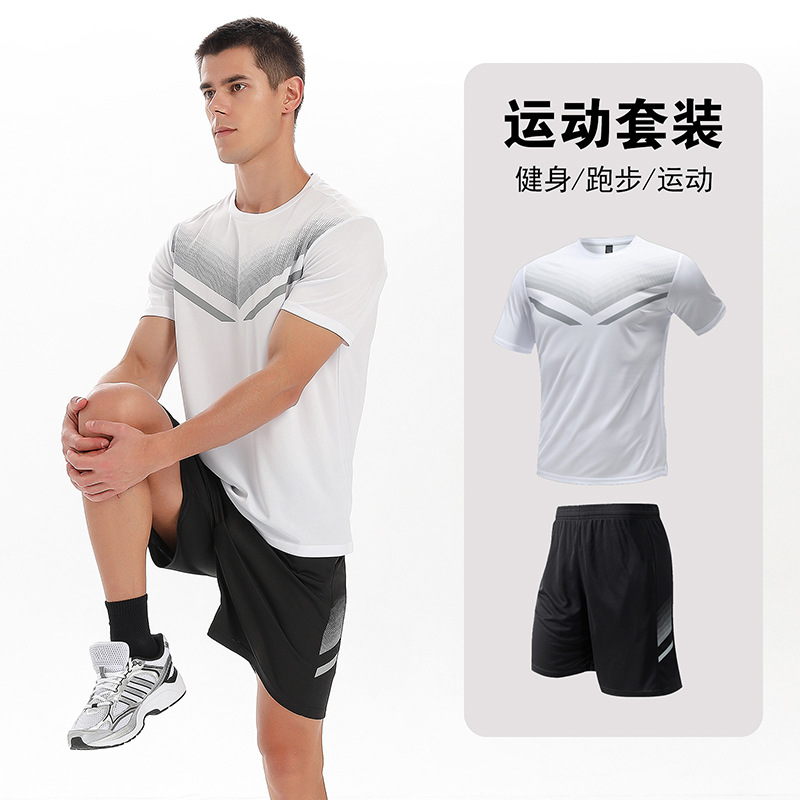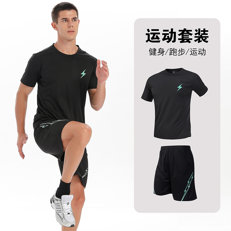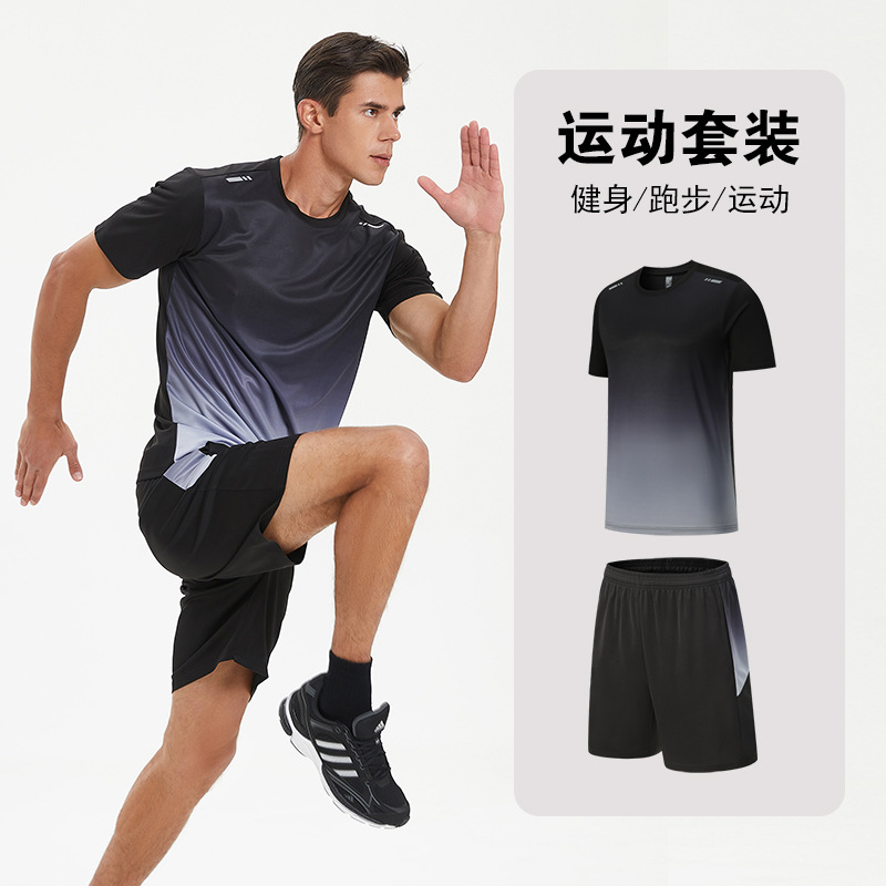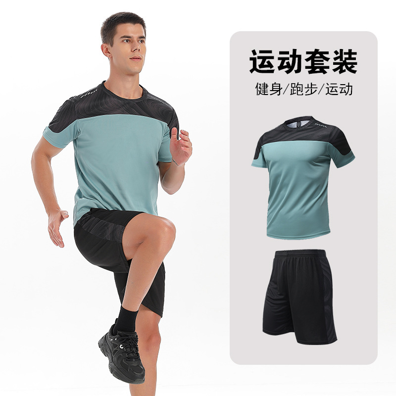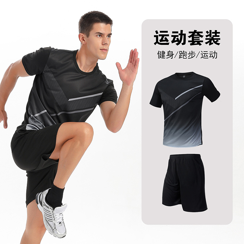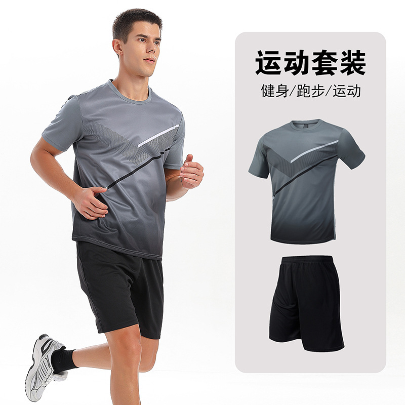 달리기 의류 세트 남성 육체 양육 훈련 의류 남녀 아이스 실크 반소매 티셔츠 아침 달리기 피트니스 빠른 건조 스포츠 세트