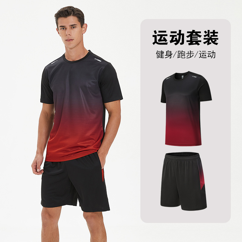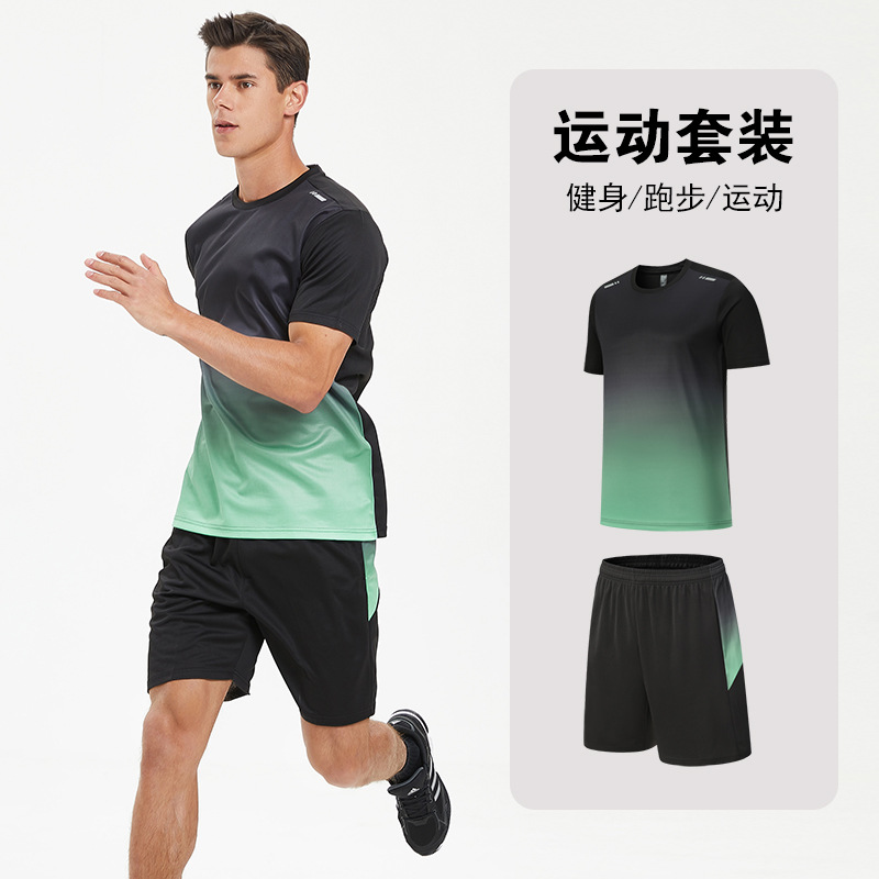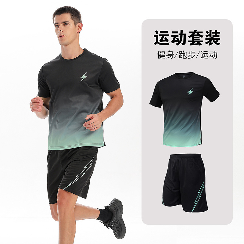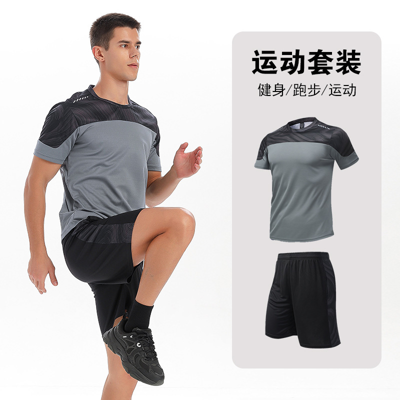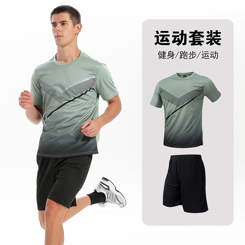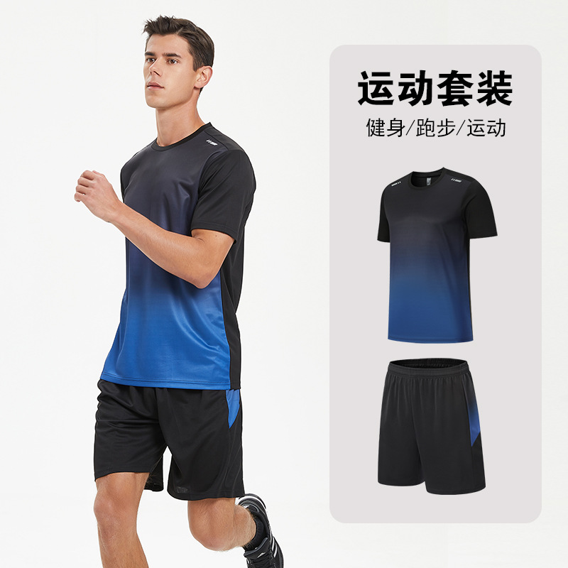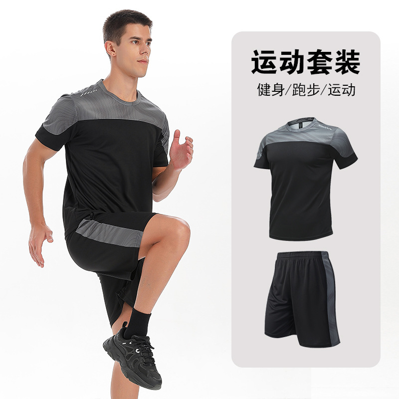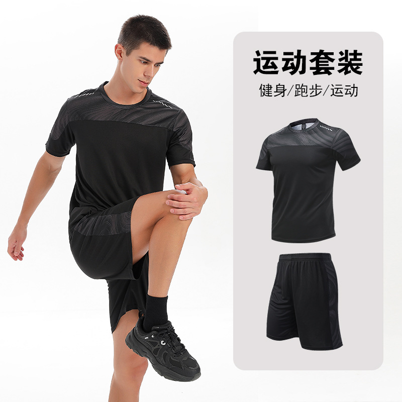 달리기 의류 세트 남성 육체 양육 훈련 의류 남녀 아이스 실크 반소매 티셔츠 아침 달리기 피트니스 빠른 건조 스포츠 세트