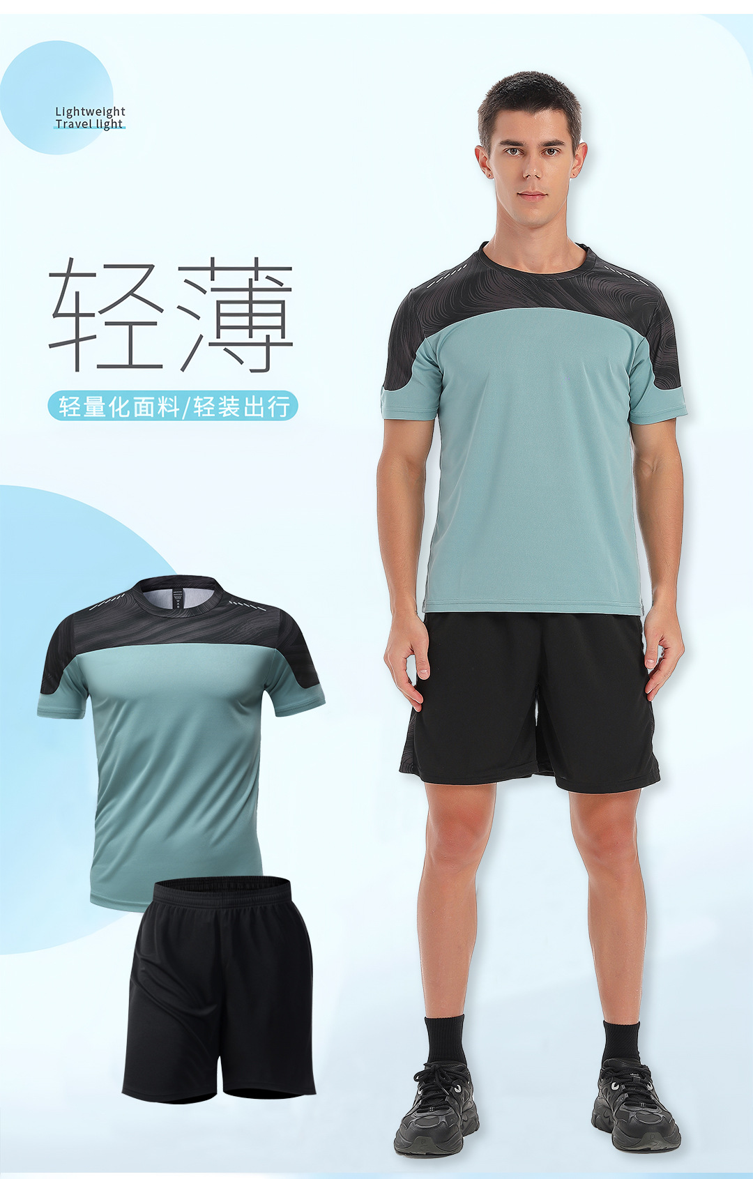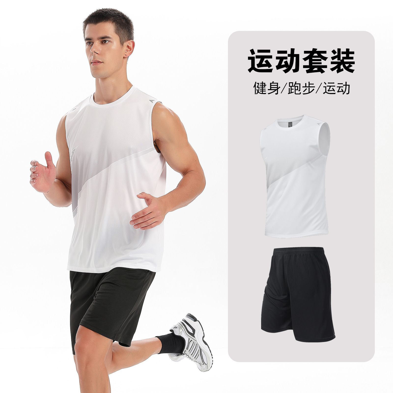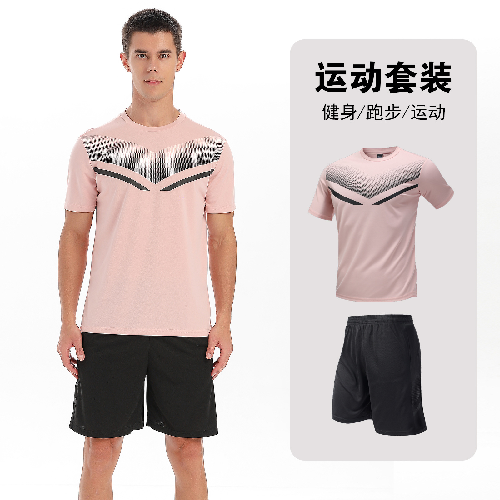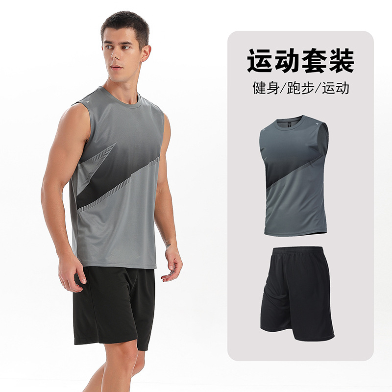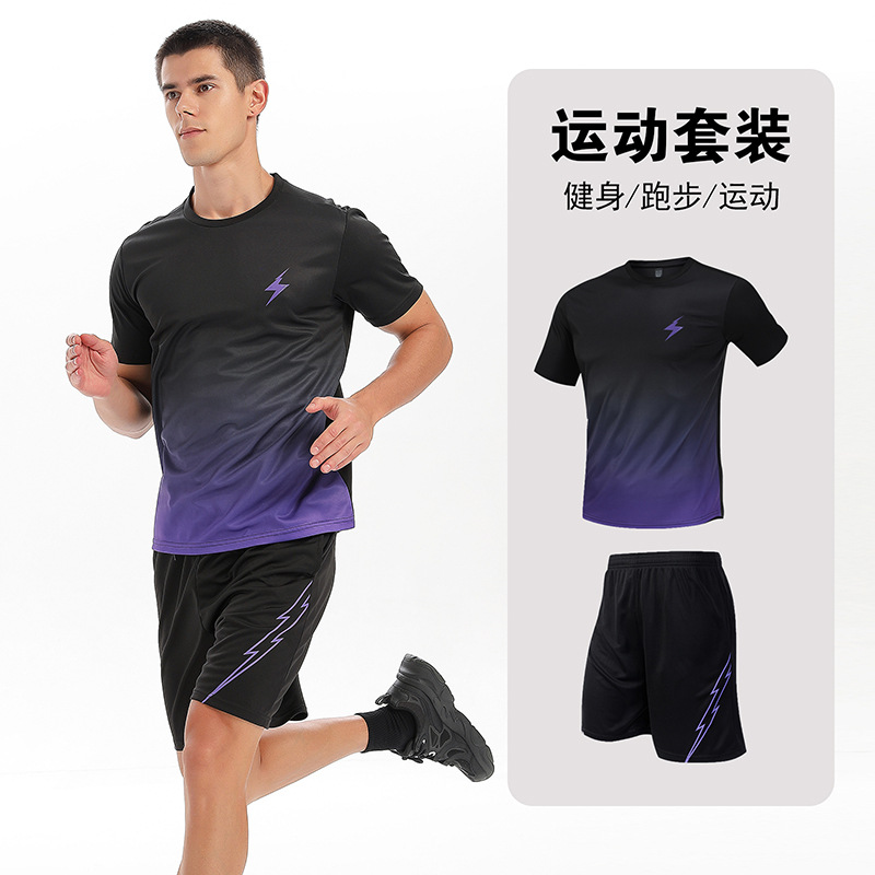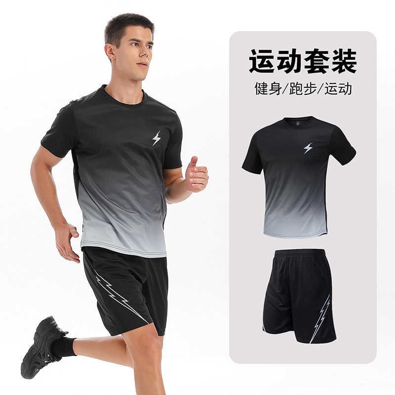달리기 의류 세트 남성 육체 양육 훈련 의류 남녀 아이스 실크 반소매 티셔츠 아침 달리기 피트니스 빠른 건조 스포츠 세트
