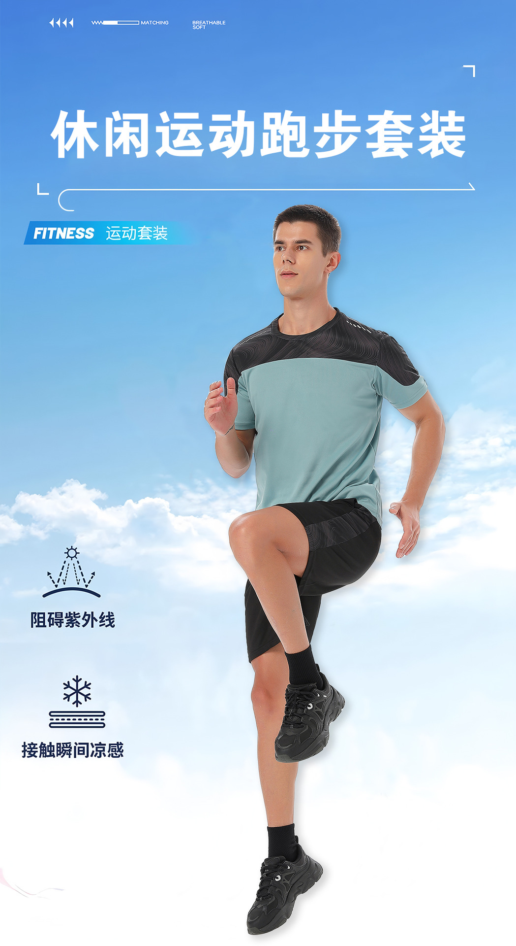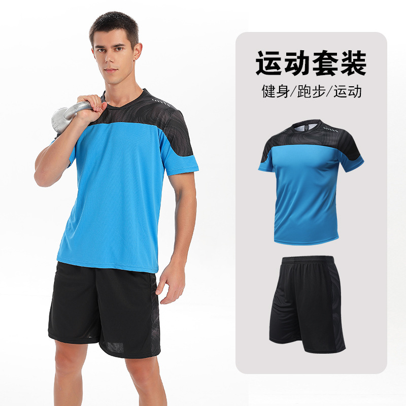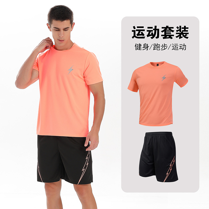 달리기 의류 세트 남성 육체 양육 훈련 의류 남녀 아이스 실크 반소매 티셔츠 아침 달리기 피트니스 빠른 건조 스포츠 세트스토어 가기