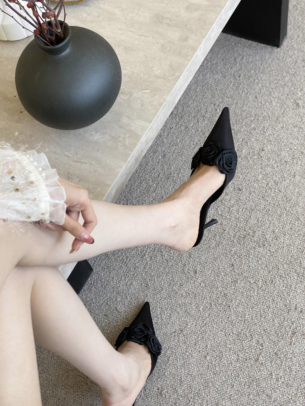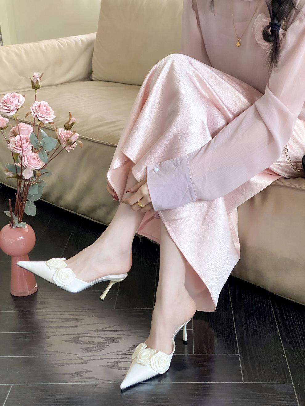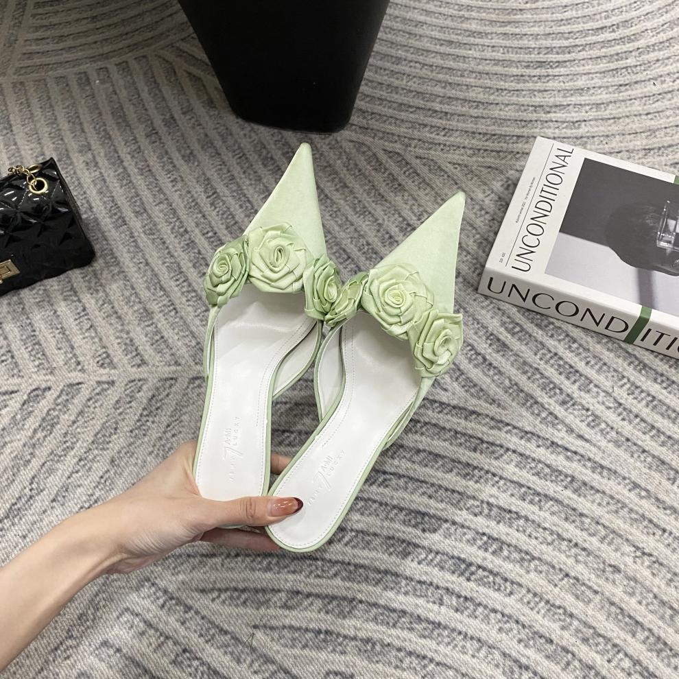 봄 2025 새로운 뾰족한 얇은 굽 하이힐 우아한 슬림 프랑스 유행 스테노 아름다운 여성 하프 슬리퍼