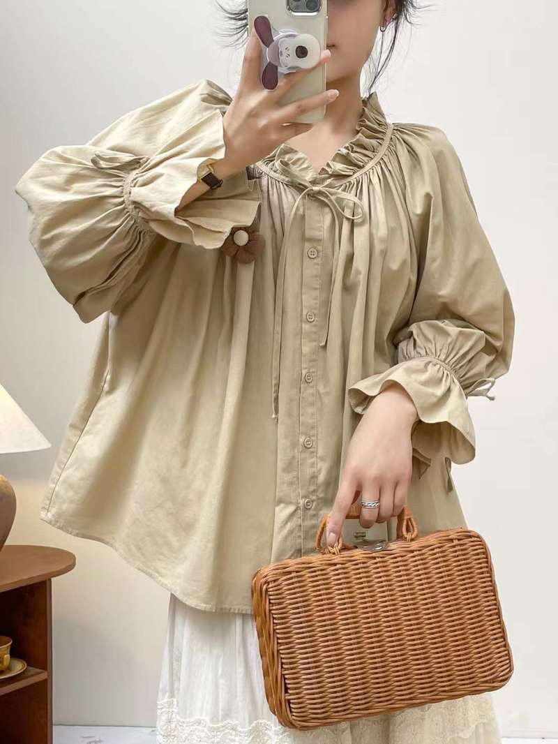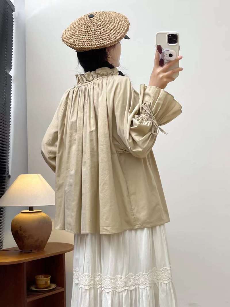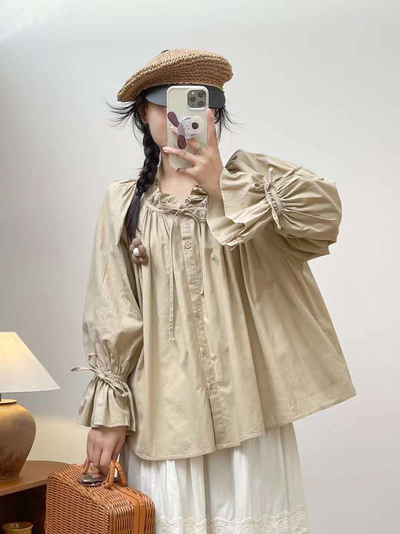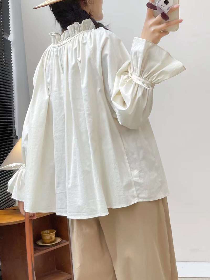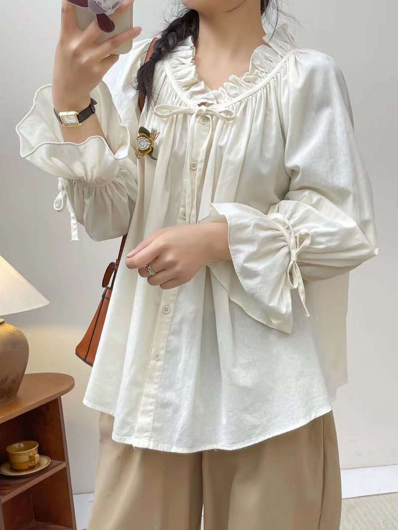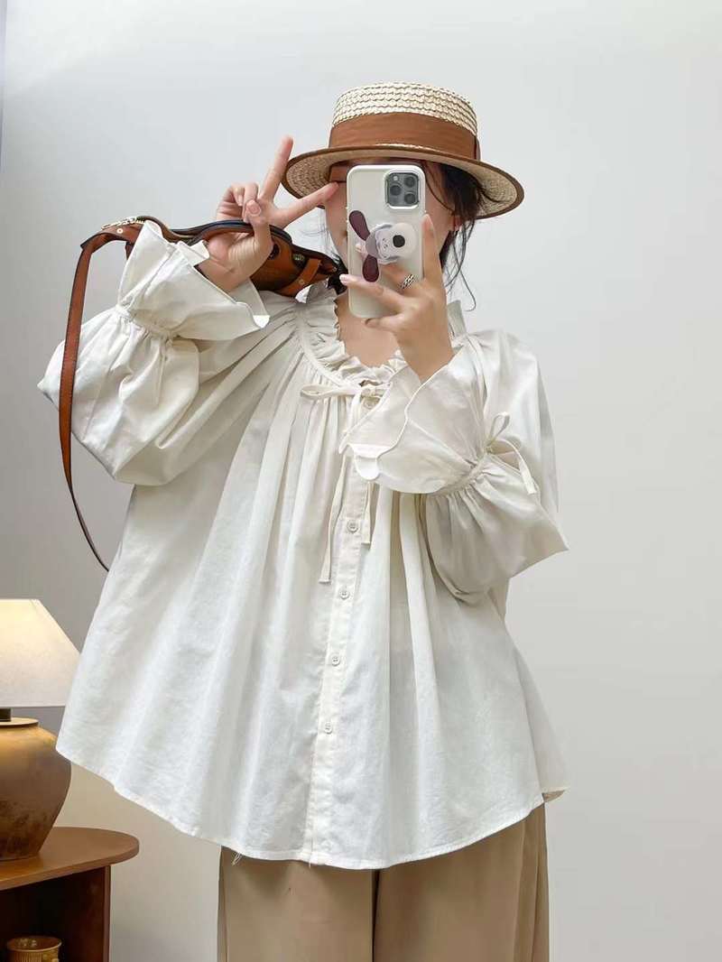 한국의 새로운 도착 곰팡이 레이스 칼라 느슨한 대형 버전 여성 인형 셔츠 긴 소매 탑스토어 가기