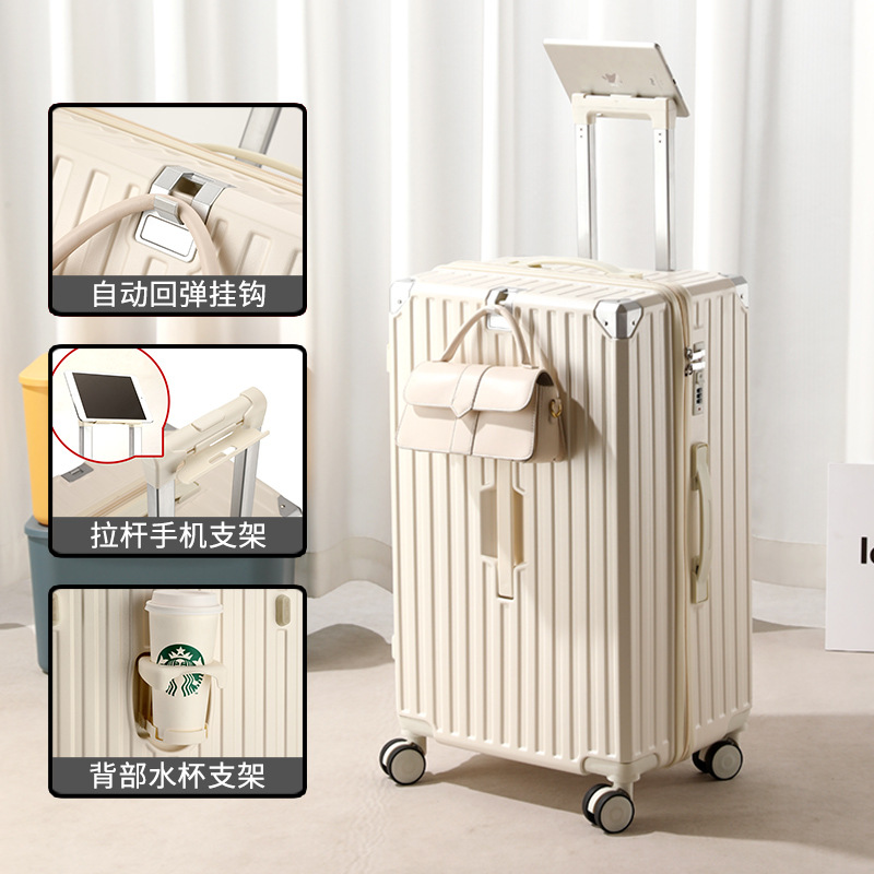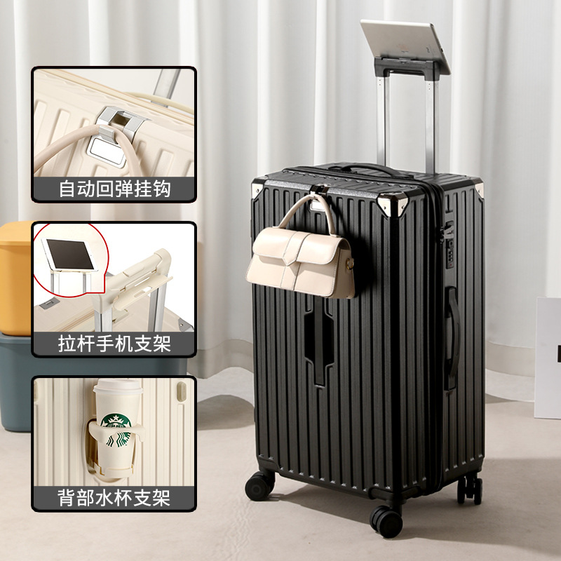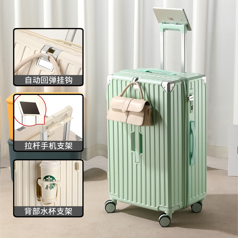 새로운 편리한 전면 개방 뚜껑 다기능 트롤리 케이스 내구성 강한 유니버설 휠 26 인치 여행 비밀번호 상자