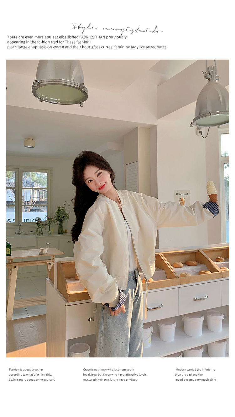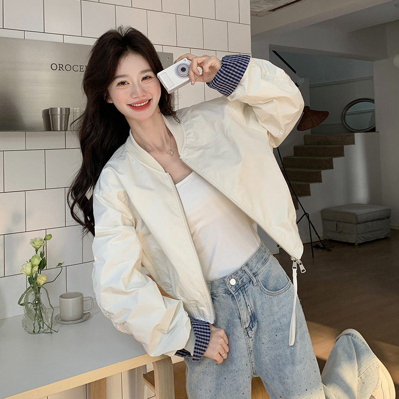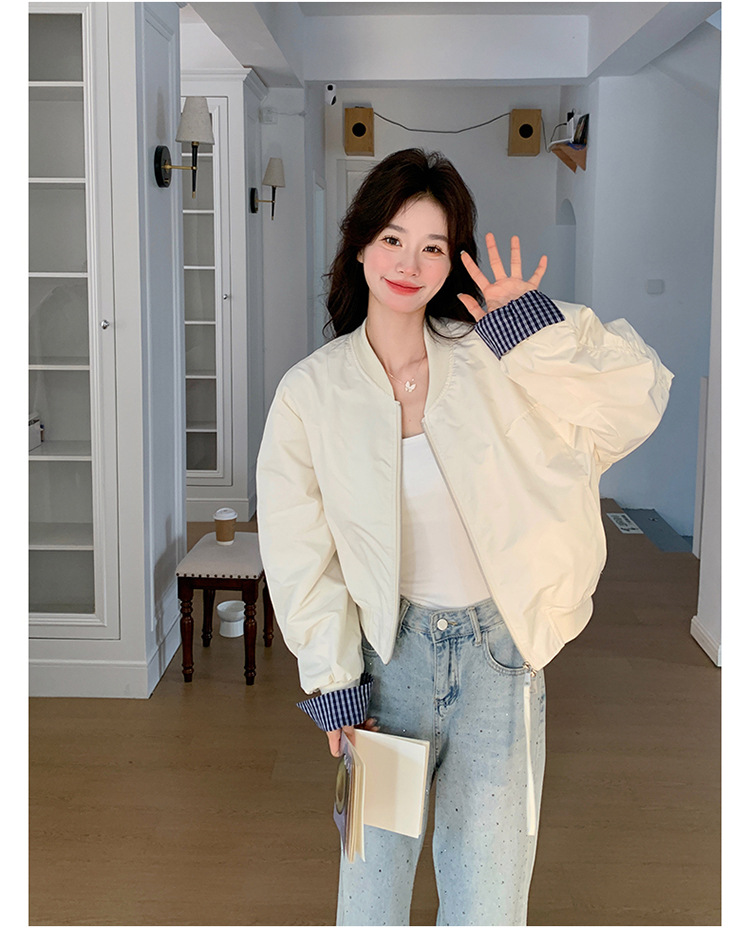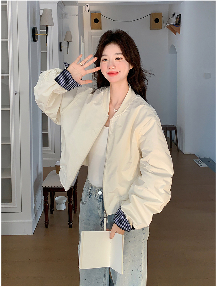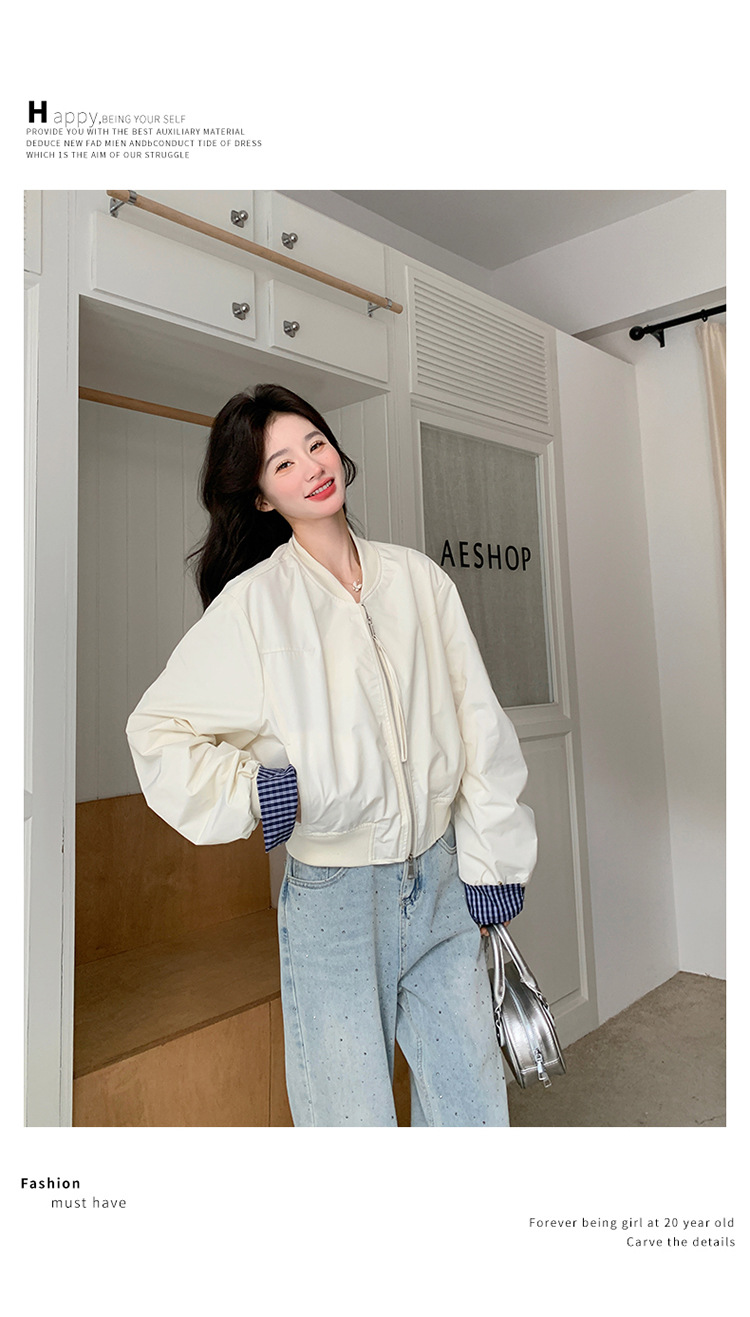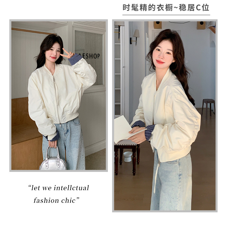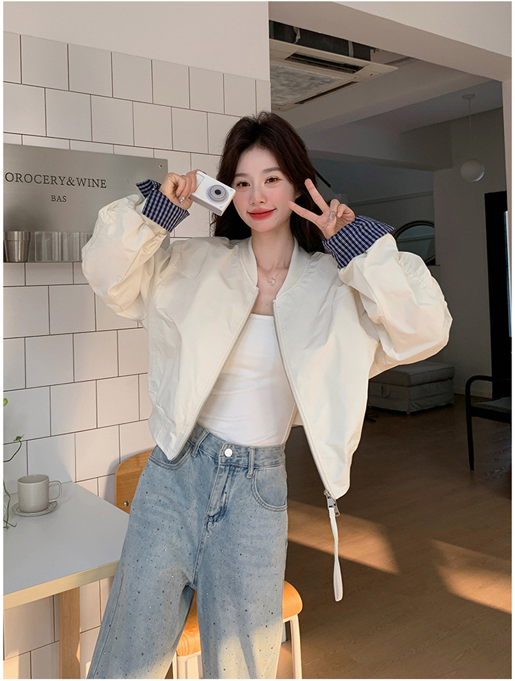 [멩메이] 25 춘이 패미 화이트 디자인 스티칭 야구 세트 재킷 여성 코리안 루즈 스위트 쿨 재킷