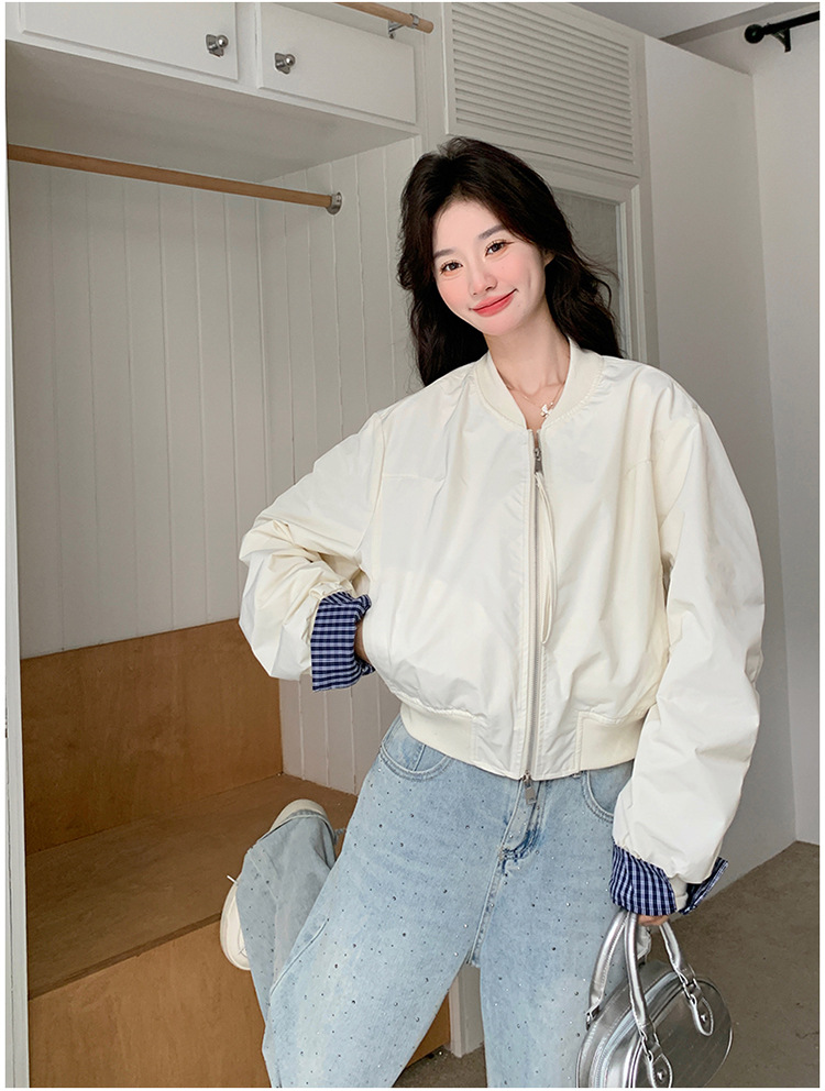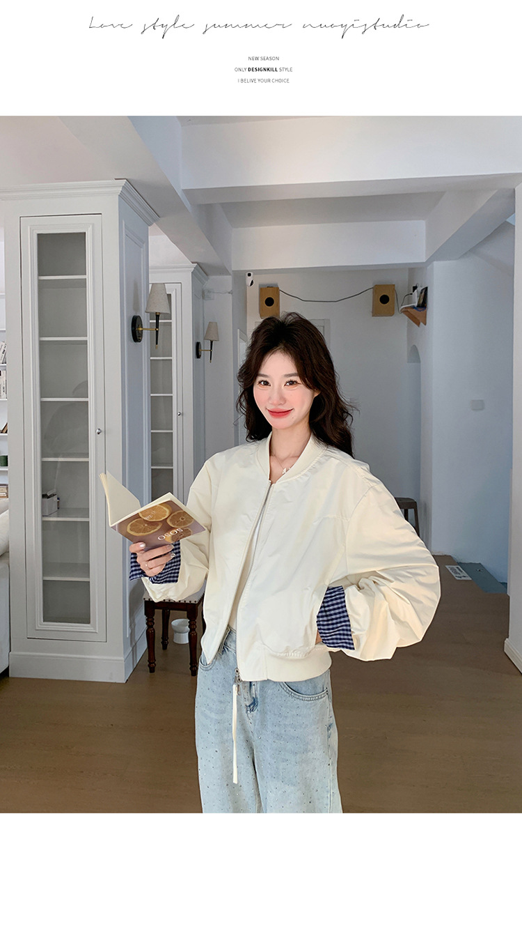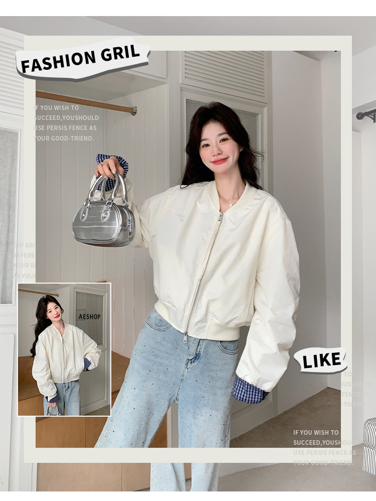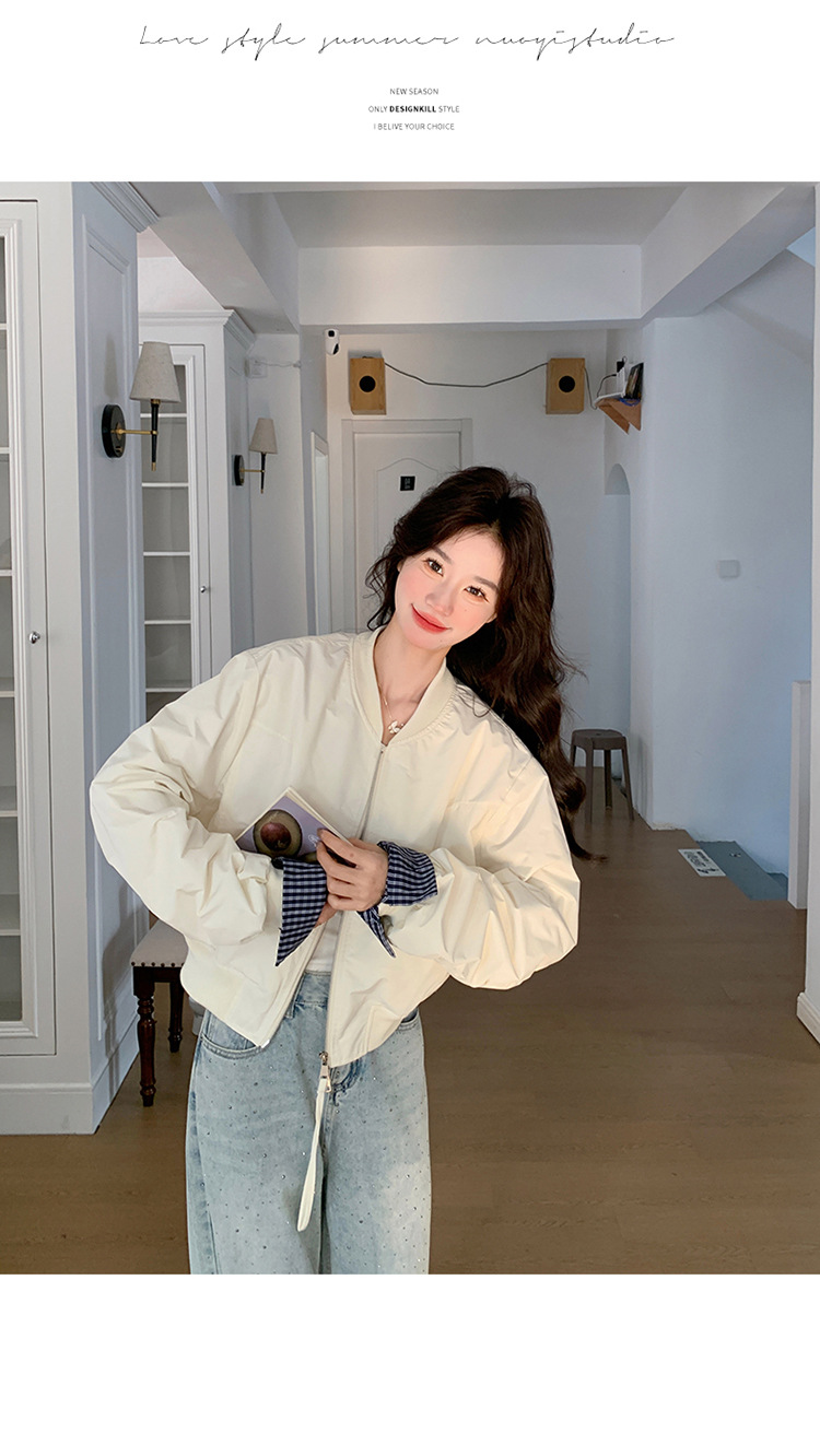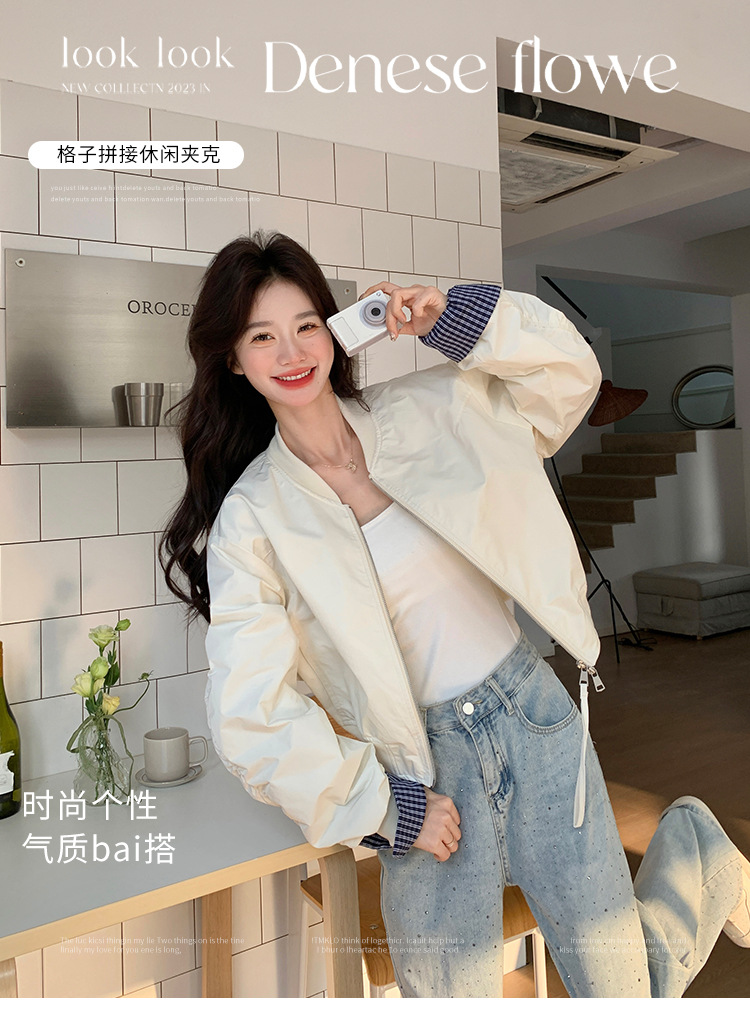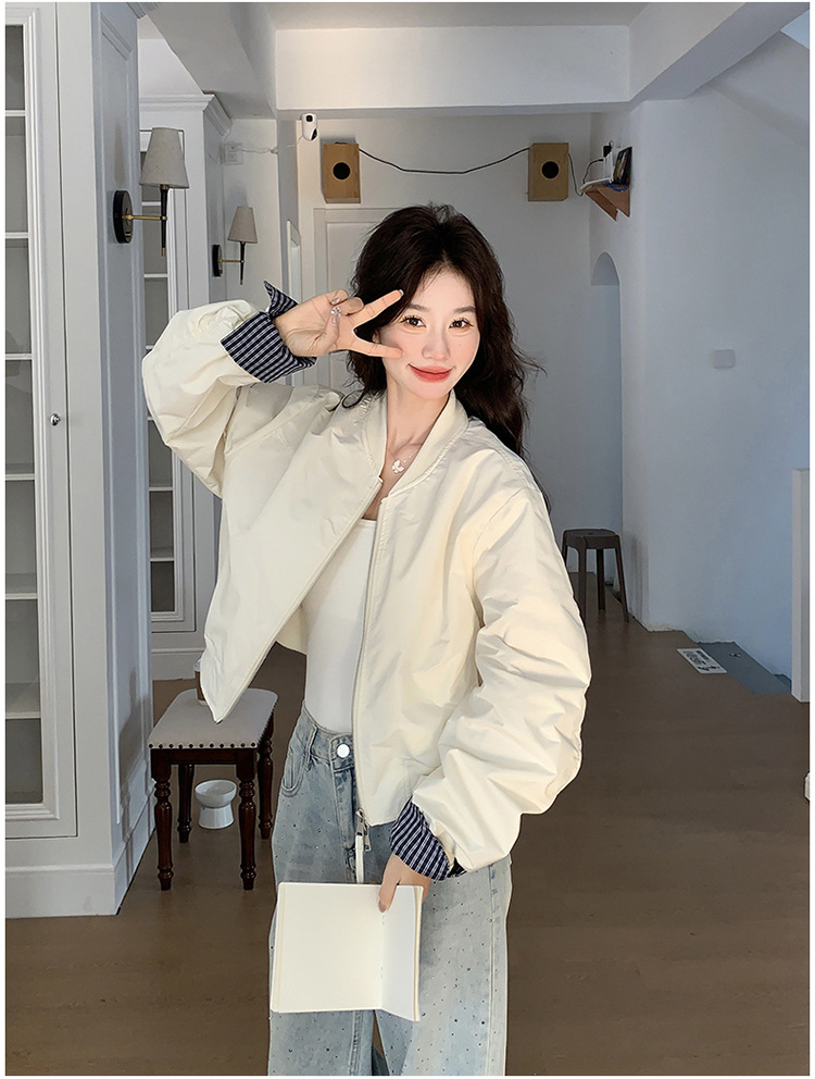 [멩메이] 25 춘이 패미 화이트 디자인 스티칭 야구 세트 재킷 여성 코리안 루즈 스위트 쿨 재킷