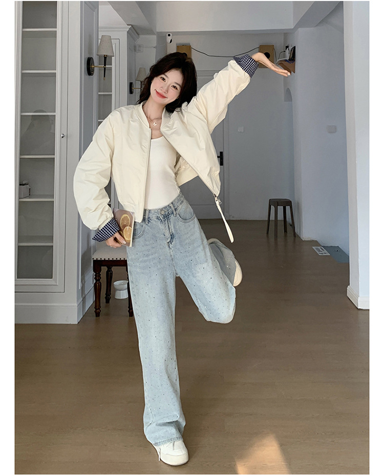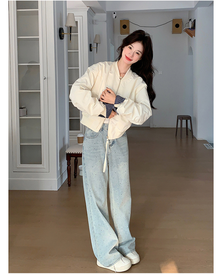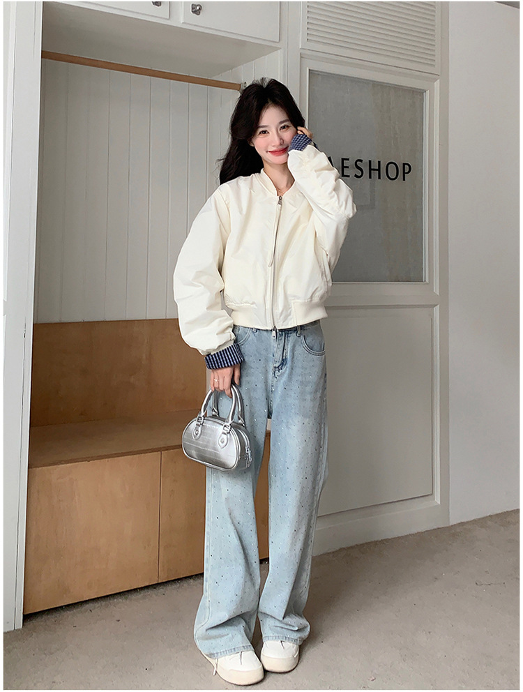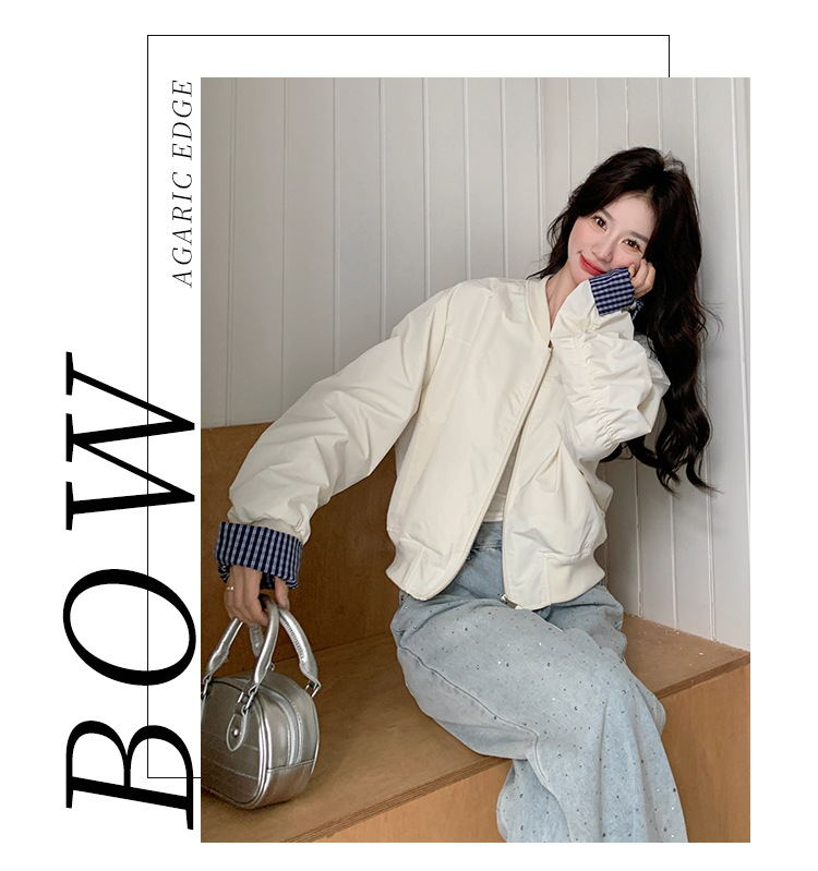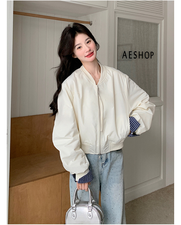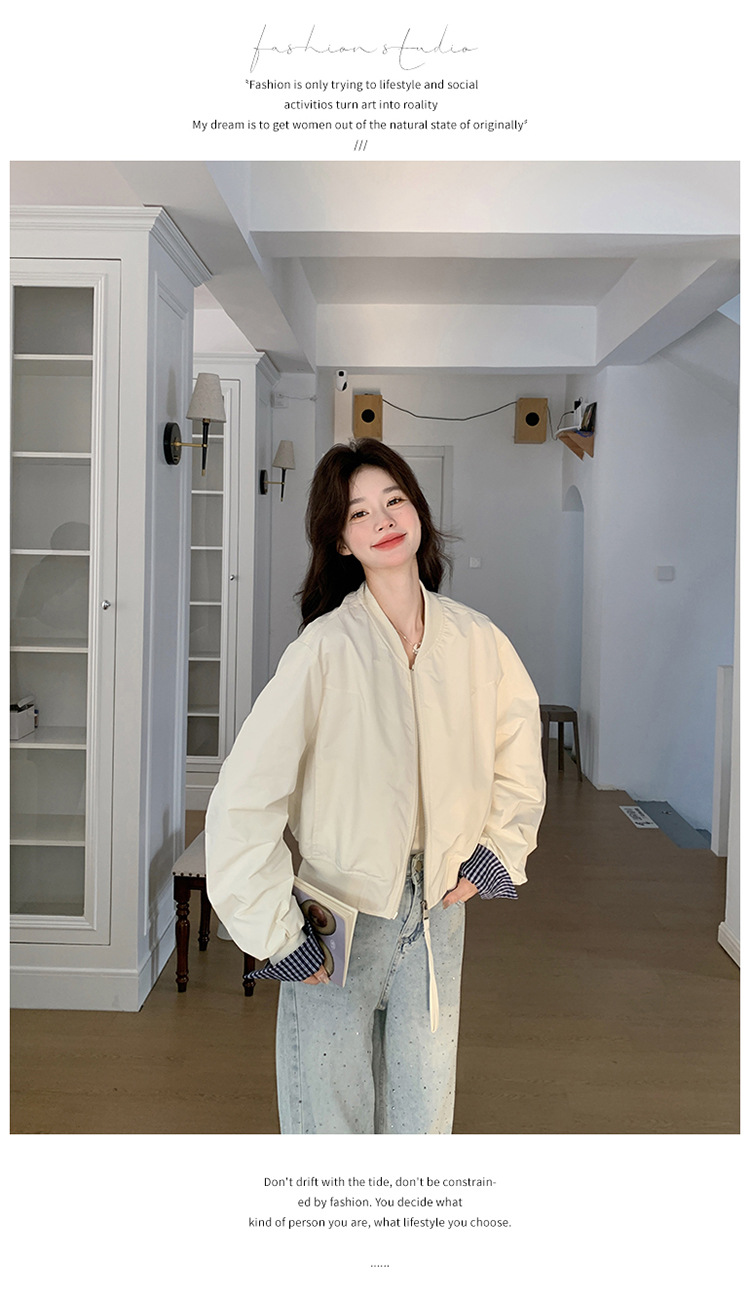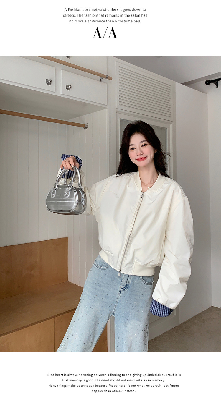 [멩메이] 25 춘이 패미 화이트 디자인 스티칭 야구 세트 재킷 여성 코리안 루즈 스위트 쿨 재킷
