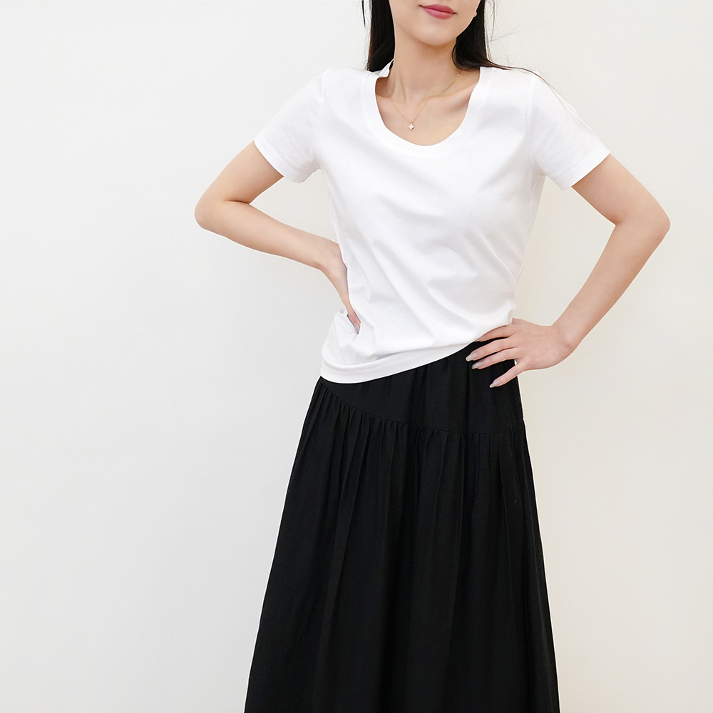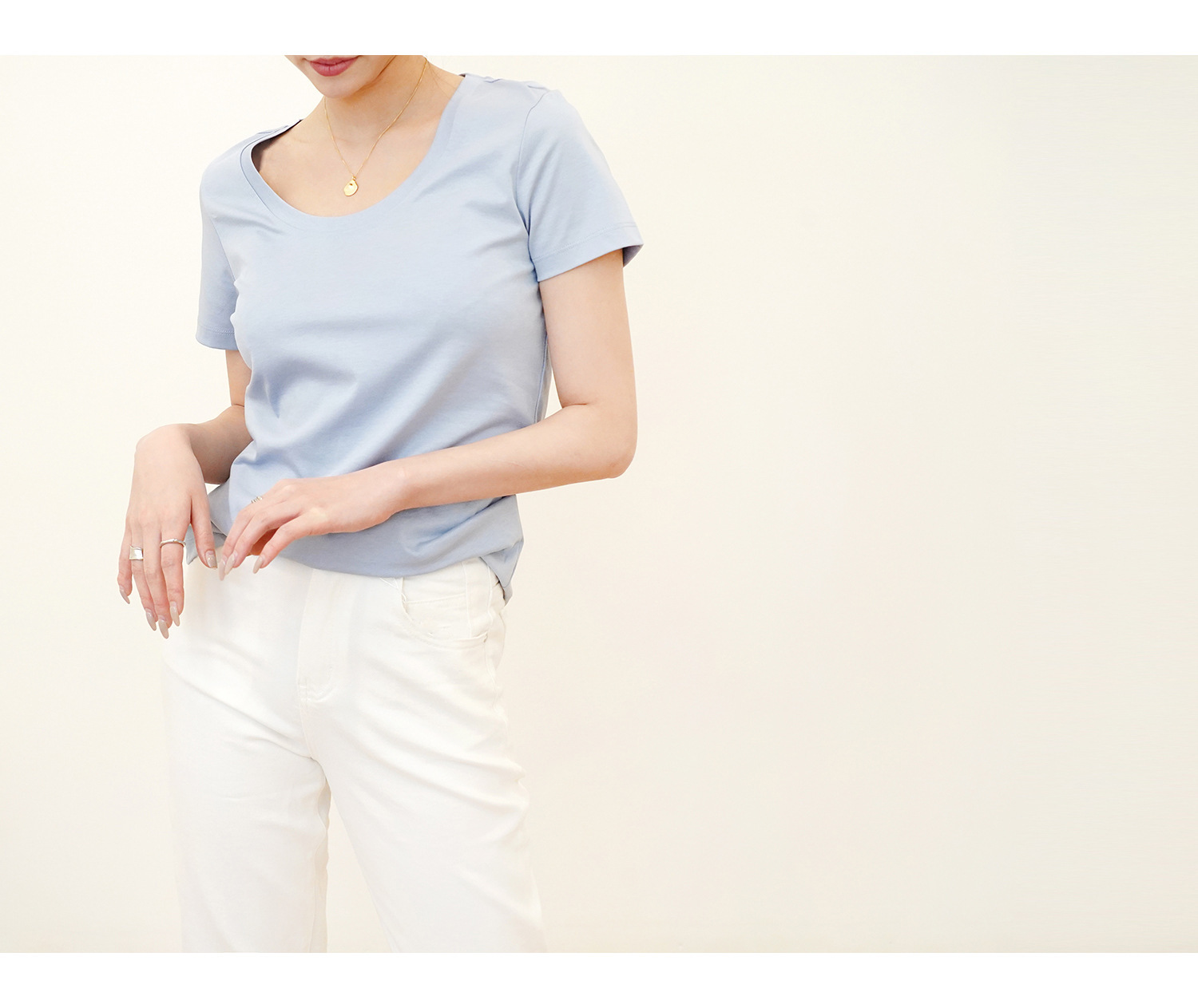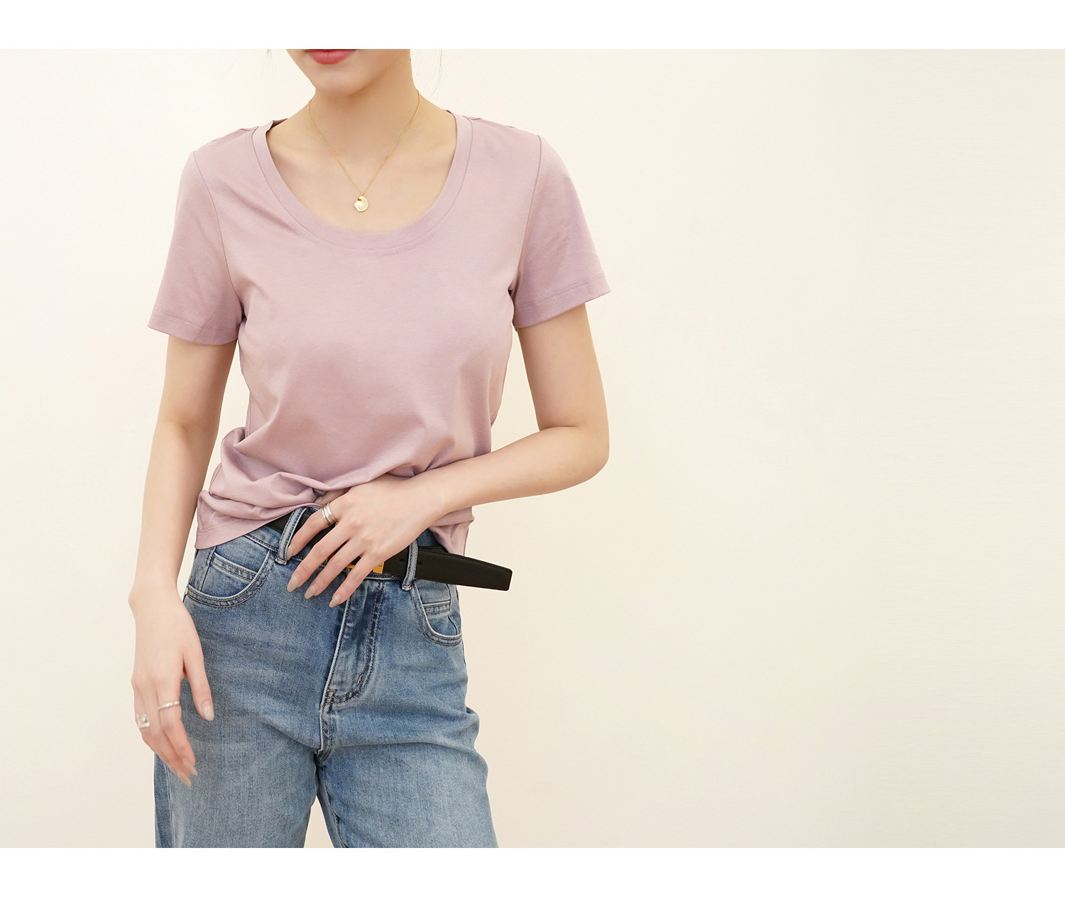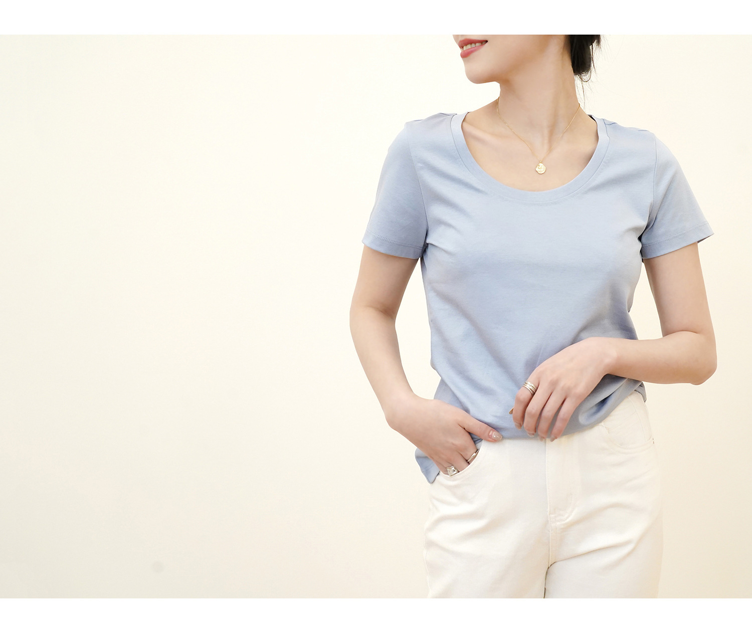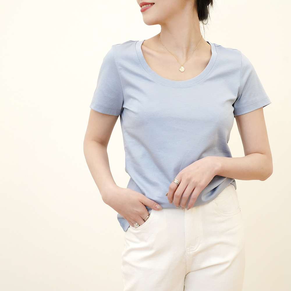 고급 센스 멀 베리 실크 칼라 본 큰 목 머서 면화 반팔 티셔츠 여성용 대형 라운드 넥 칙칙한 로우 칼라 탑스토어 가기