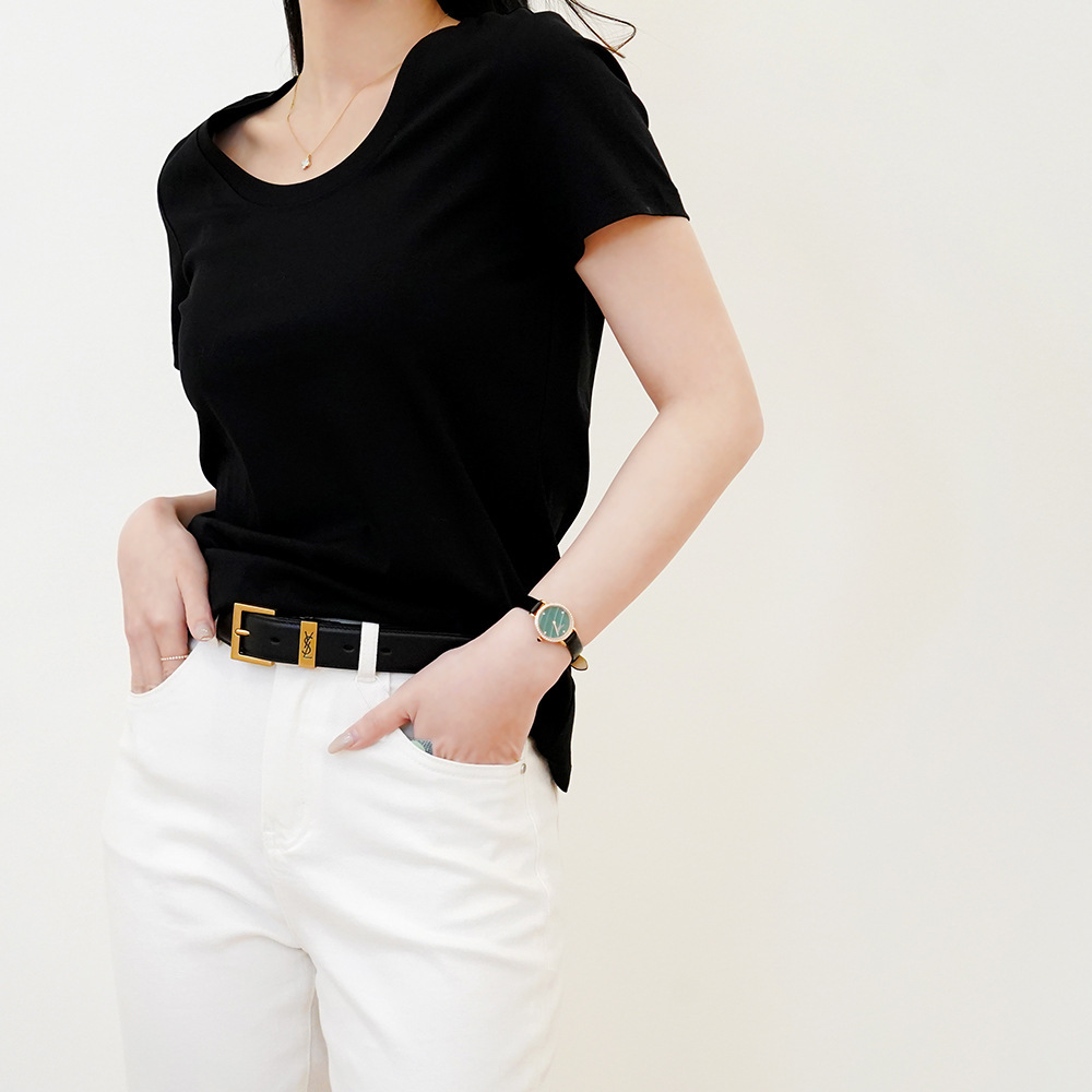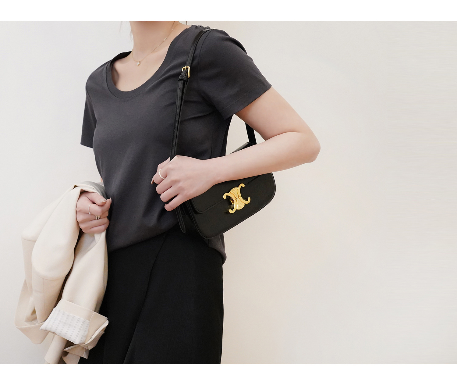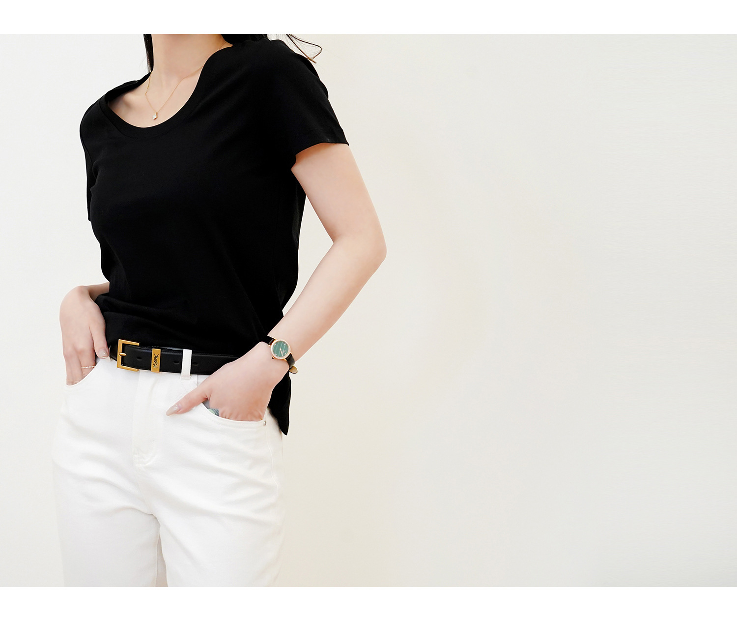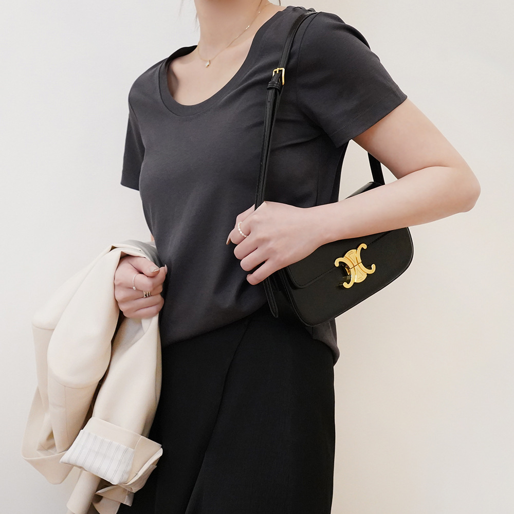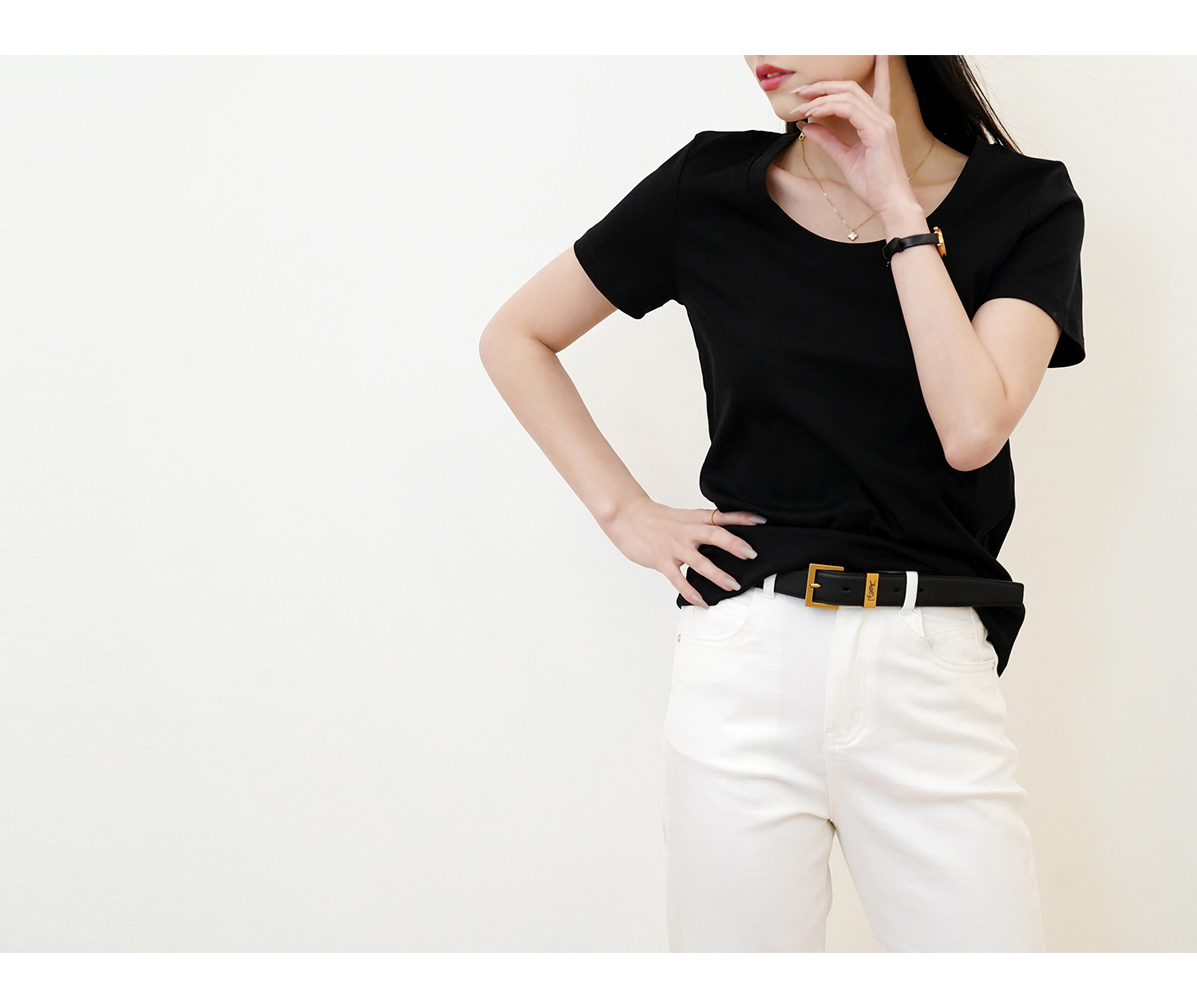 고급 센스 멀 베리 실크 칼라 본 큰 목 머서 면화 반팔 티셔츠 여성용 대형 라운드 넥 칙칙한 로우 칼라 탑스토어 가기