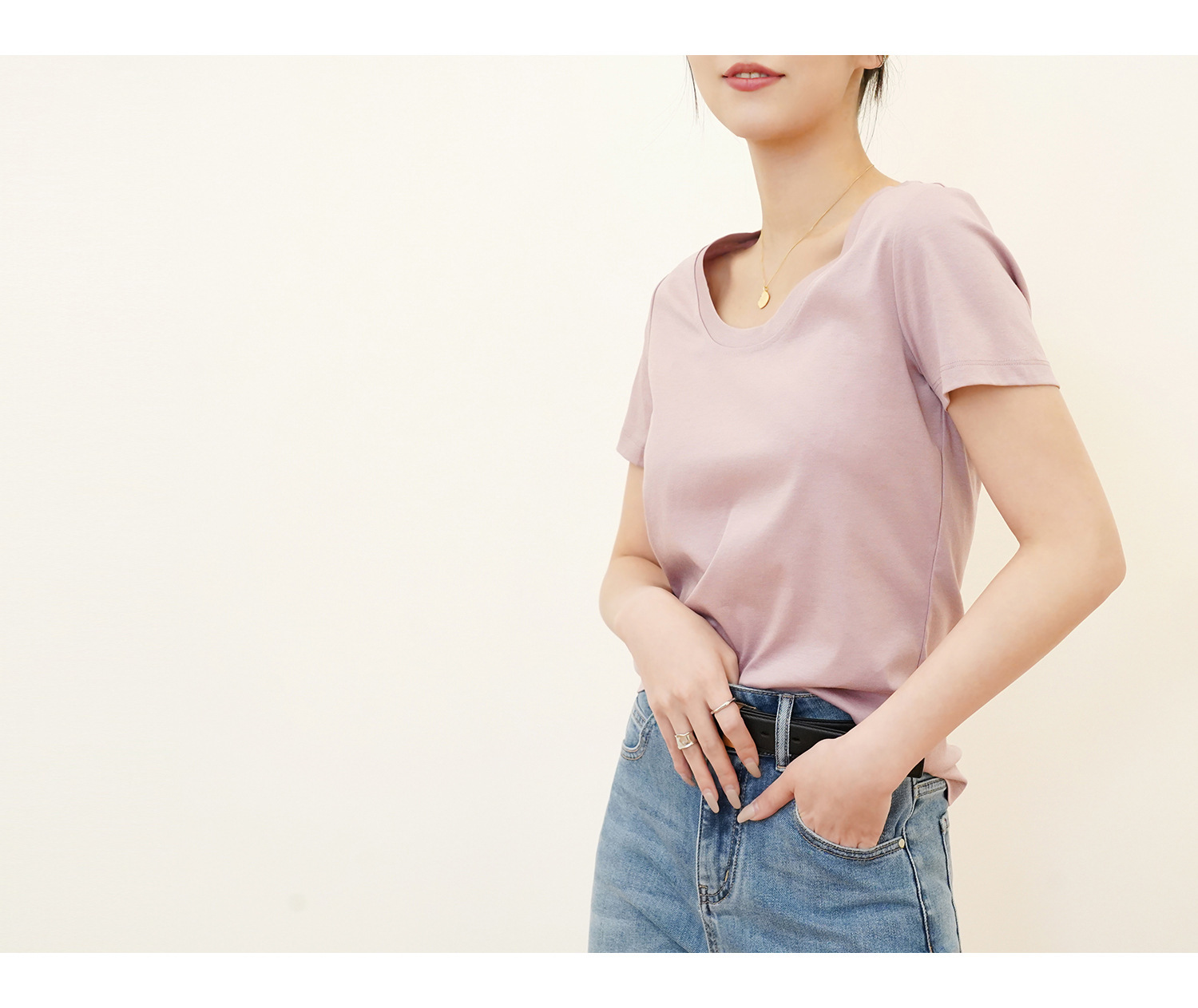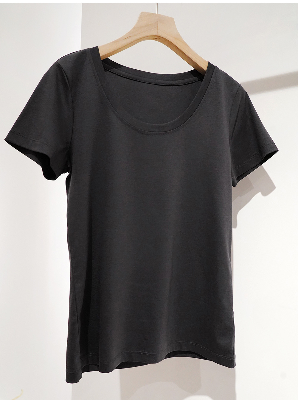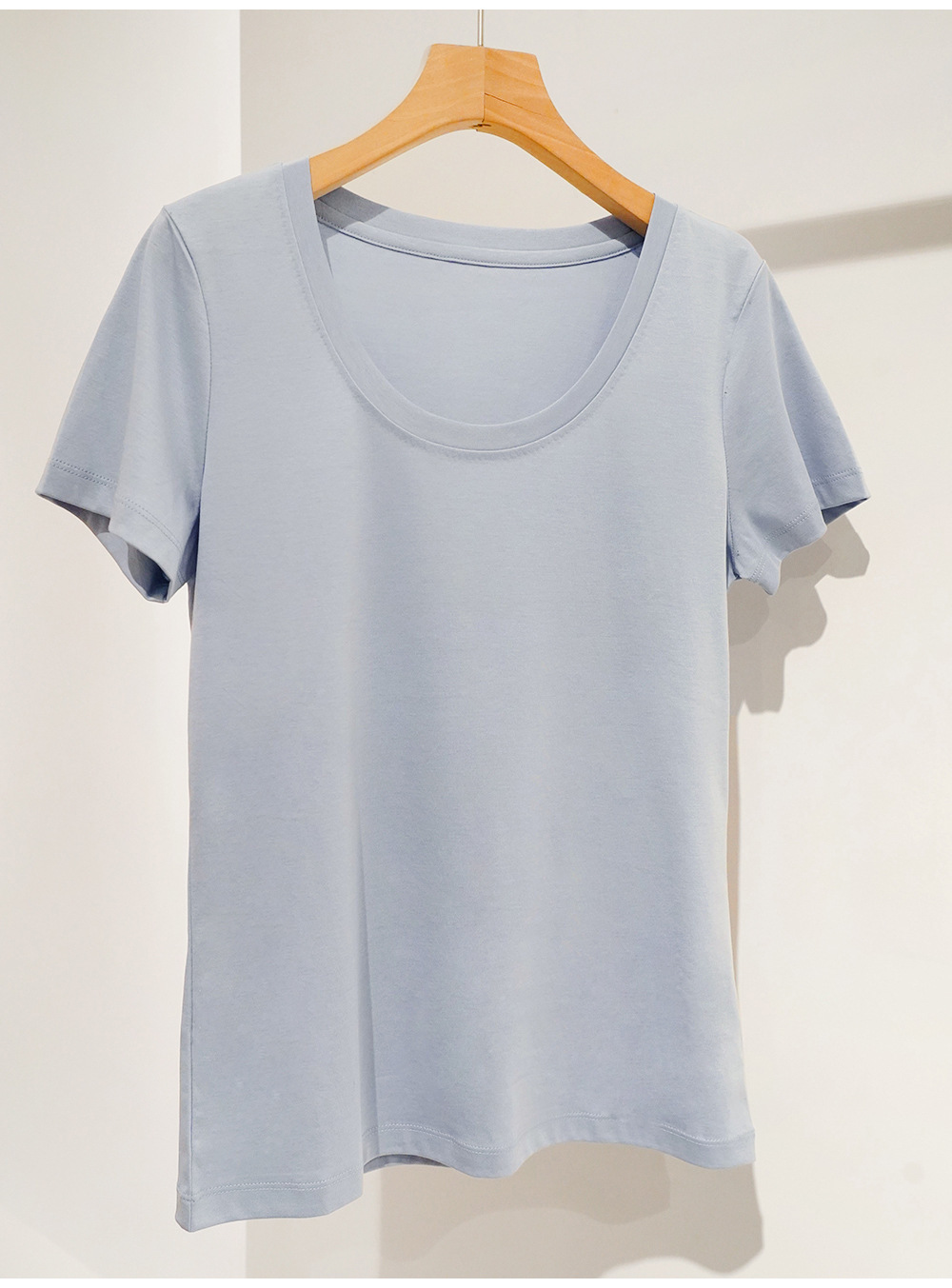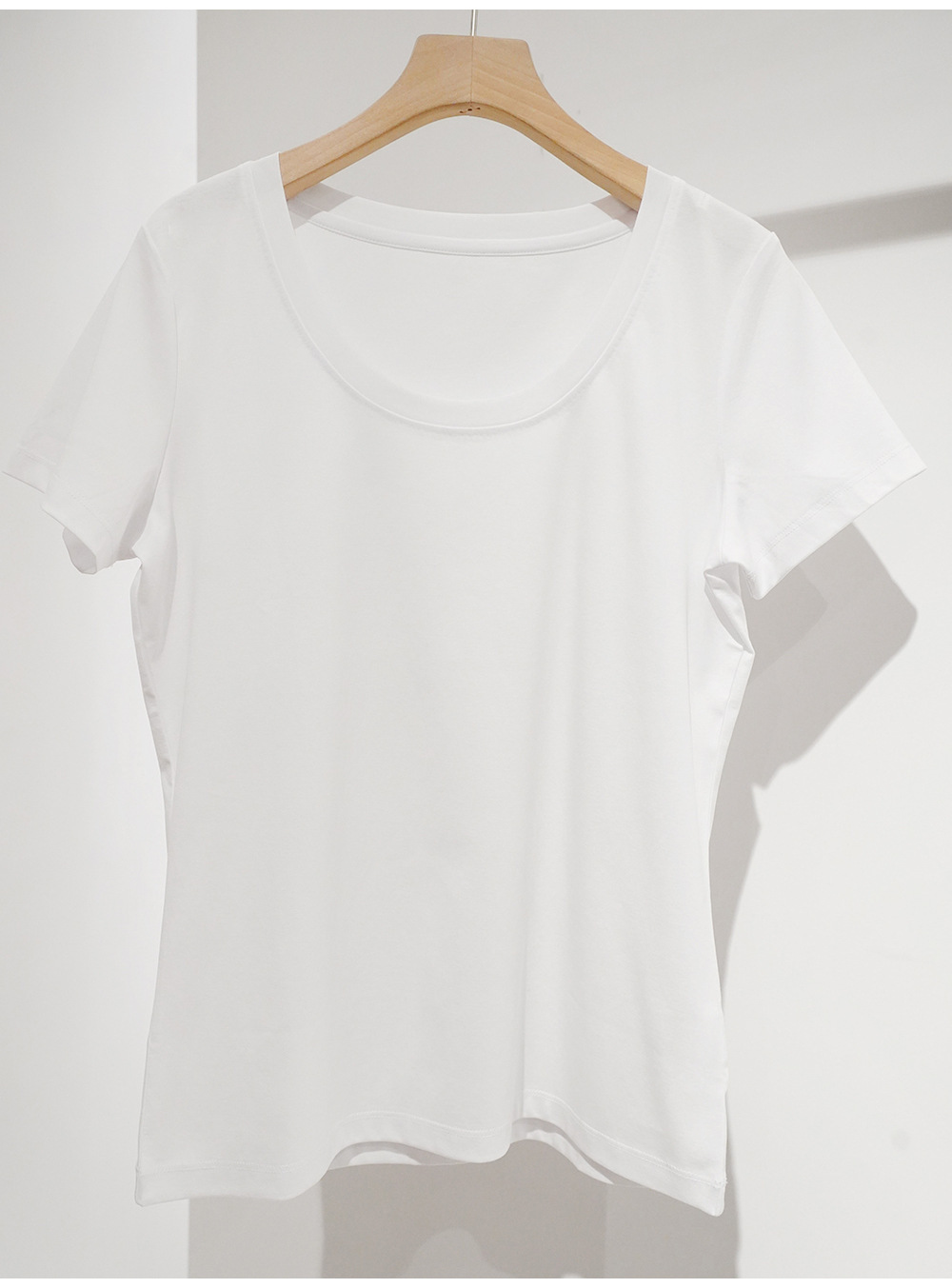 고급 센스 멀 베리 실크 칼라 본 큰 목 머서 면화 반팔 티셔츠 여성용 대형 라운드 넥 칙칙한 로우 칼라 탑