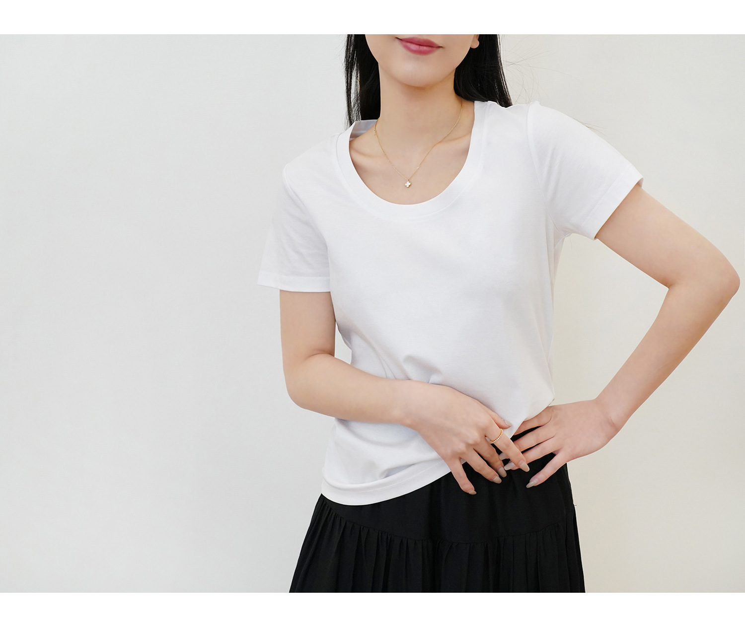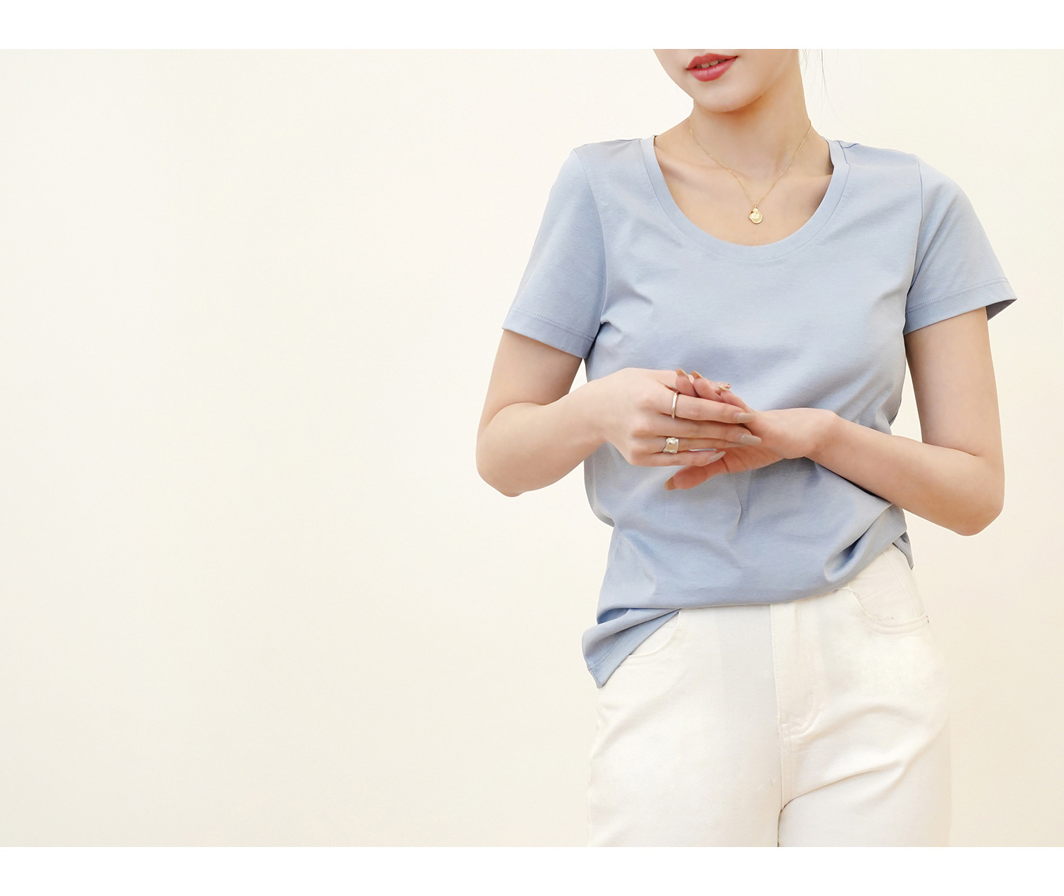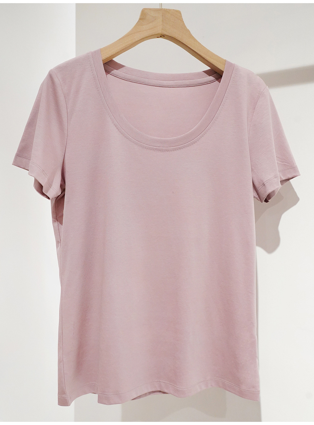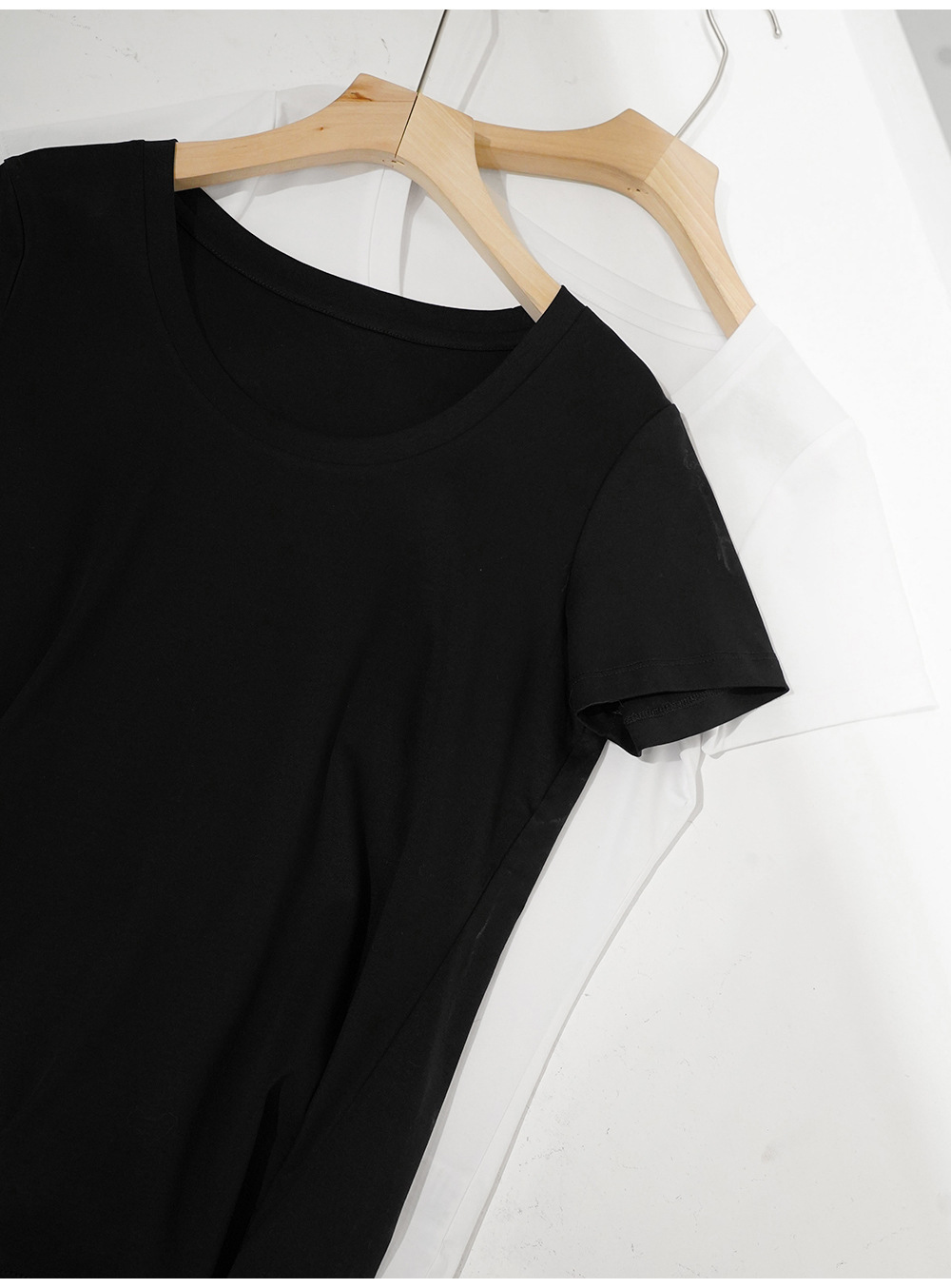 고급 센스 멀 베리 실크 칼라 본 큰 목 머서 면화 반팔 티셔츠 여성용 대형 라운드 넥 칙칙한 로우 칼라 탑