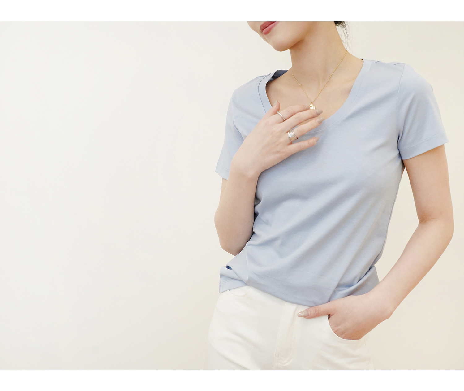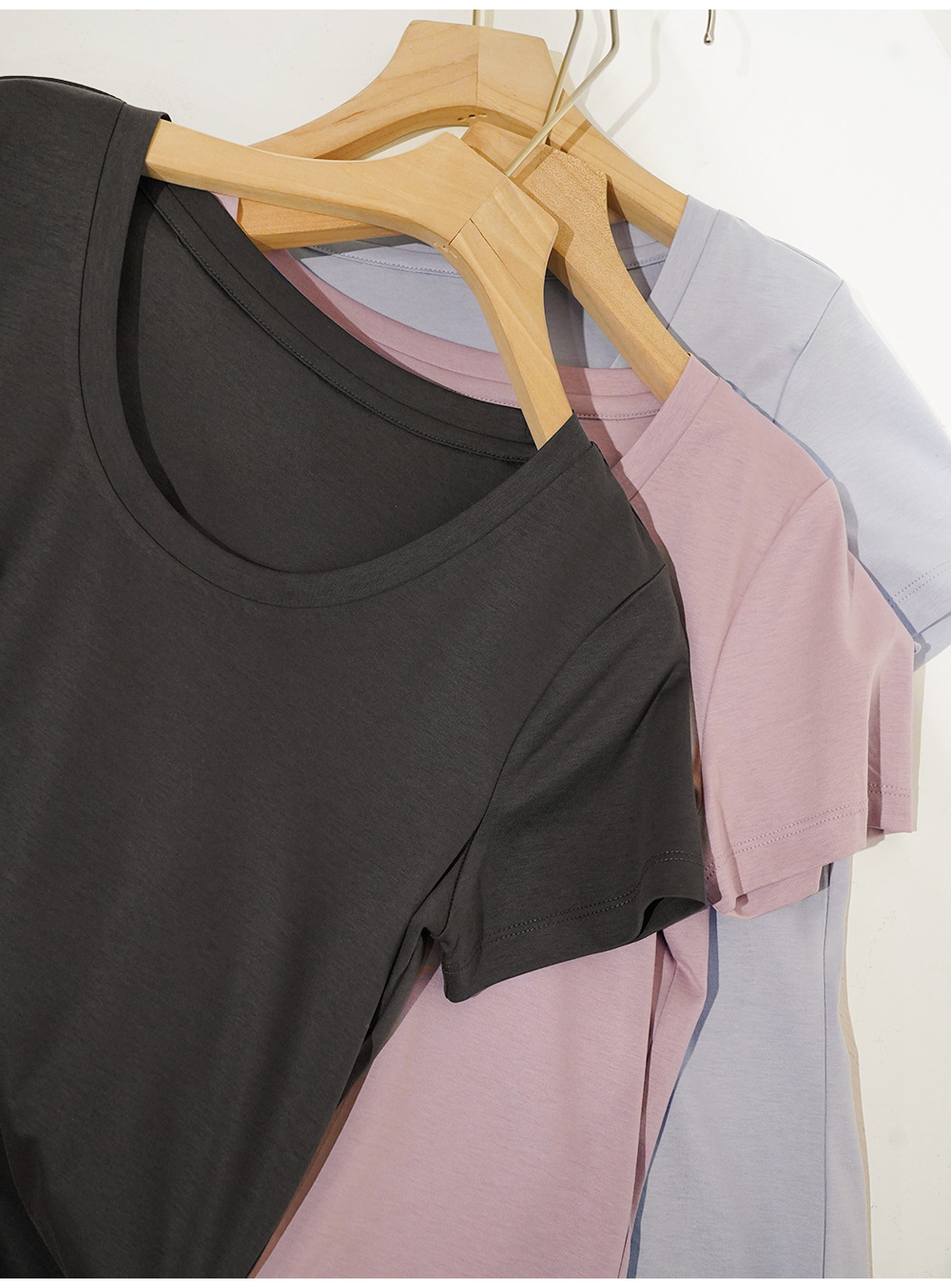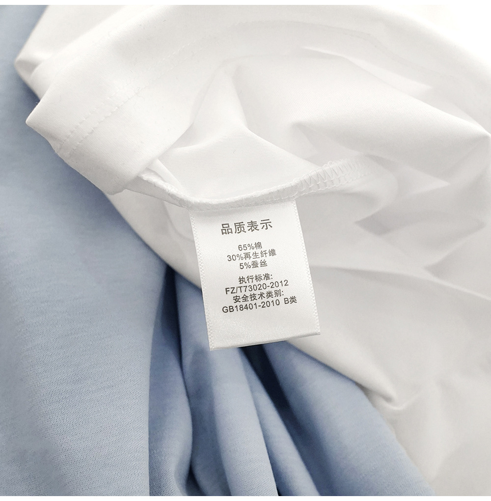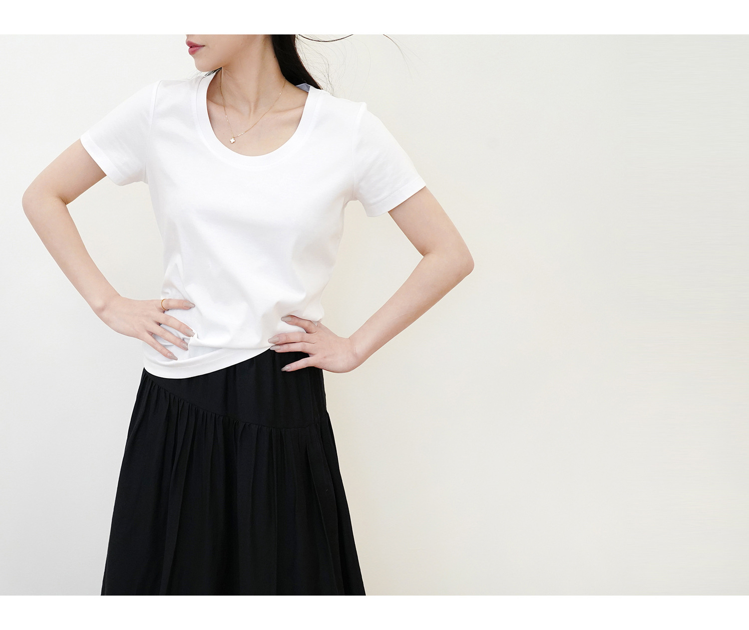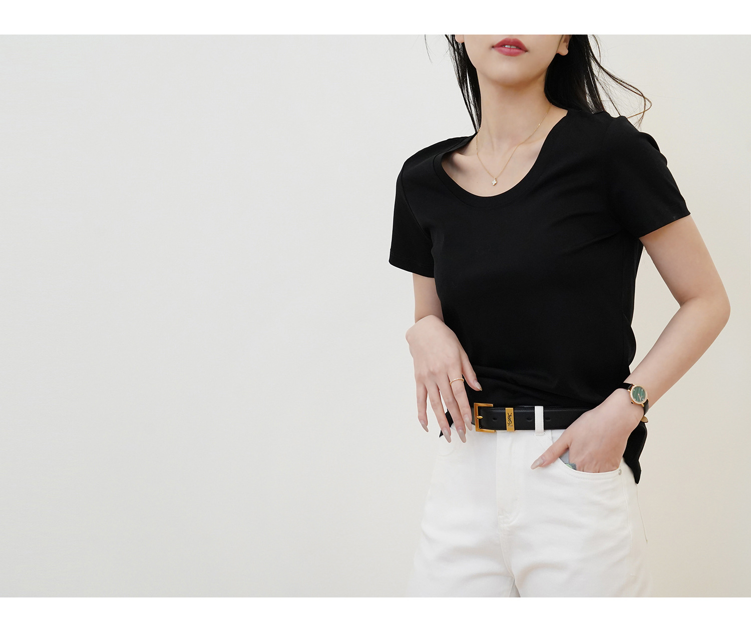 고급 센스 멀 베리 실크 칼라 본 큰 목 머서 면화 반팔 티셔츠 여성용 대형 라운드 넥 칙칙한 로우 칼라 탑