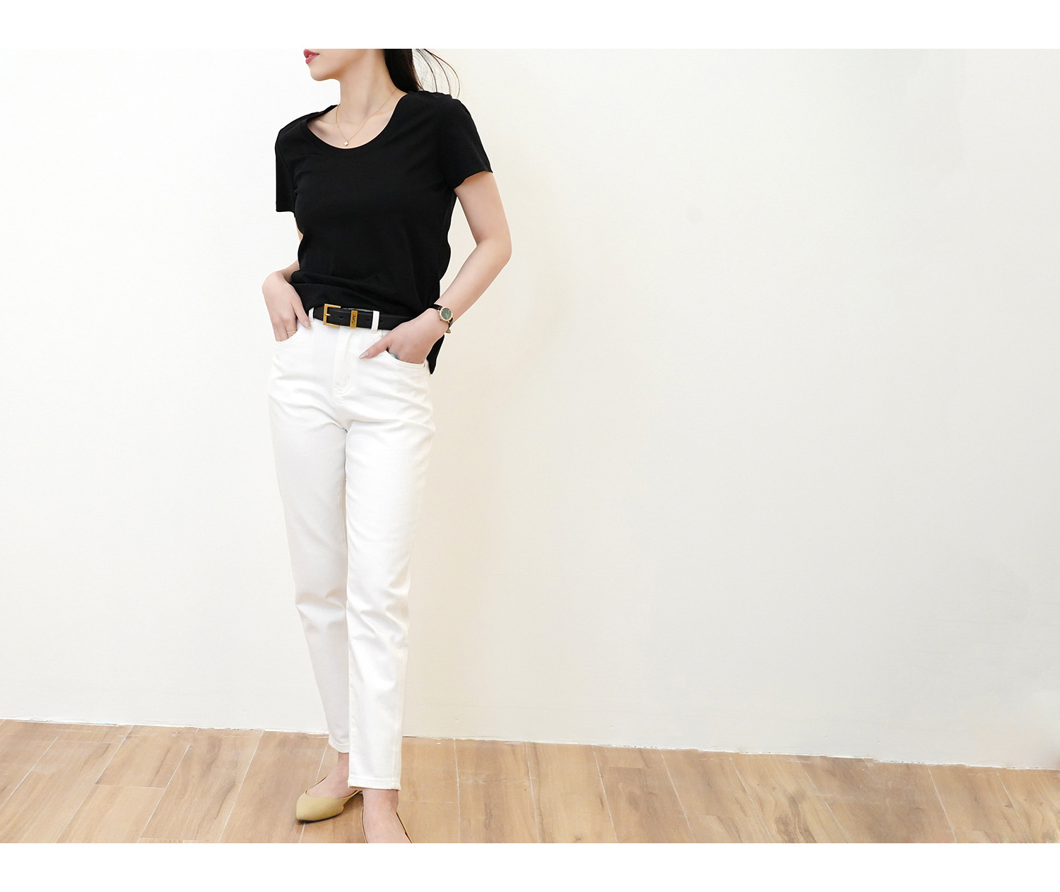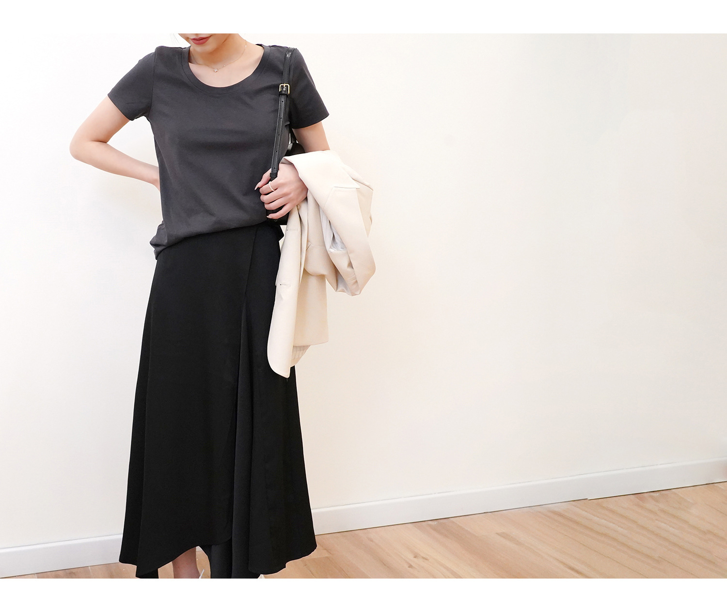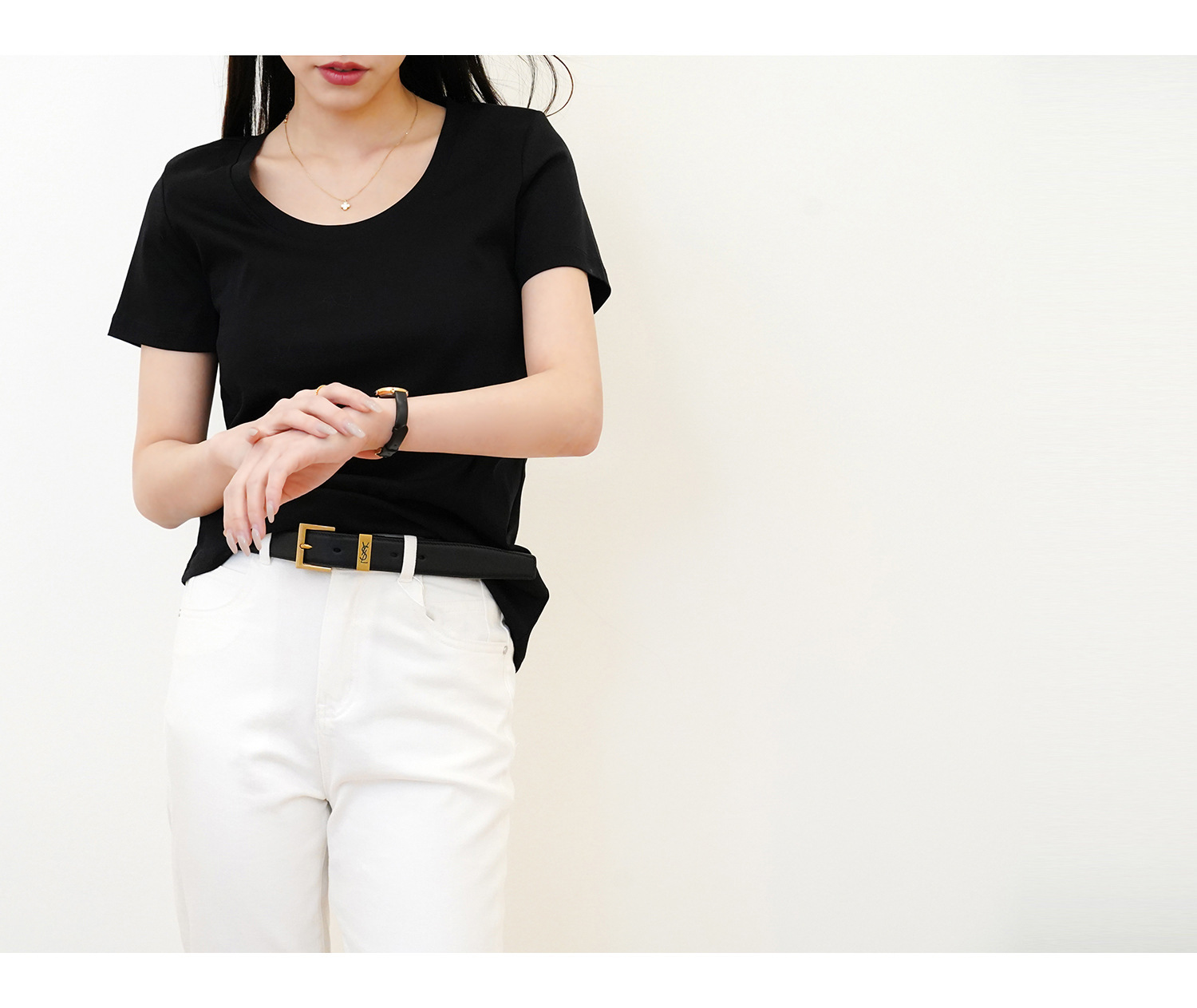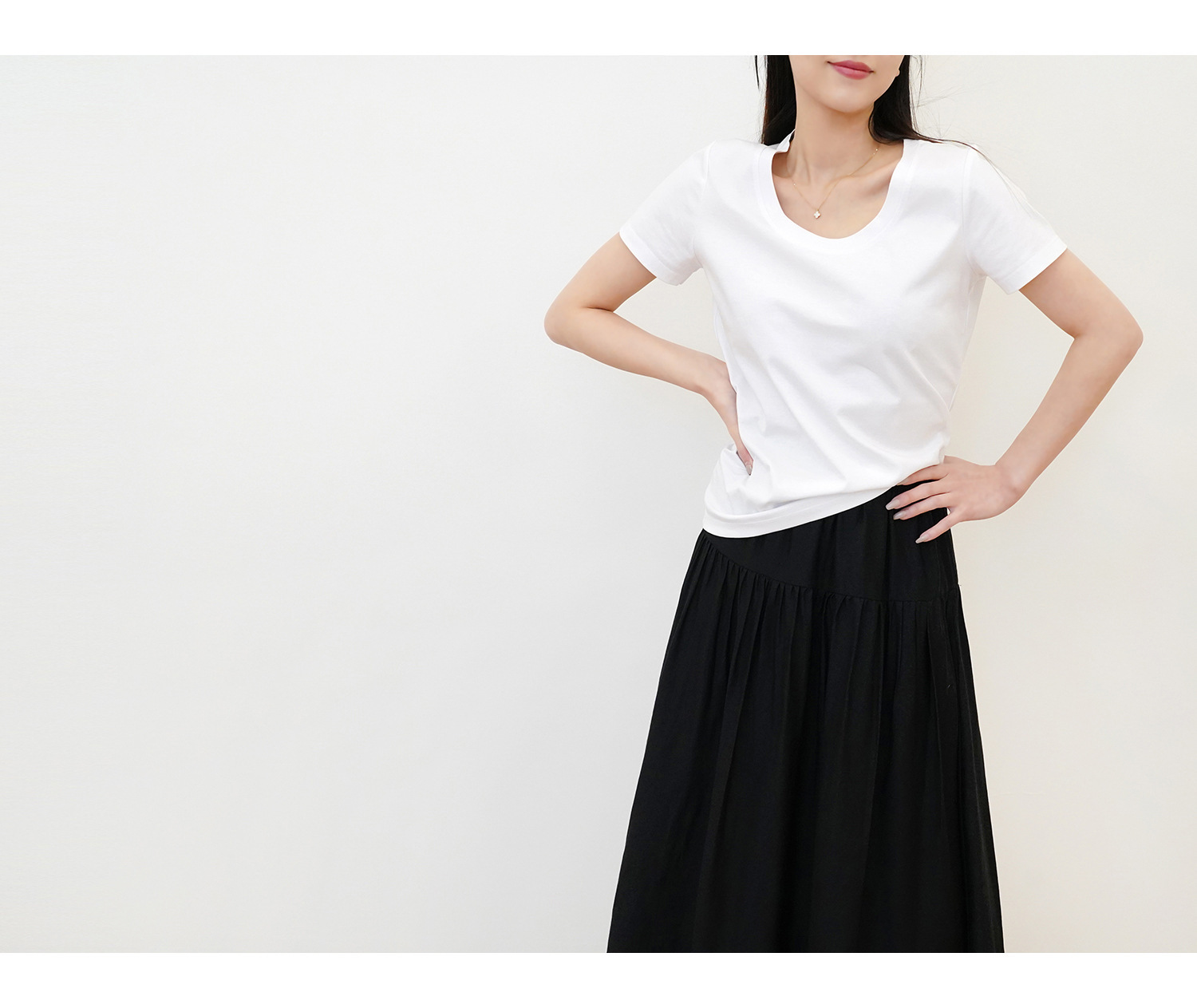 고급 센스 멀 베리 실크 칼라 본 큰 목 머서 면화 반팔 티셔츠 여성용 대형 라운드 넥 칙칙한 로우 칼라 탑