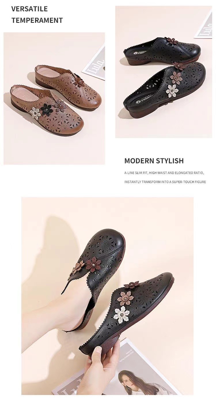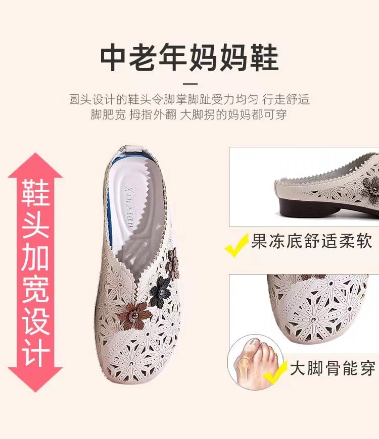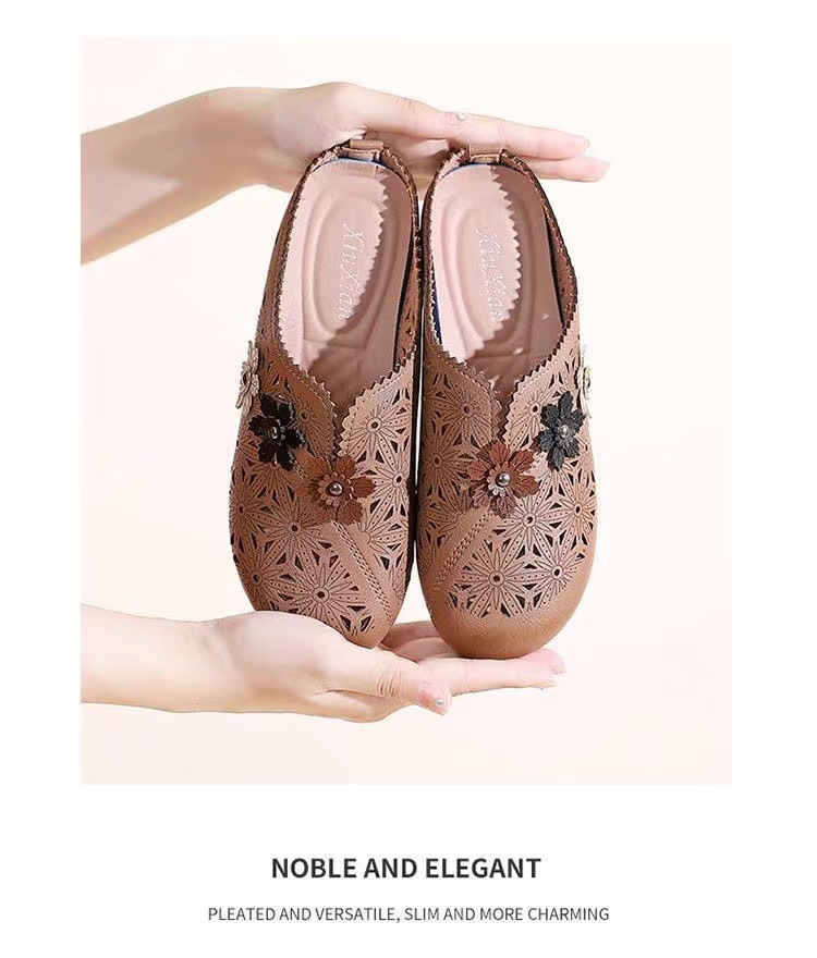 레트로 꽃 중공 어머니 신발 슬립 온 통기성 Baotou 슬리퍼 2025 여름 폭발 Lefu 신발 대외 무역 단층 신발스토어 가기