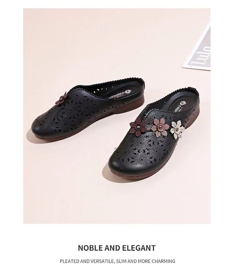 레트로 꽃 중공 어머니 신발 슬립 온 통기성 Baotou 슬리퍼 2025 여름 폭발 Lefu 신발 대외 무역 단층 신발