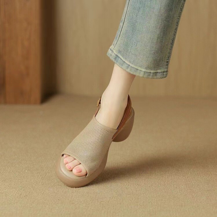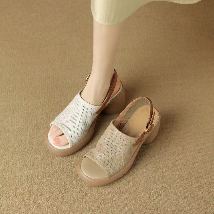 예술적 레트로 굵은 하이힐 포스트 믹스 샌들 노출 된 발가락 싱글 레이어 신발 여성 신발 2025 여름 새로운 올 매치 하이힐 신발스토어 가기