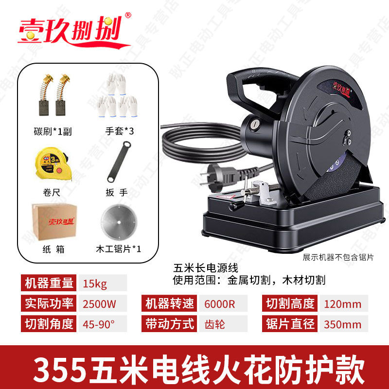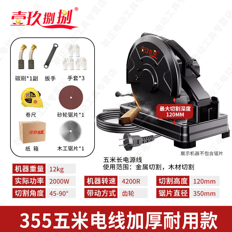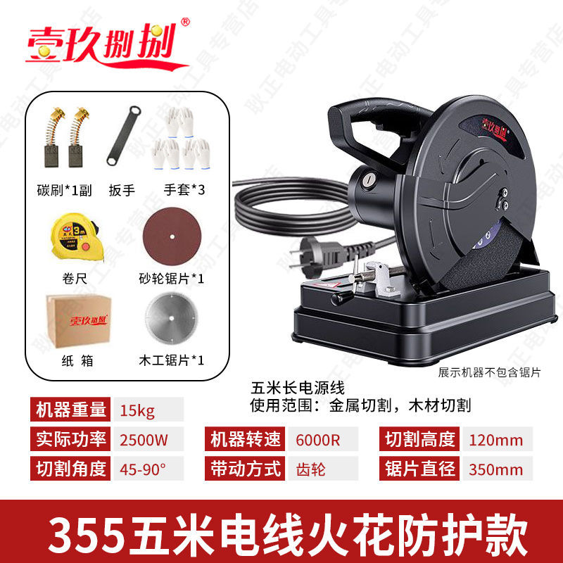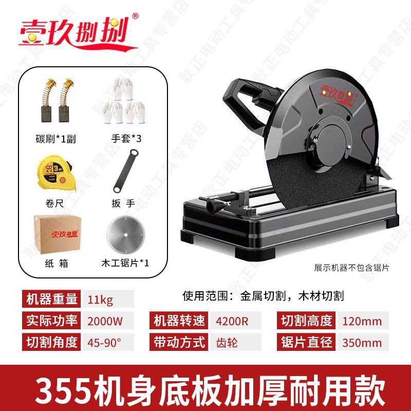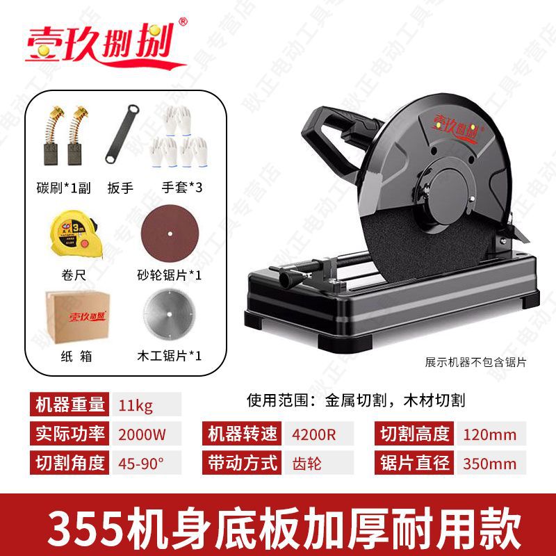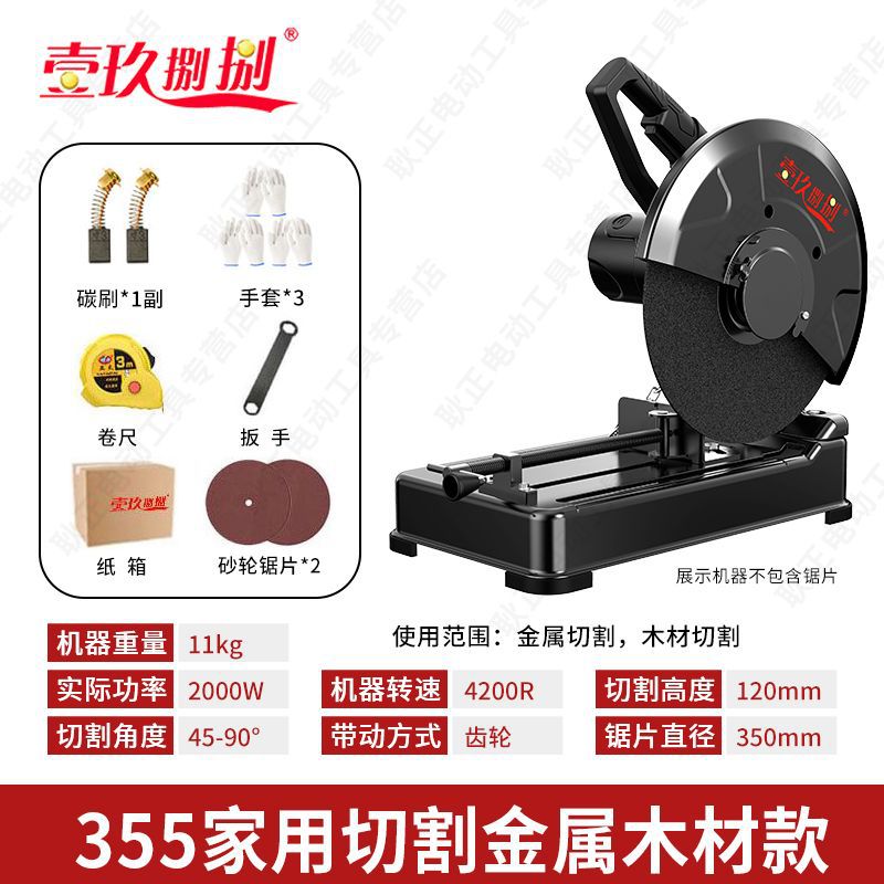 • 【2000W】 14inch 업그레이드된 두꺼운 모델 - 연삭 휠 x1 + 목공 톱날 x1 제공