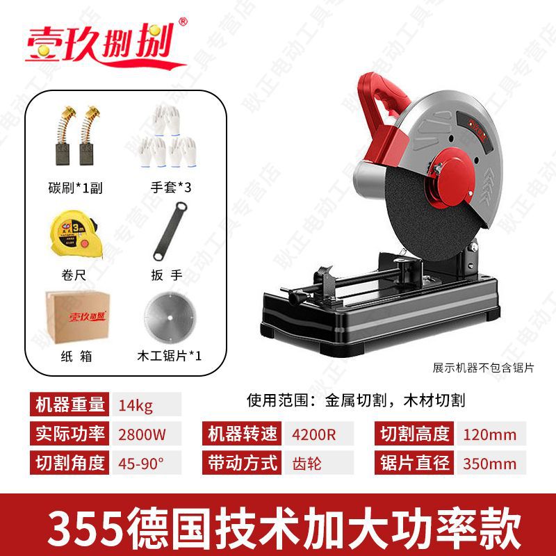 • [2800W] 14inch 산업용 특수 구리선 모델 - 연삭 휠 x1 + 목공 톱날 x1 포함