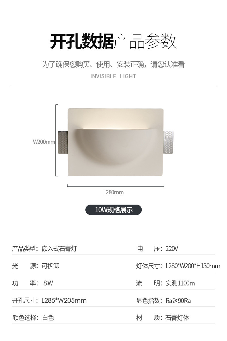 조용한 석고 벽 램프 내장 국경없는 미니멀 한 거실 TV 배경 벽 침실 램프 침대 옆 램프