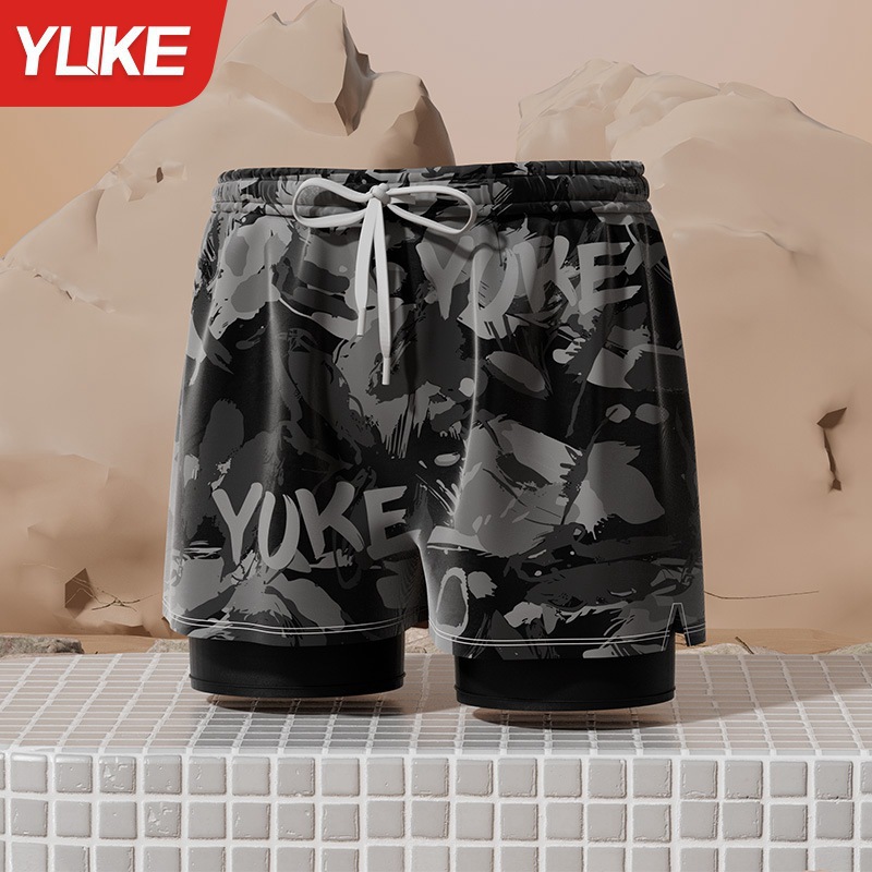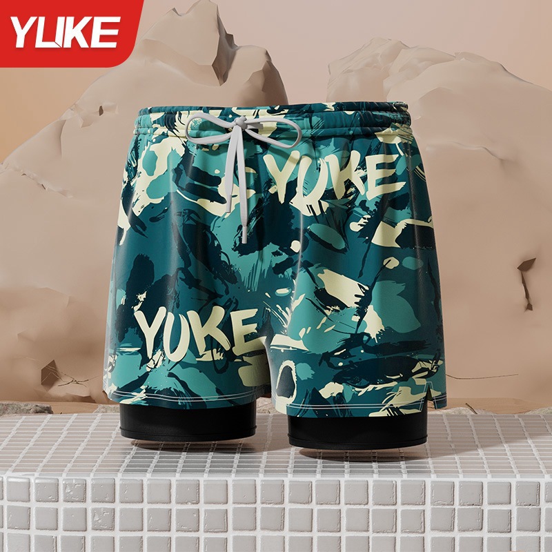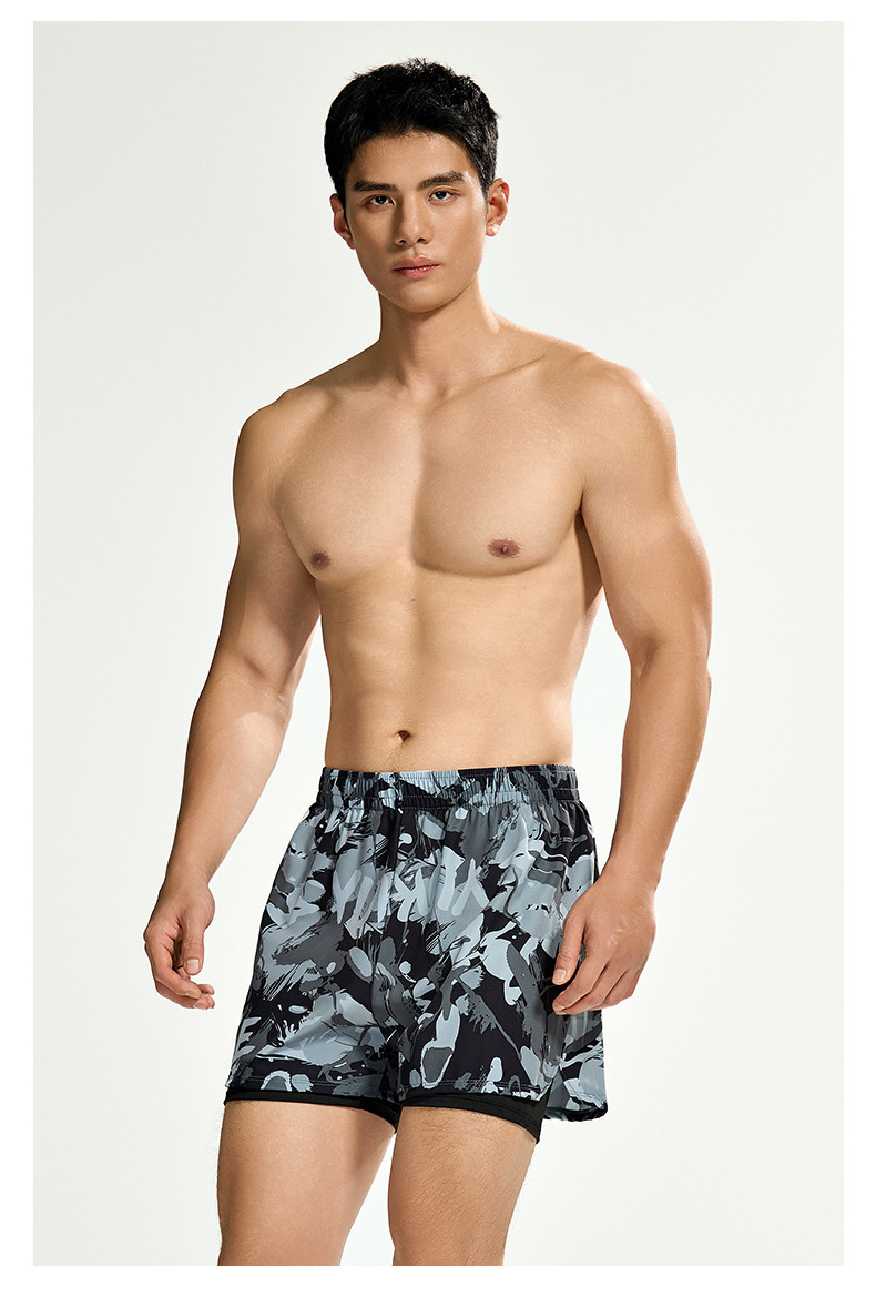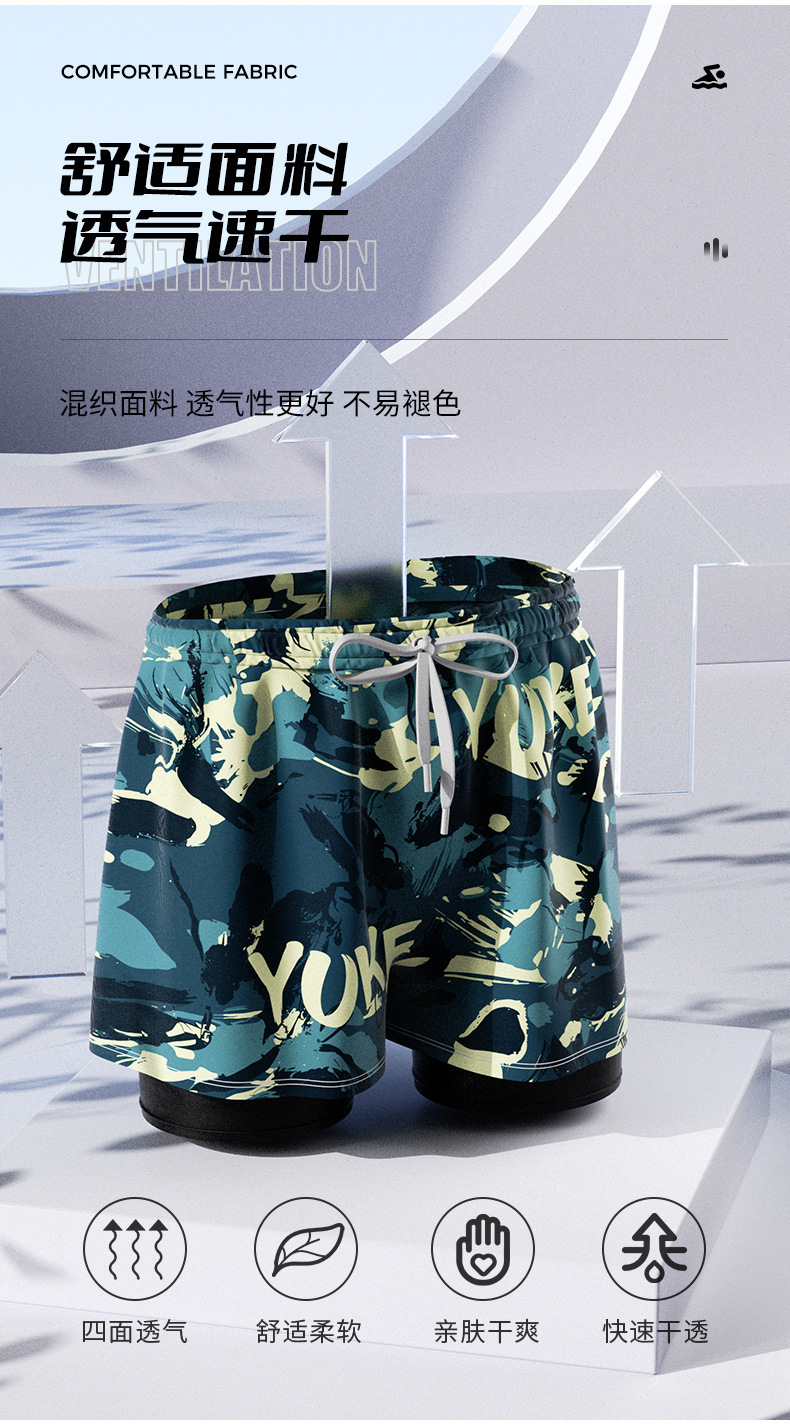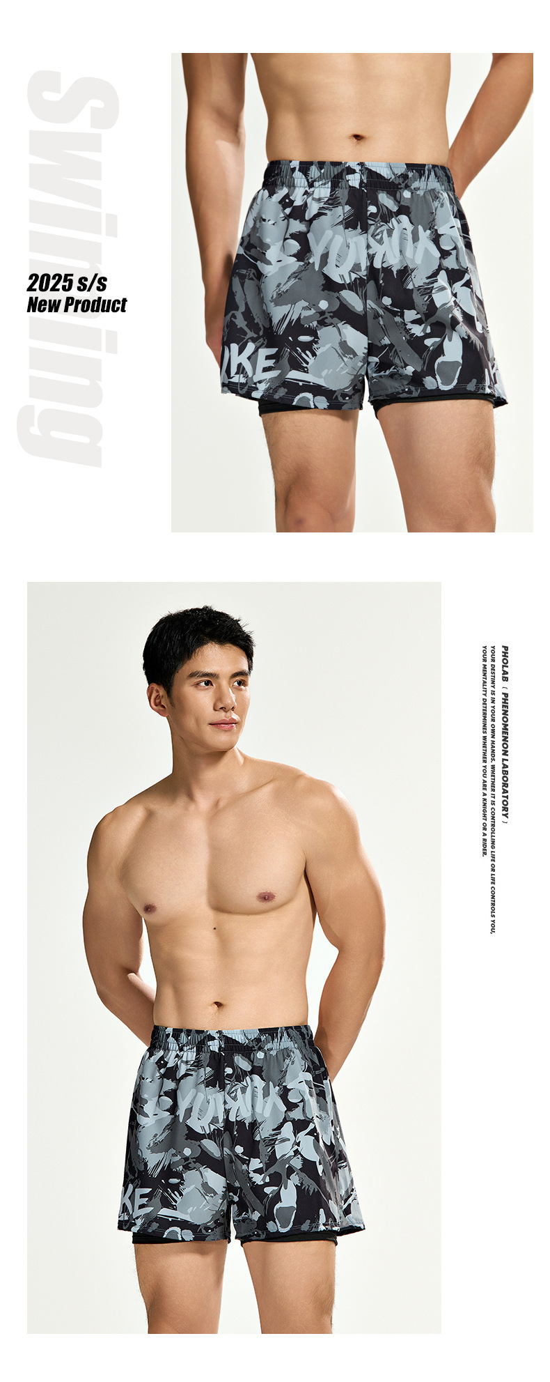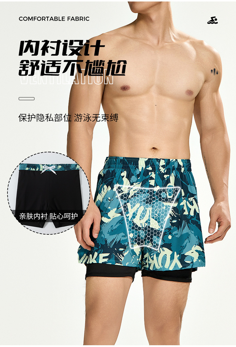 남자 수영 트렁크 플러스 사이즈 가짜 투피스 안티 당혹감 레이스 업 드로우 스트링 반바지 유행 편안한 통기성 트렌디 남성 풀 바지스토어 가기