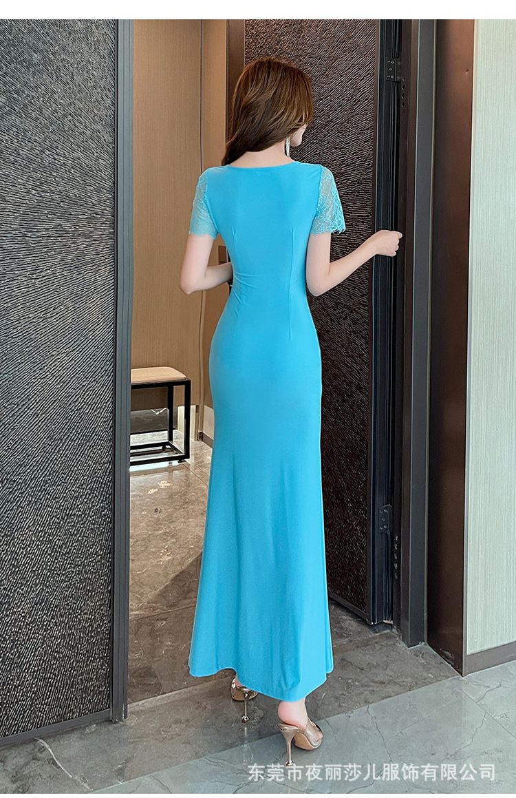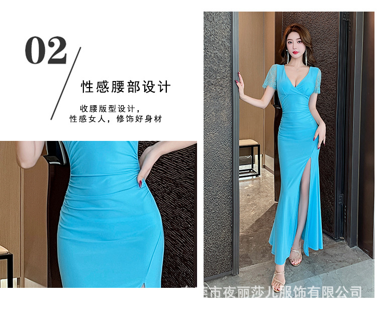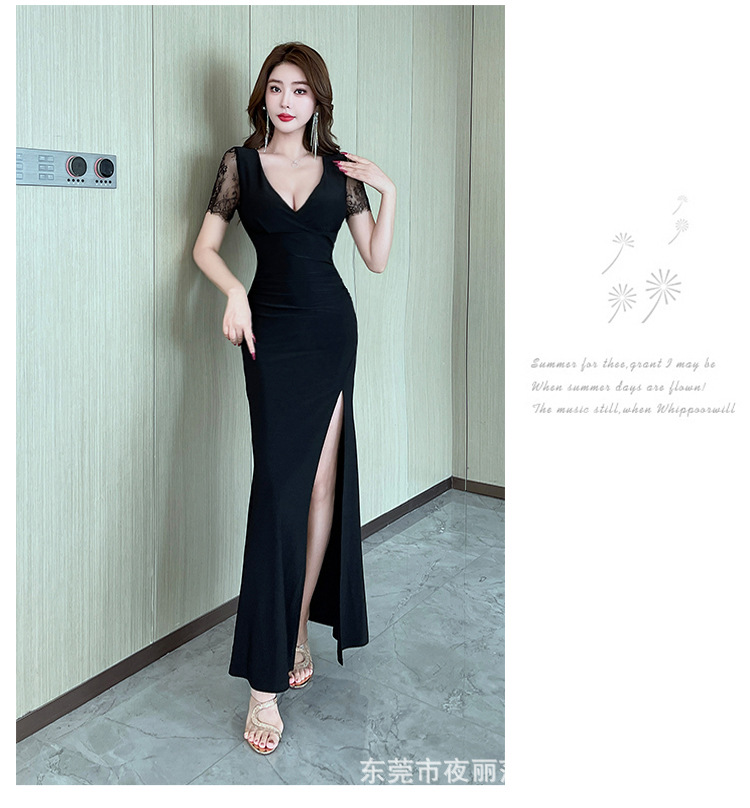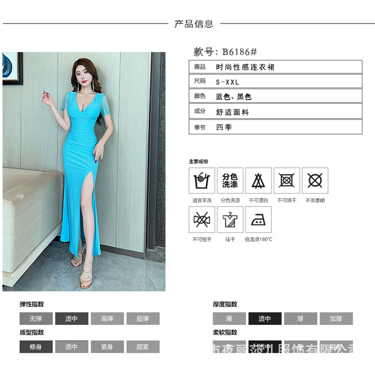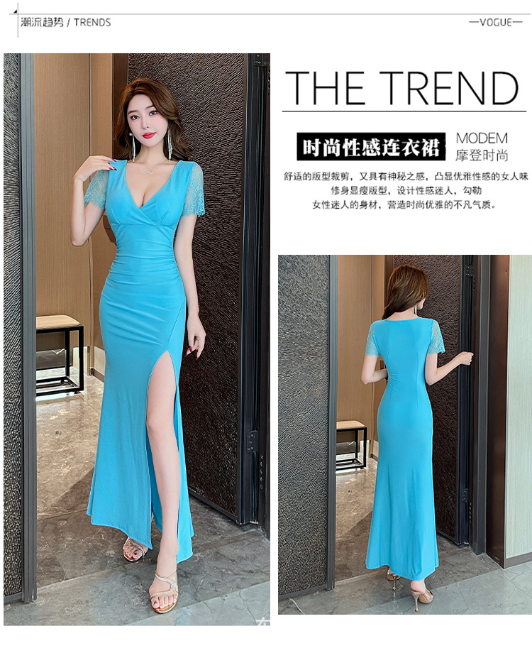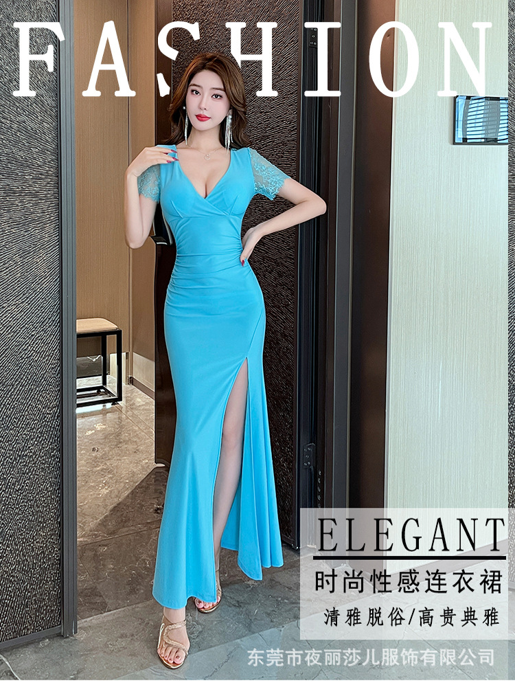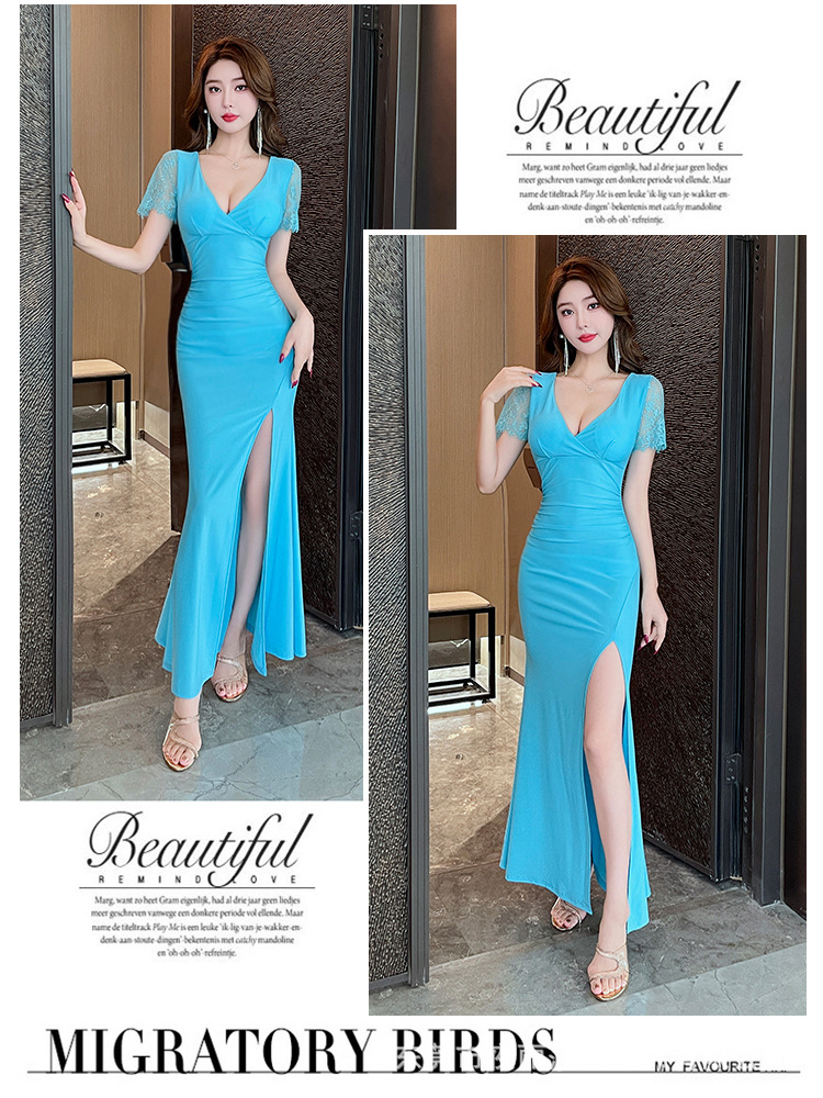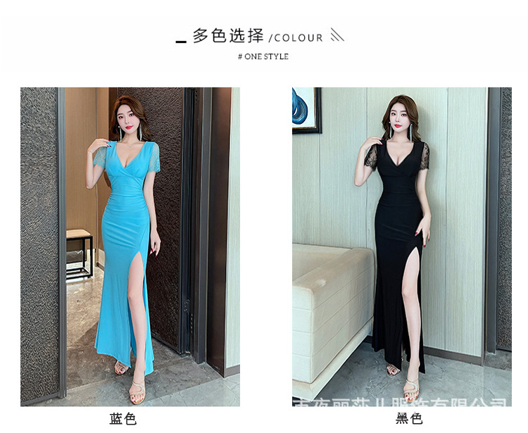 새로운 밤 섹시한 긴 원피스 슬림핏 슬림 분할 원피스 호텔 나이트 클럽 KTV 섹시한 저녁 원피스