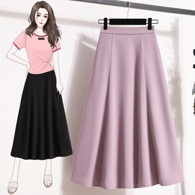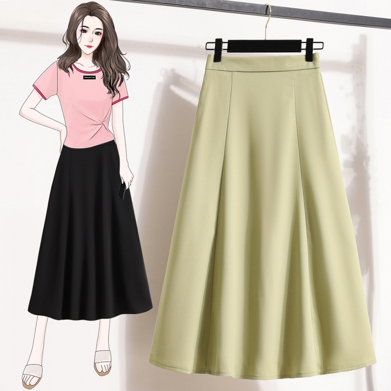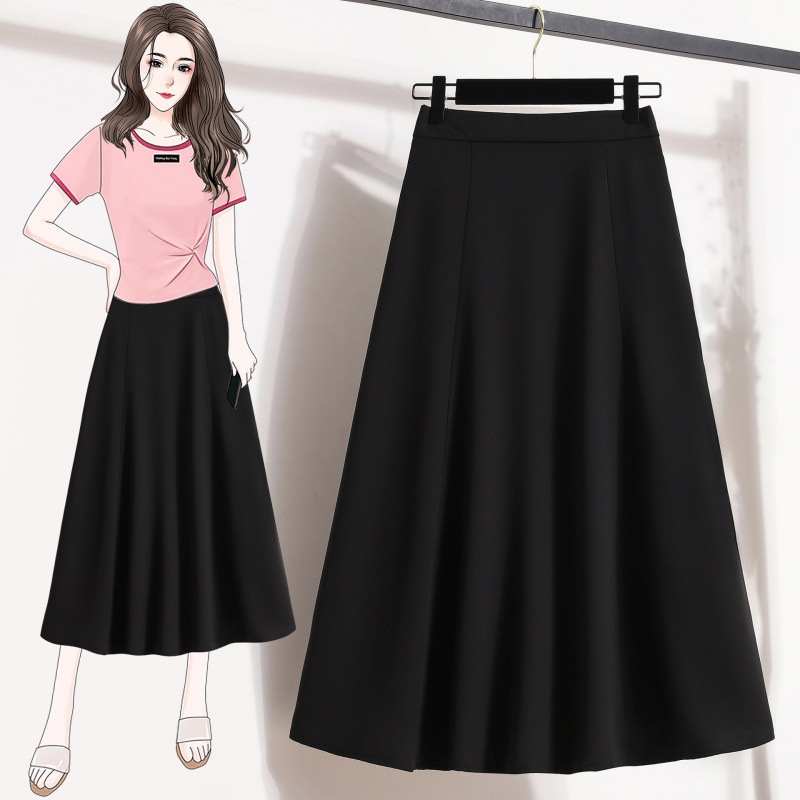 플러스 사이즈 여성 의류 2024 여름 새로운 높은 허리 스커트 중간 길이의 데프 세트 스커트 우산 스커트 A 라인 스커트