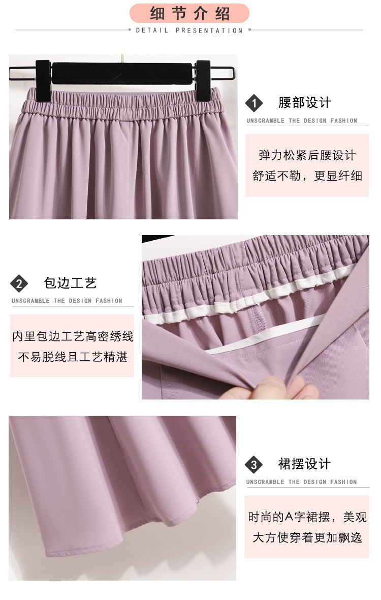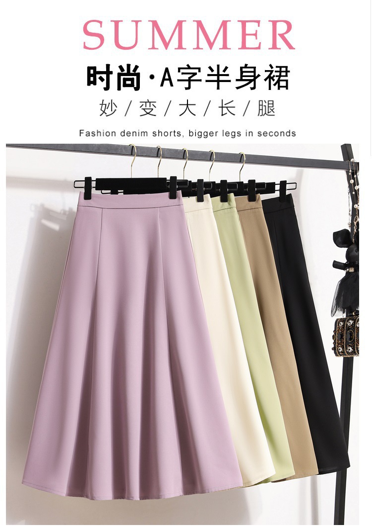 플러스 사이즈 여성 의류 2024 여름 새로운 높은 허리 스커트 중간 길이의 데프 세트 스커트 우산 스커트 A 라인 스커트스토어 가기