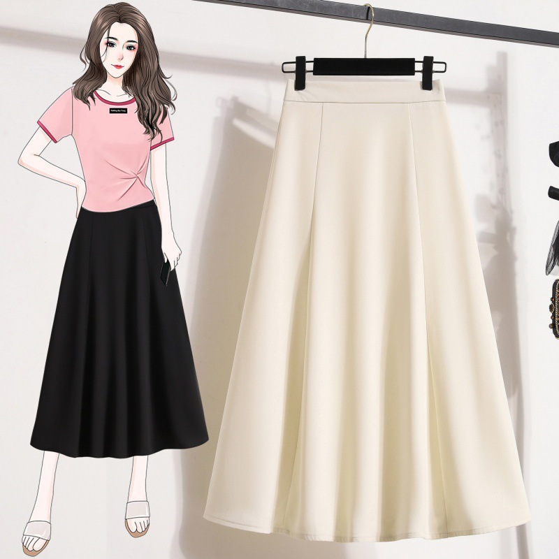 • 오프화이트 [드레이프/배 체형/약간 뚱뚱한 여자/스트레이트 루즈/뚱뚱한 여자용 스커트