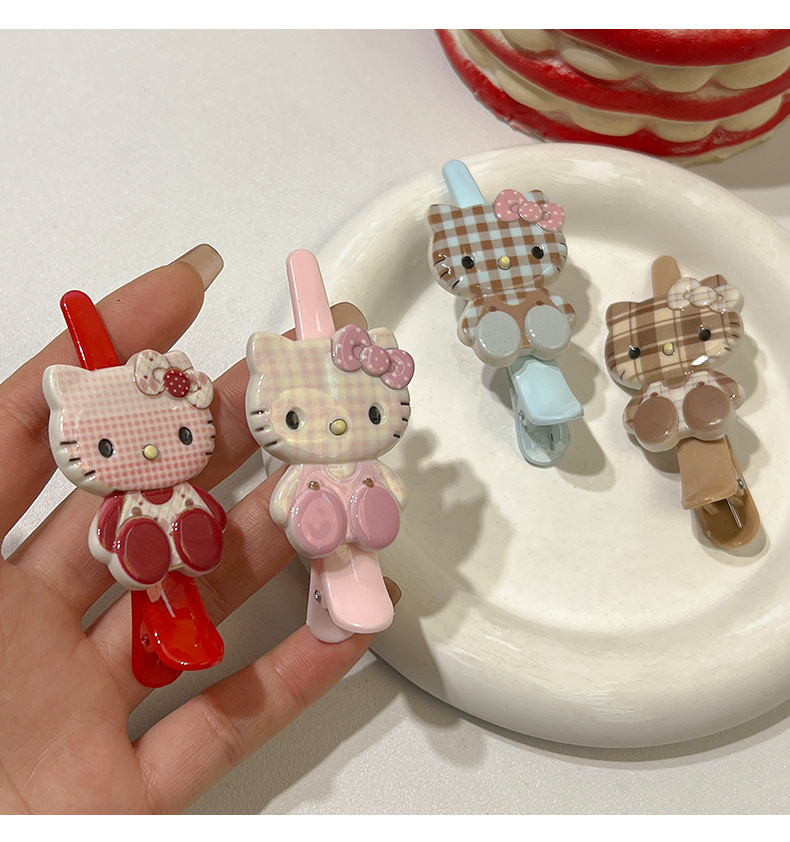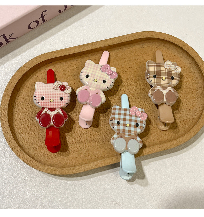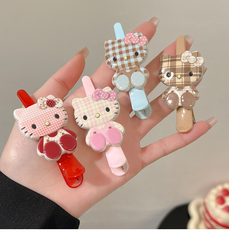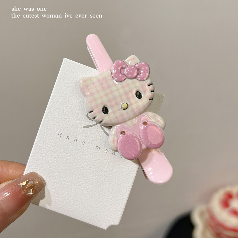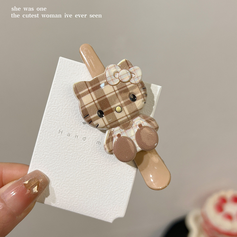 대형 격자 무늬 앉는 자세 KT 뾰족한 코 클립 Ins Girly Heart 올매치 일본식 Bangs 사이드 클립 만화 헤드웨어