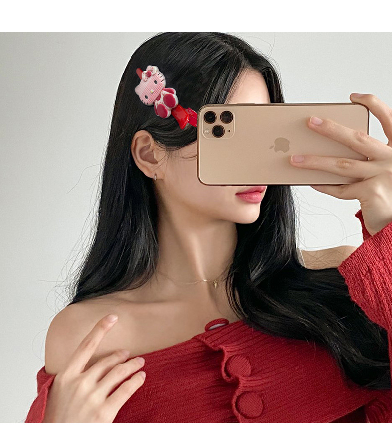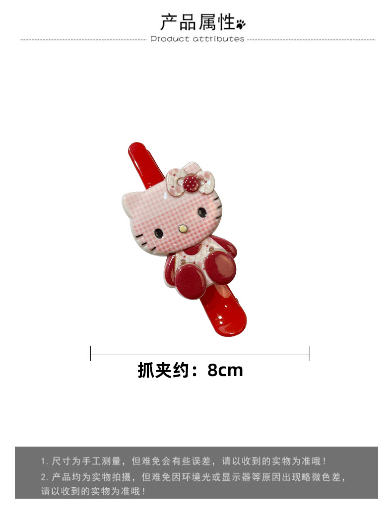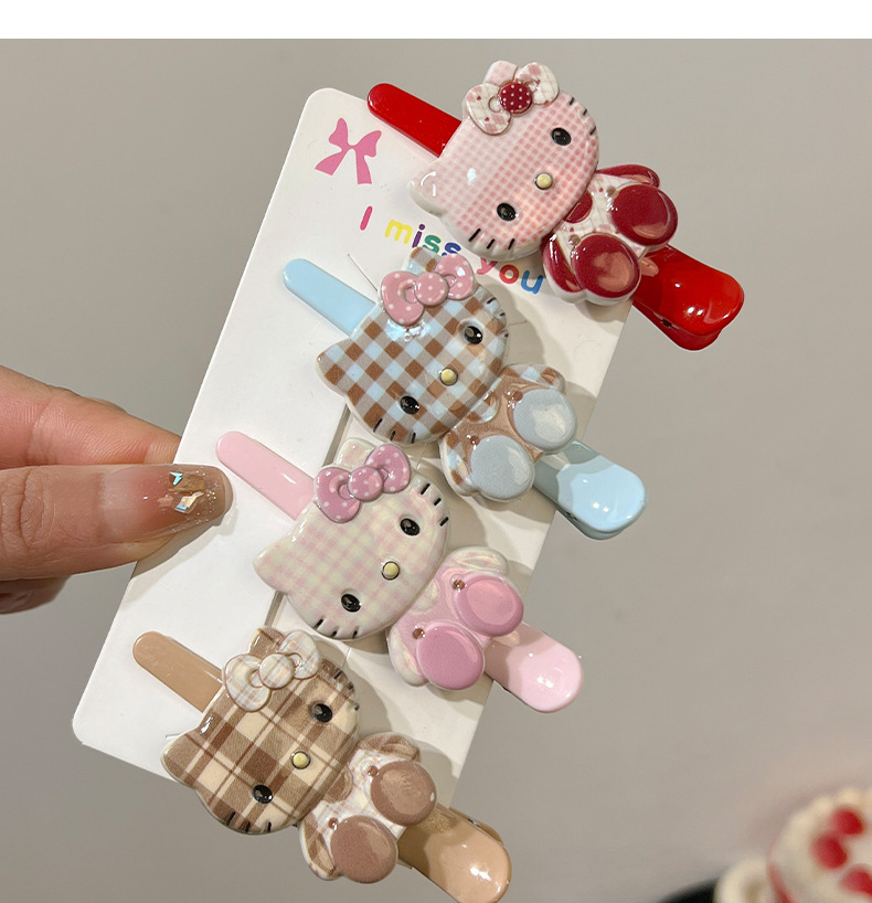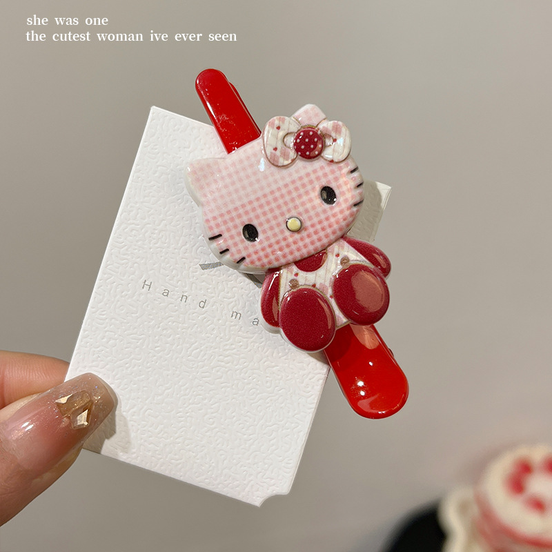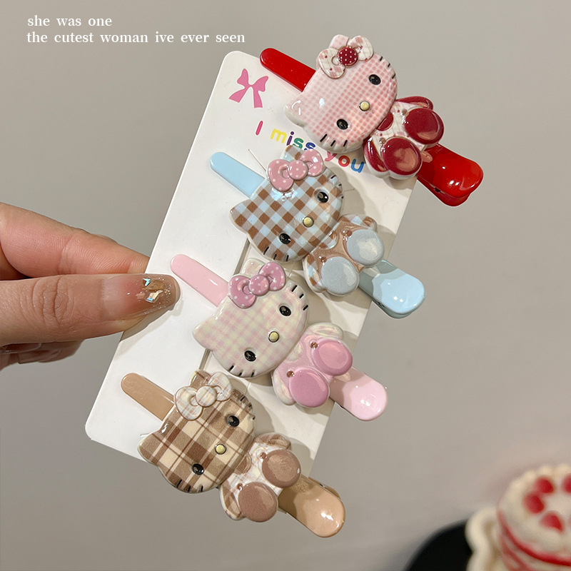 대형 격자 무늬 앉는 자세 KT 뾰족한 코 클립 Ins Girly Heart 올매치 일본식 Bangs 사이드 클립 만화 헤드웨어