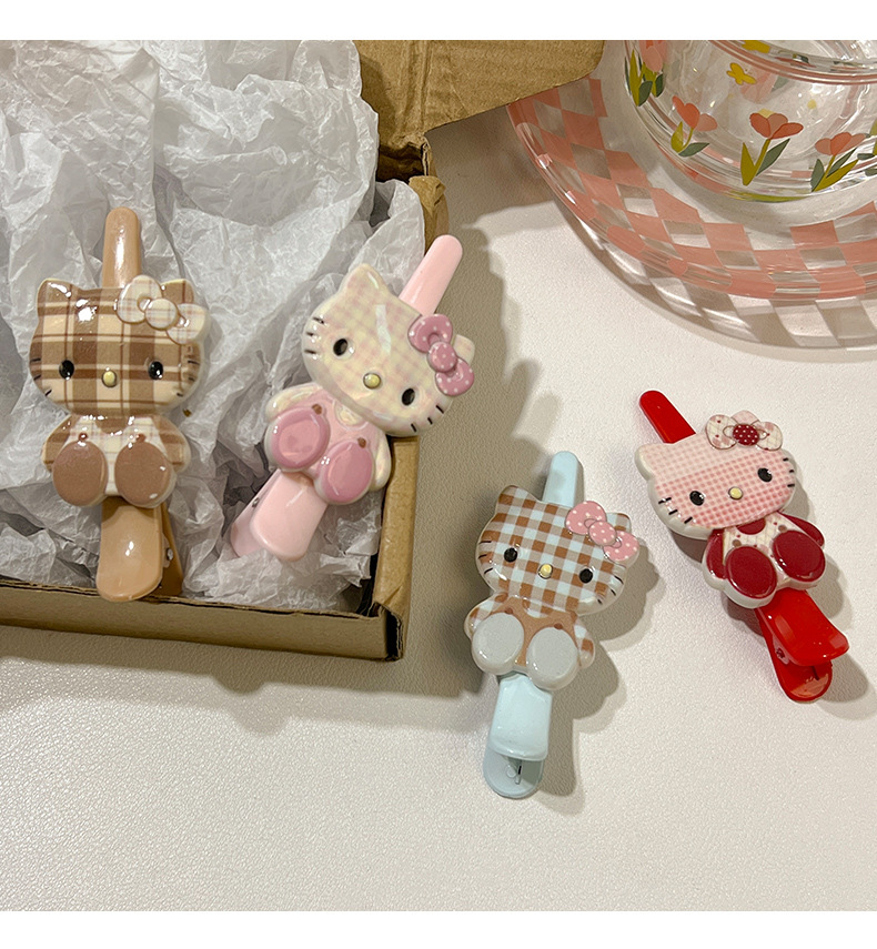 대형 격자 무늬 앉는 자세 KT 뾰족한 코 클립 Ins Girly Heart 올매치 일본식 Bangs 사이드 클립 만화 헤드웨어스토어 가기
