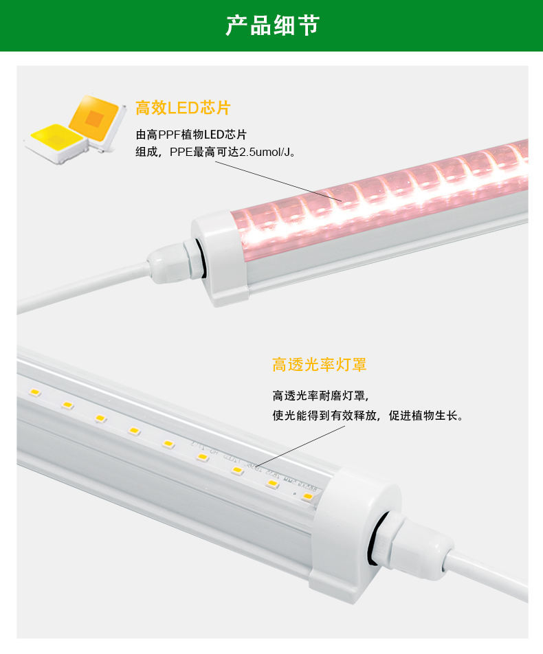 植物灯全光谱36w温室双排补光灯t8防水灯条室内育苗植物水培灯管