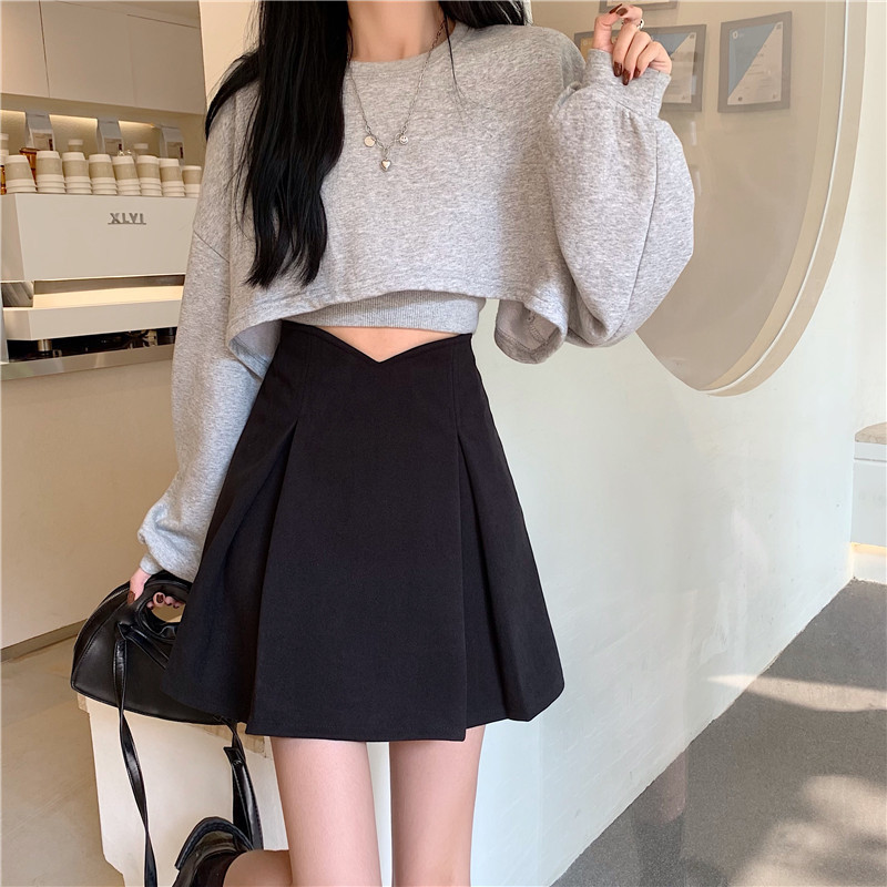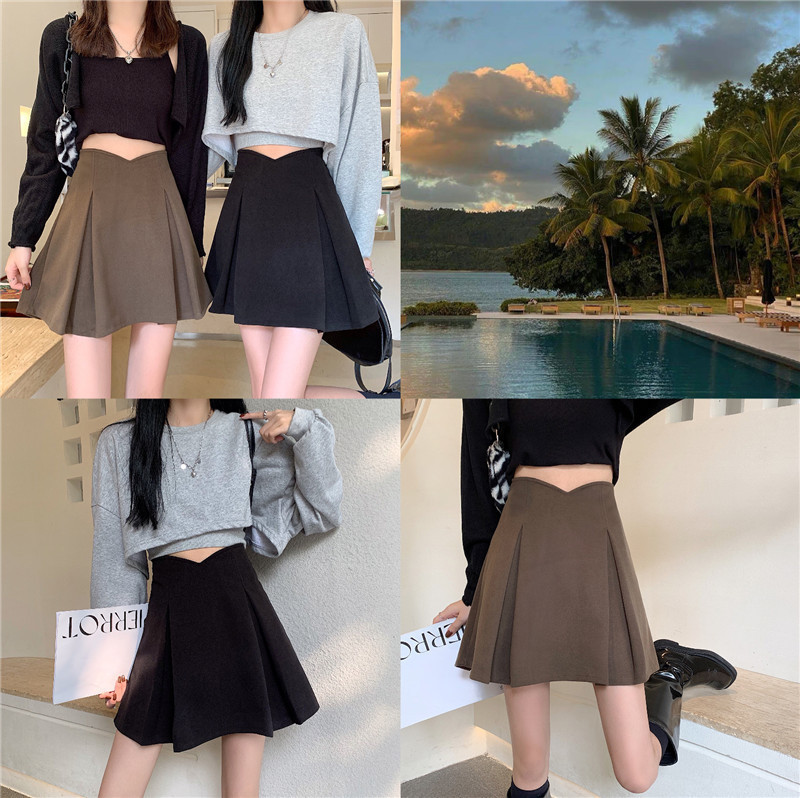 주름 A 라인 스커트 여자 봄 2024 새로운 한국식 하이 웨이스트 슬리밍 엉덩이 커버 스커트 올 매치 플러스 사이즈 스커트스토어 가기