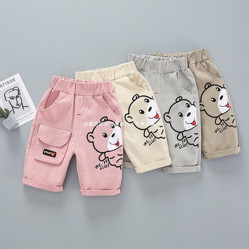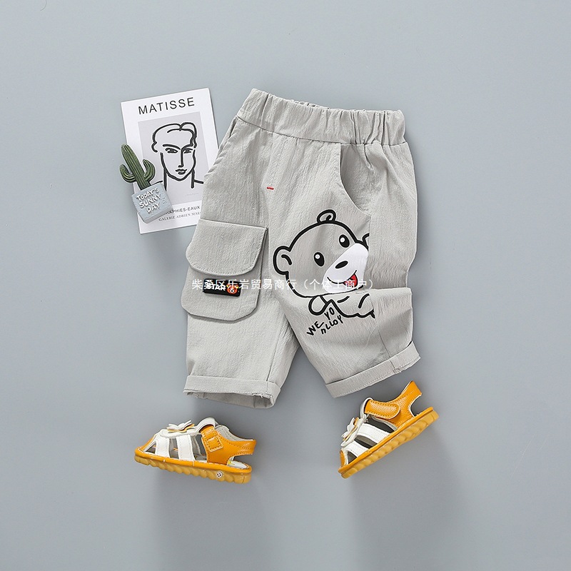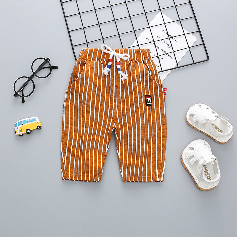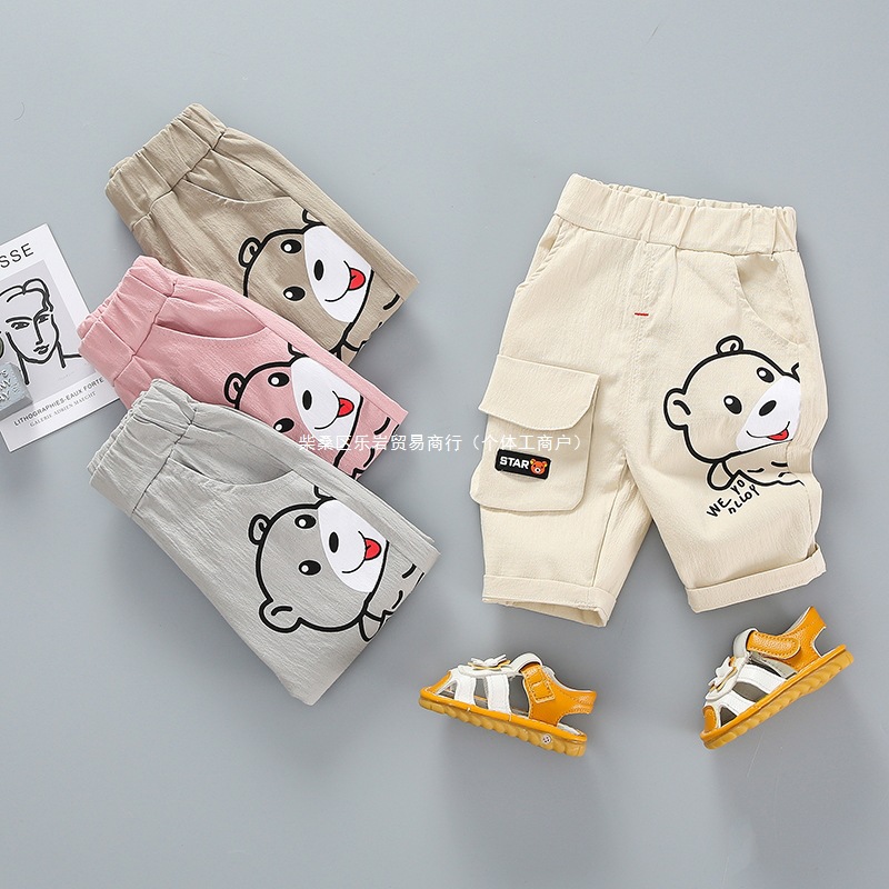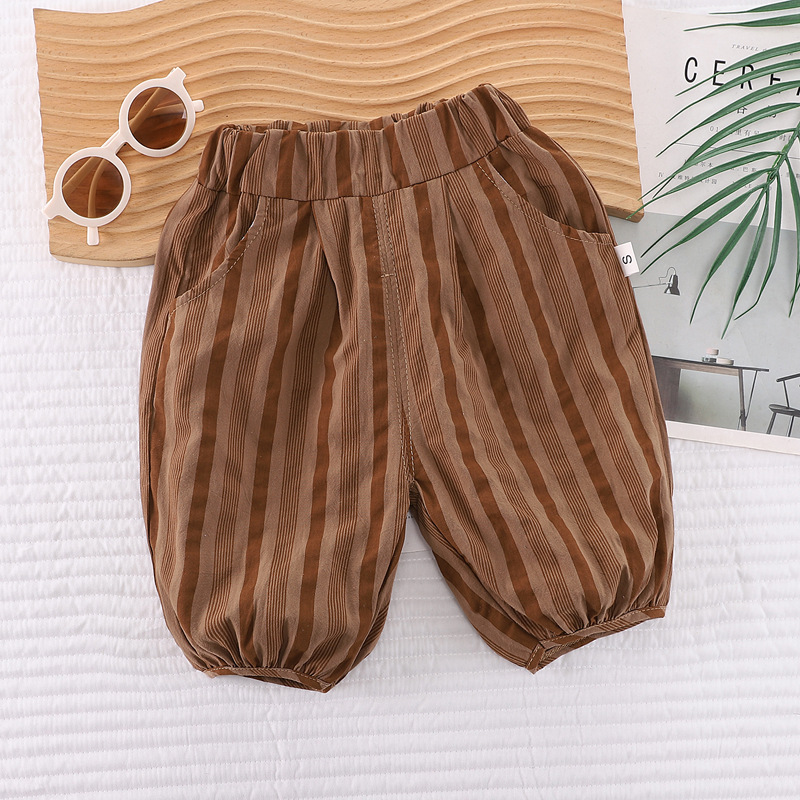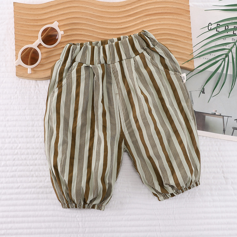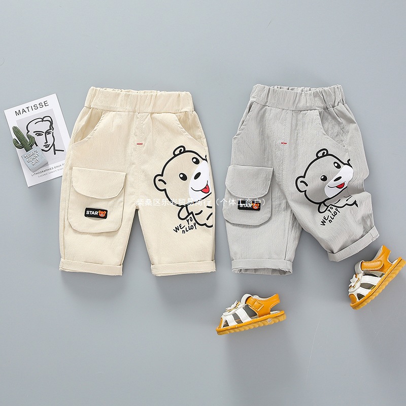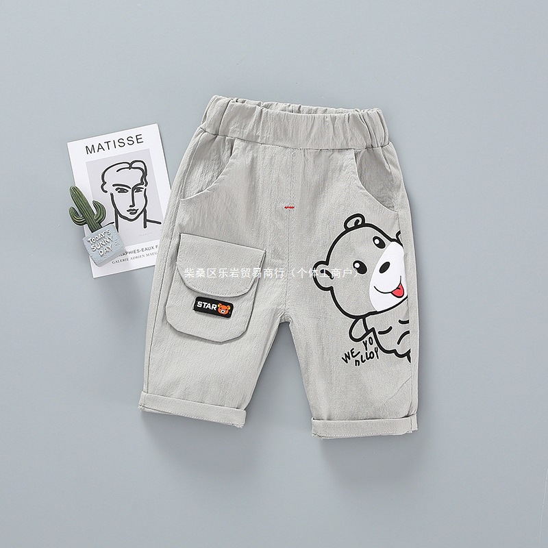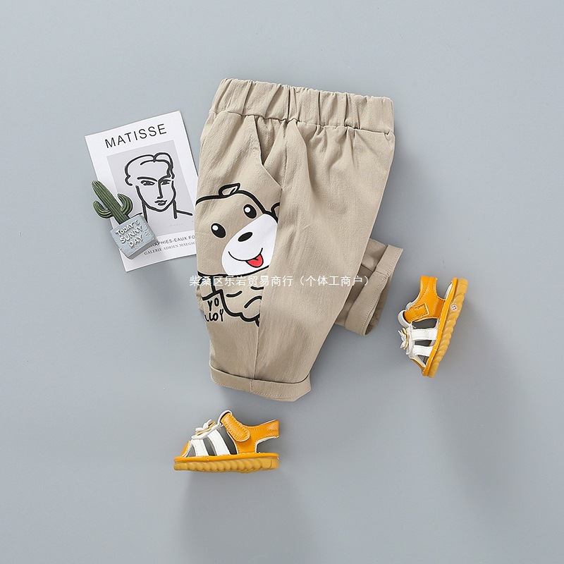 아기의 카프리 바지 여름 얇은 외부 착용 소년 바지 통기성 아동면 및 리넨 캐주얼 바지 어린이 서양식 도매스토어 가기