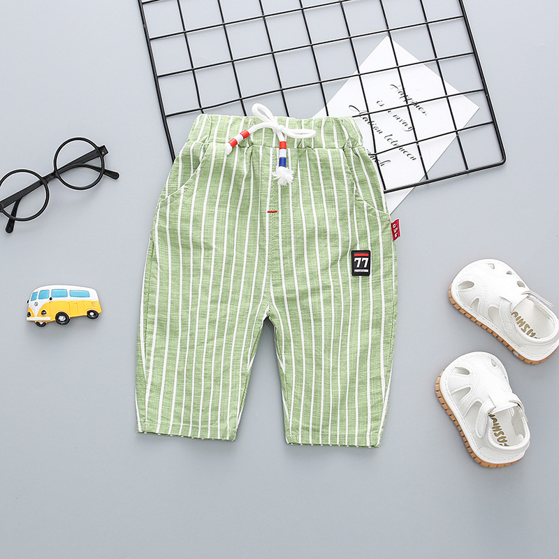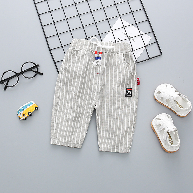 아기의 카프리 바지 여름 얇은 외부 착용 소년 바지 통기성 아동면 및 리넨 캐주얼 바지 어린이 서양식 도매