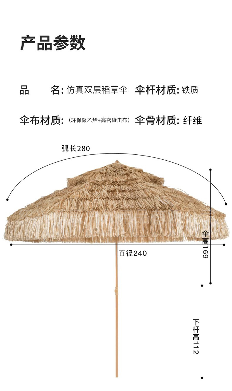 해변 우산 밀짚 우산 야외 시뮬레이션 초가 중간 기둥 우산 정원 우산 줄기 야외 우산 햇살