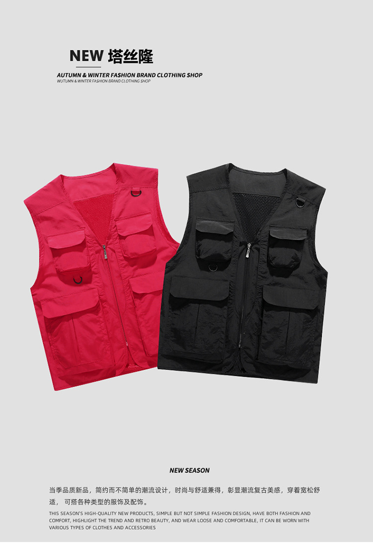 2025 새로운 조끼 남자 멀티 포켓 기능성 조끼 야외 간단한 캐주얼 등산 남녀 작업장스토어 가기