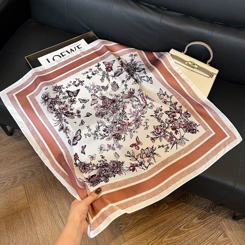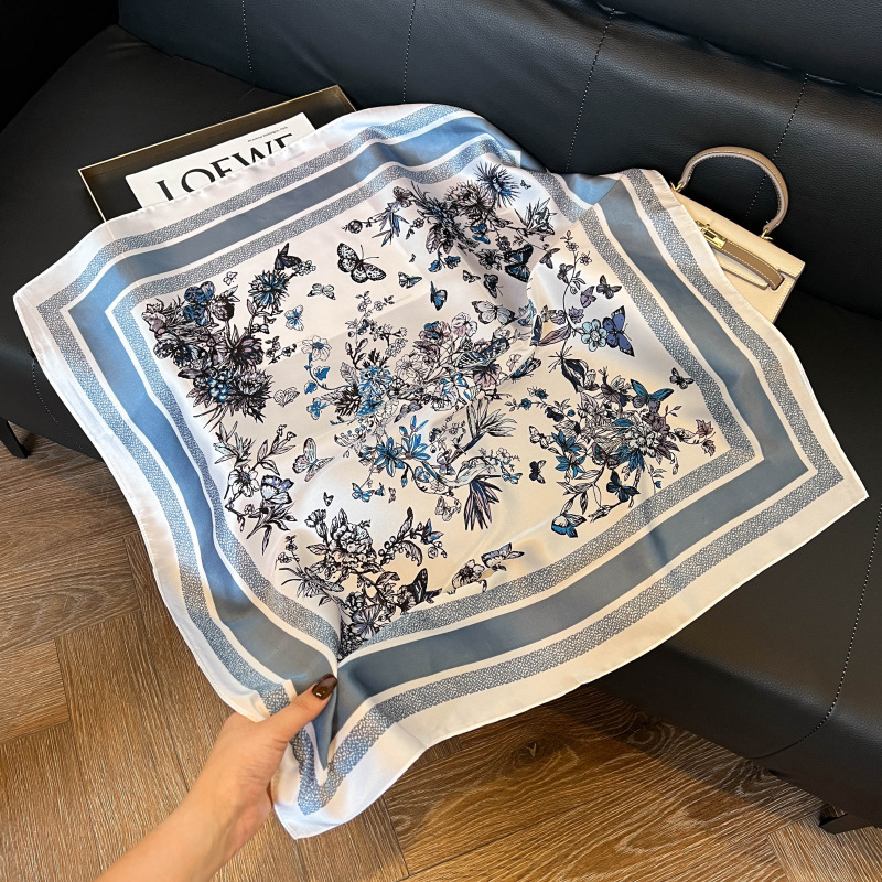 2026년 신상 블루 실크 스카프, 고급스러운 여성용 목 스카프, 봄 가을 레트로 스카프, 가방 장식용, 해외 도매스토어 가기