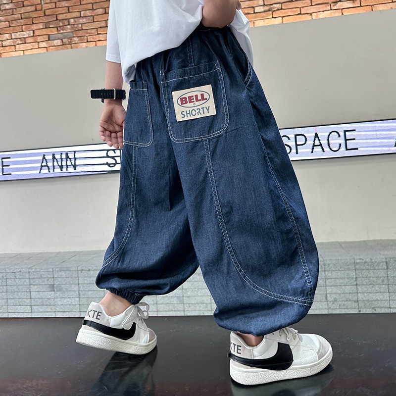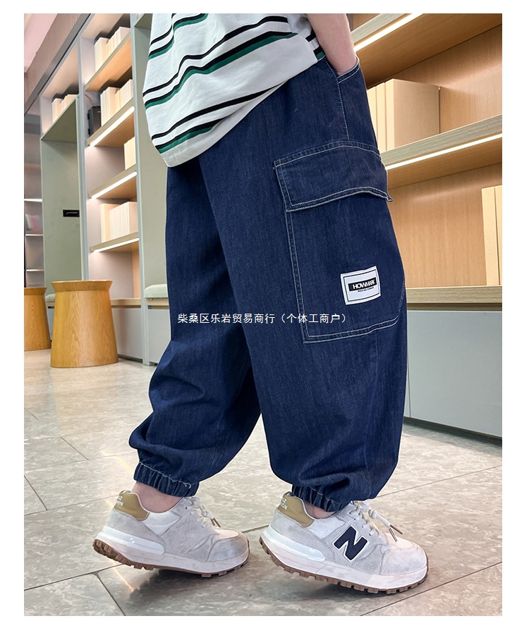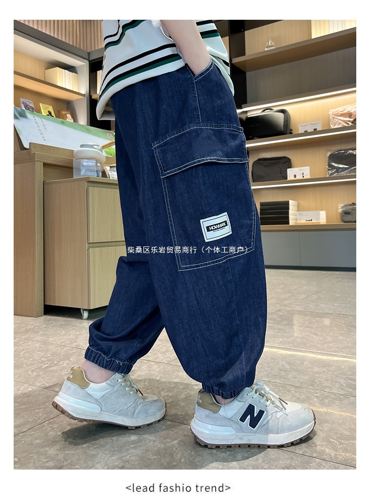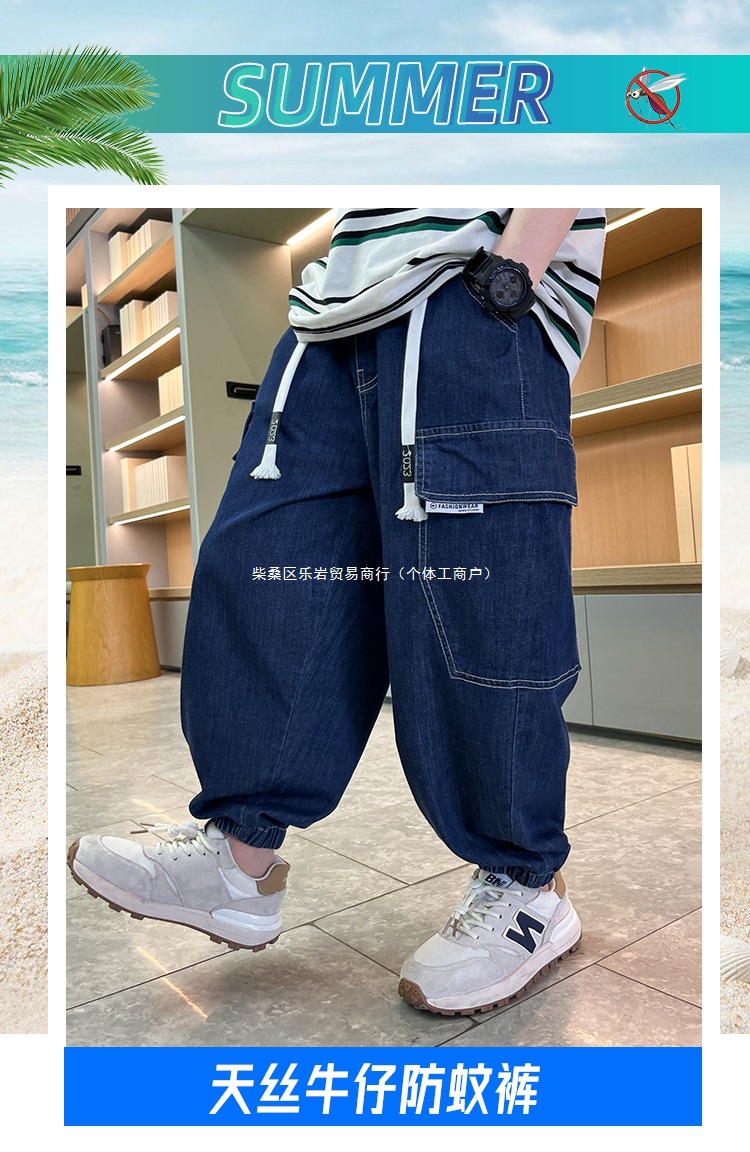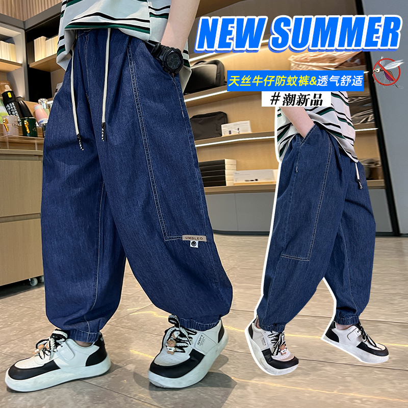 소년 텐셀 청바지 여름 얇은 2025 새로운 유행 어린이 모기 방지 바지 느슨한 소년화물 바지 도매스토어 가기