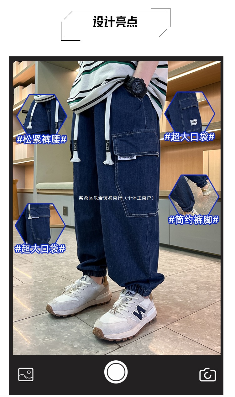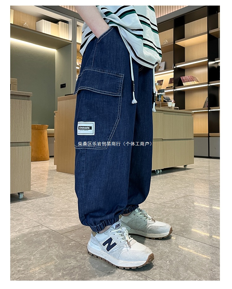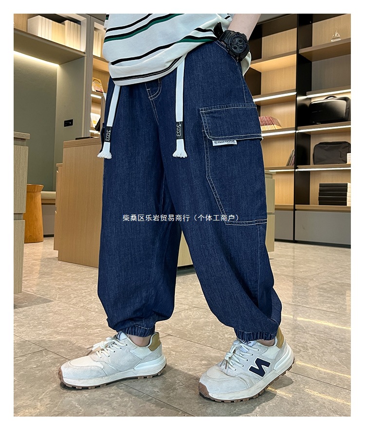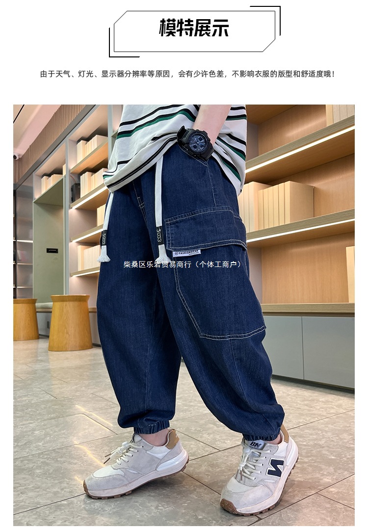 소년 텐셀 청바지 여름 얇은 2025 새로운 유행 어린이 모기 방지 바지 느슨한 소년화물 바지 도매스토어 가기