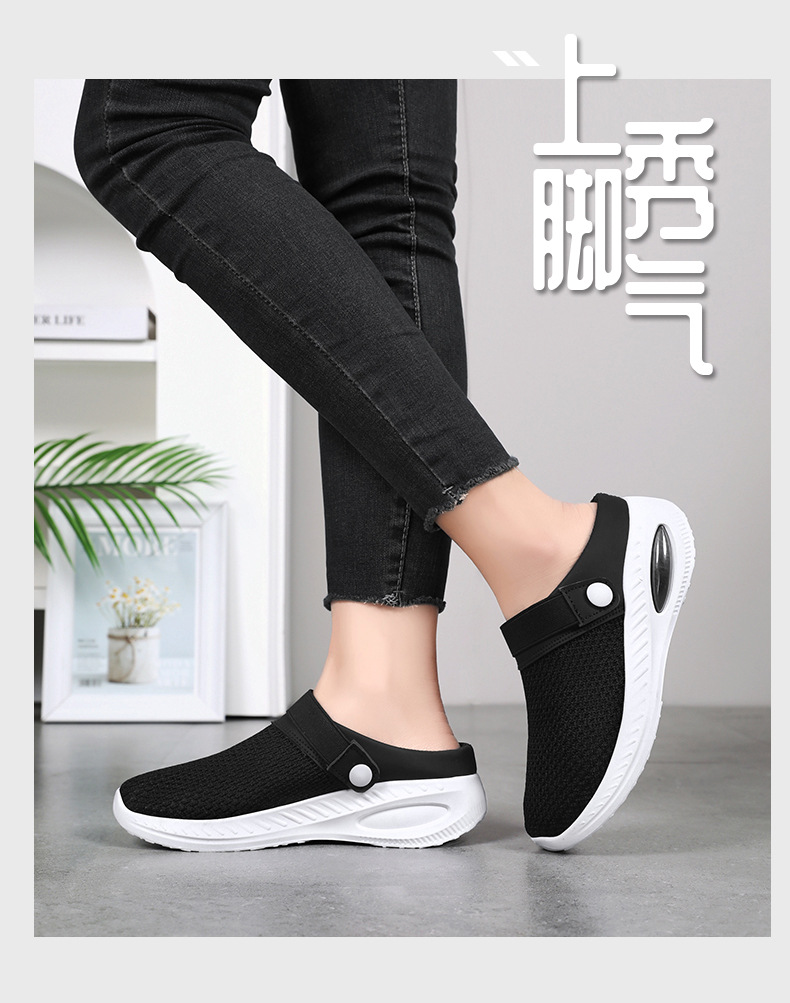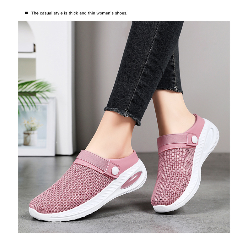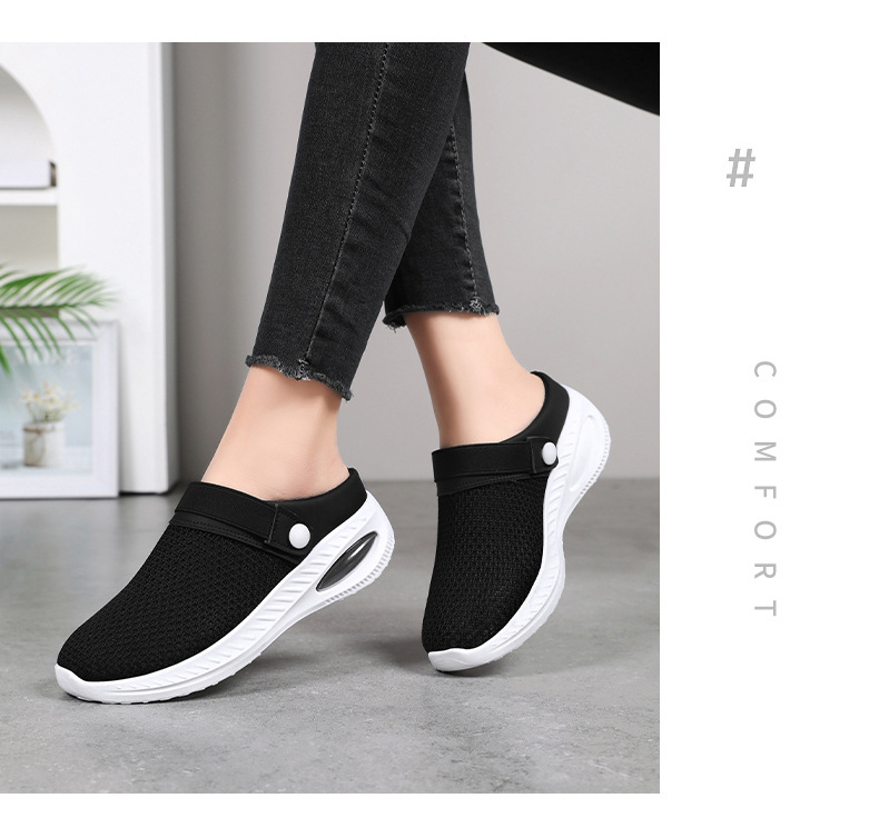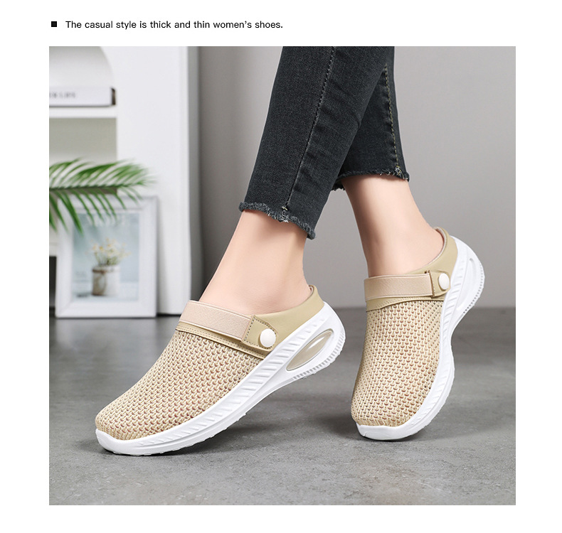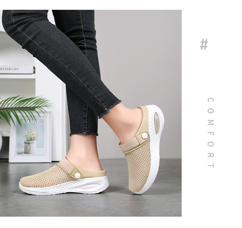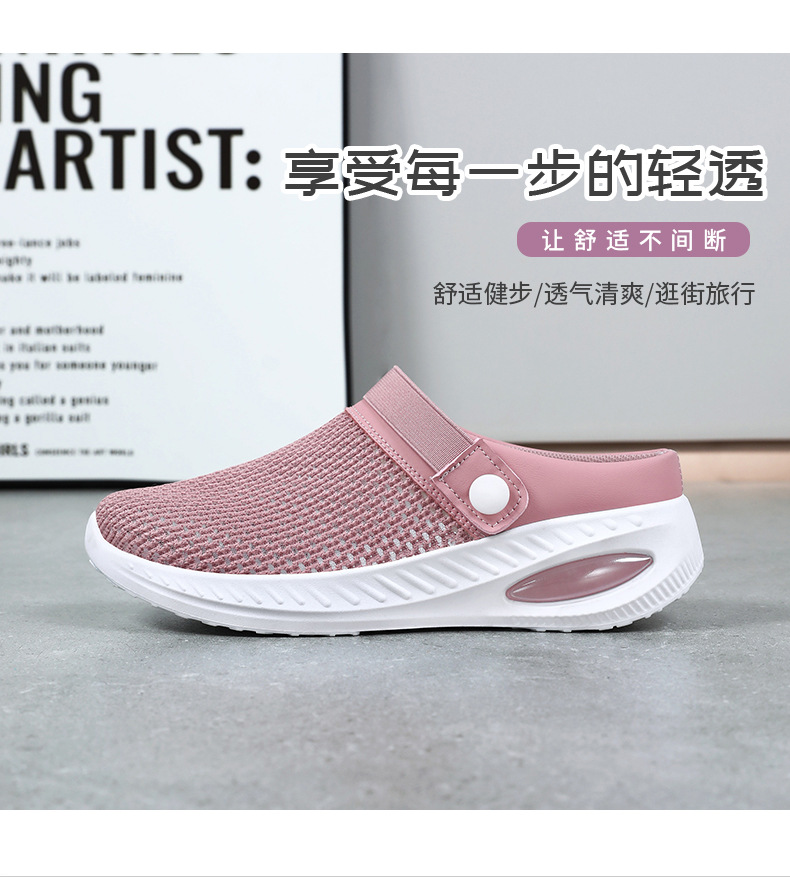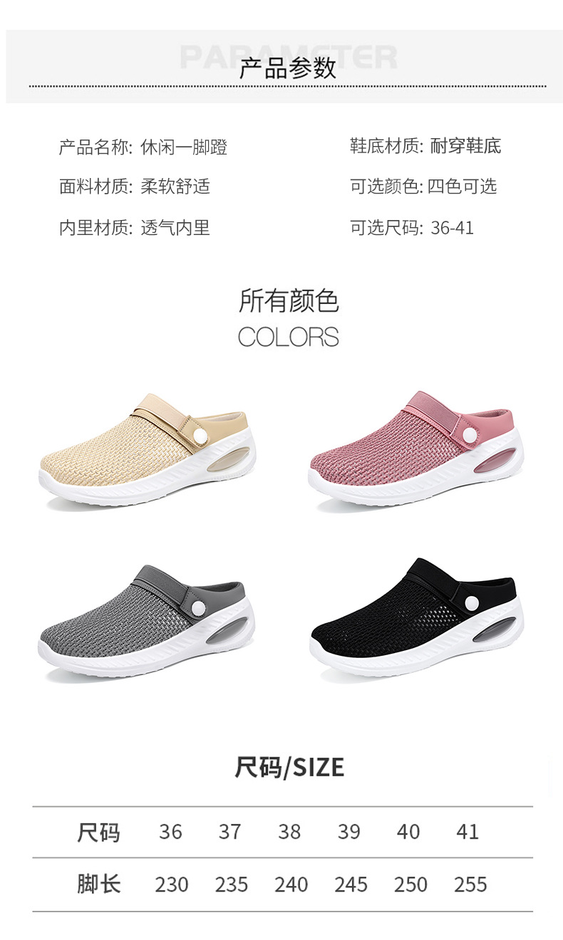 여성 신발 여름 신작 캐주얼 슬리퍼 플라이 짠 통기성 크로스 보더 여성 신발 슬립 온 하프 슬리퍼 여성용 슬리퍼스토어 가기