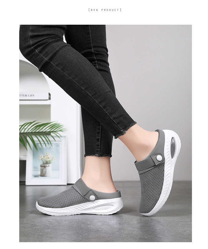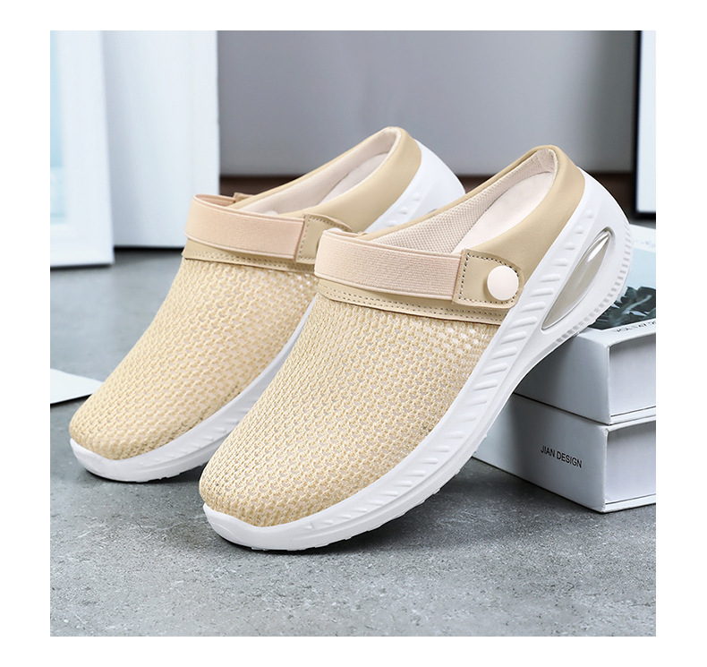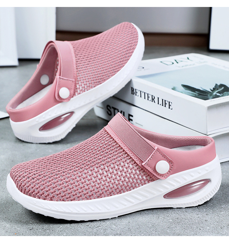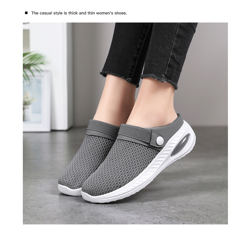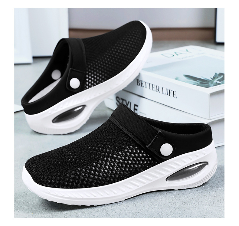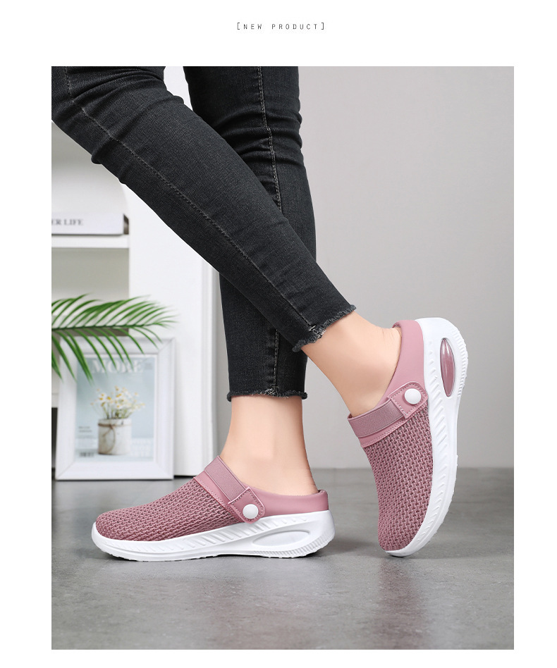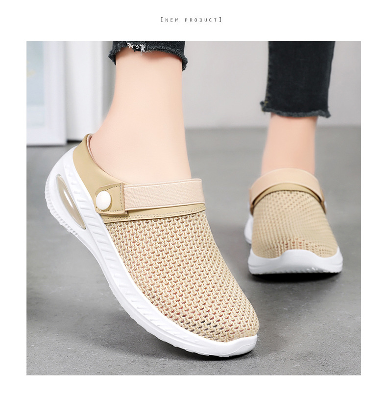 여성 신발 여름 신작 캐주얼 슬리퍼 플라이 짠 통기성 크로스 보더 여성 신발 슬립 온 하프 슬리퍼 여성용 슬리퍼스토어 가기