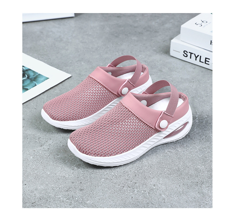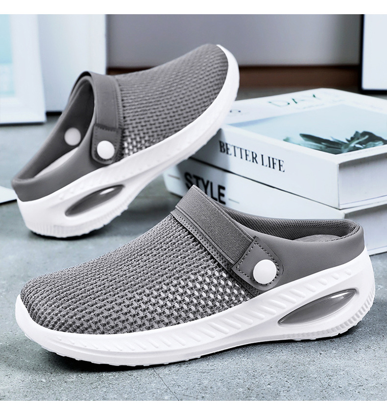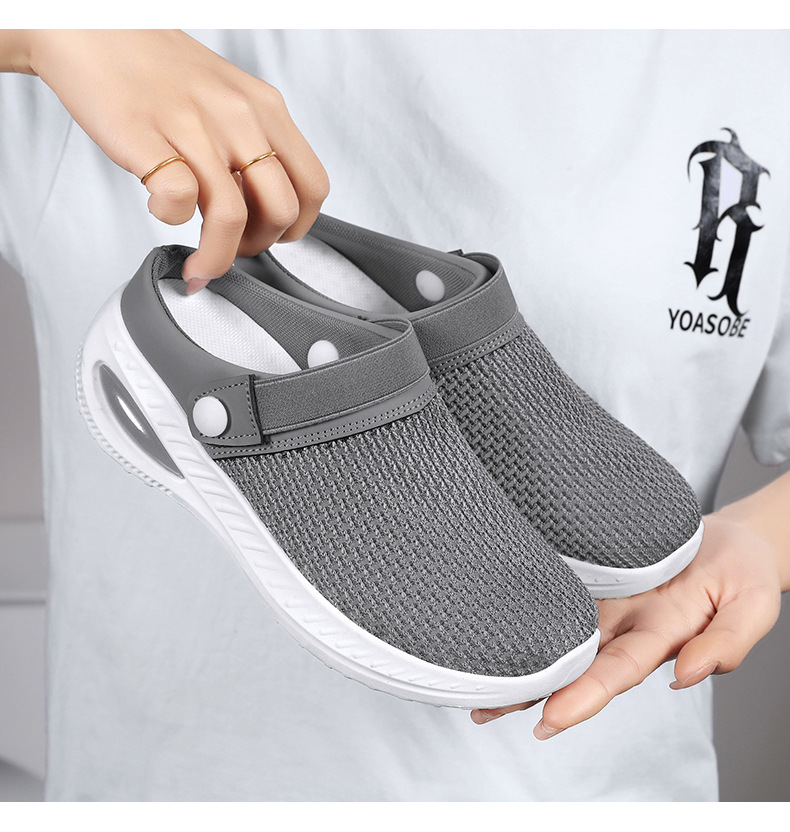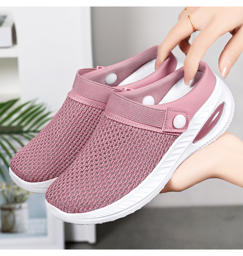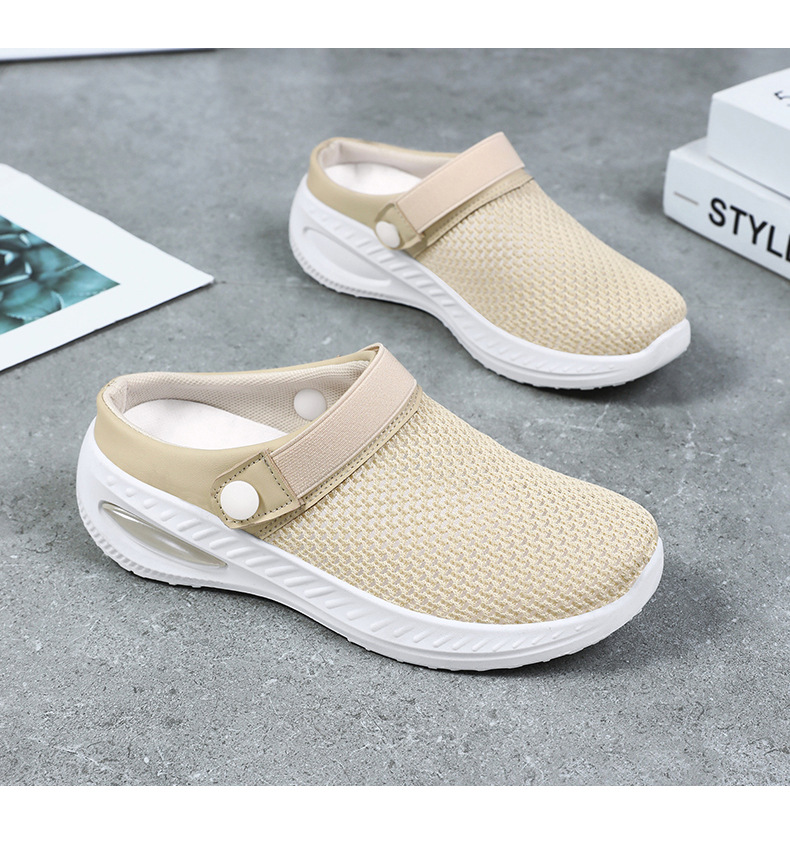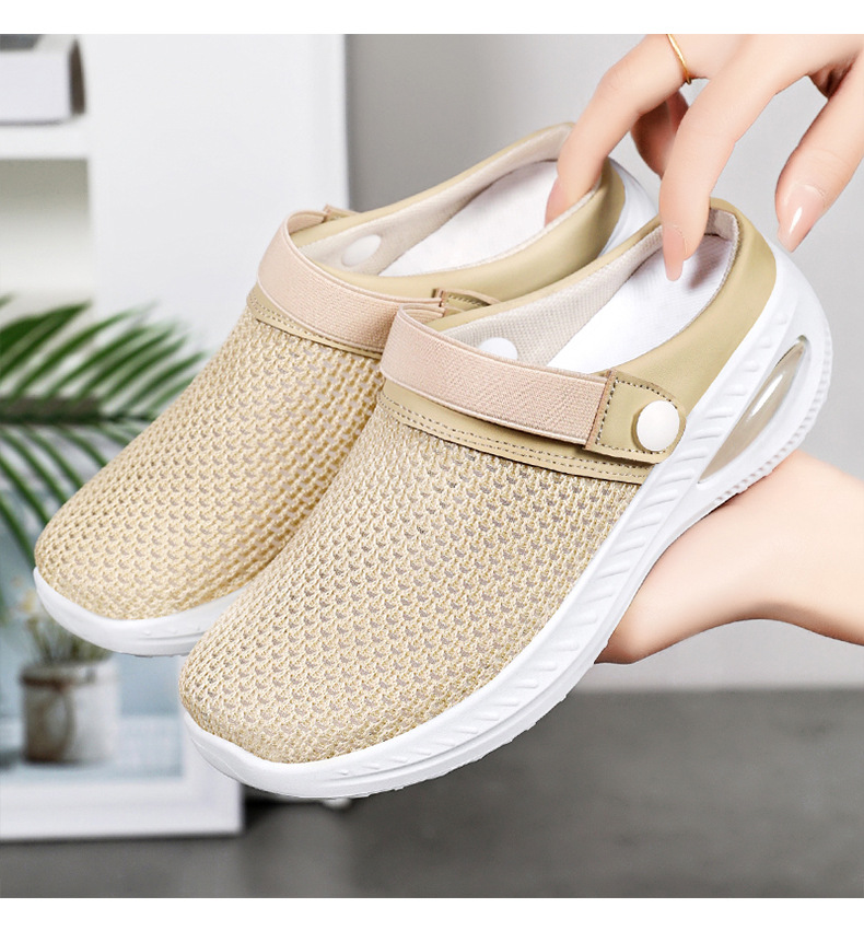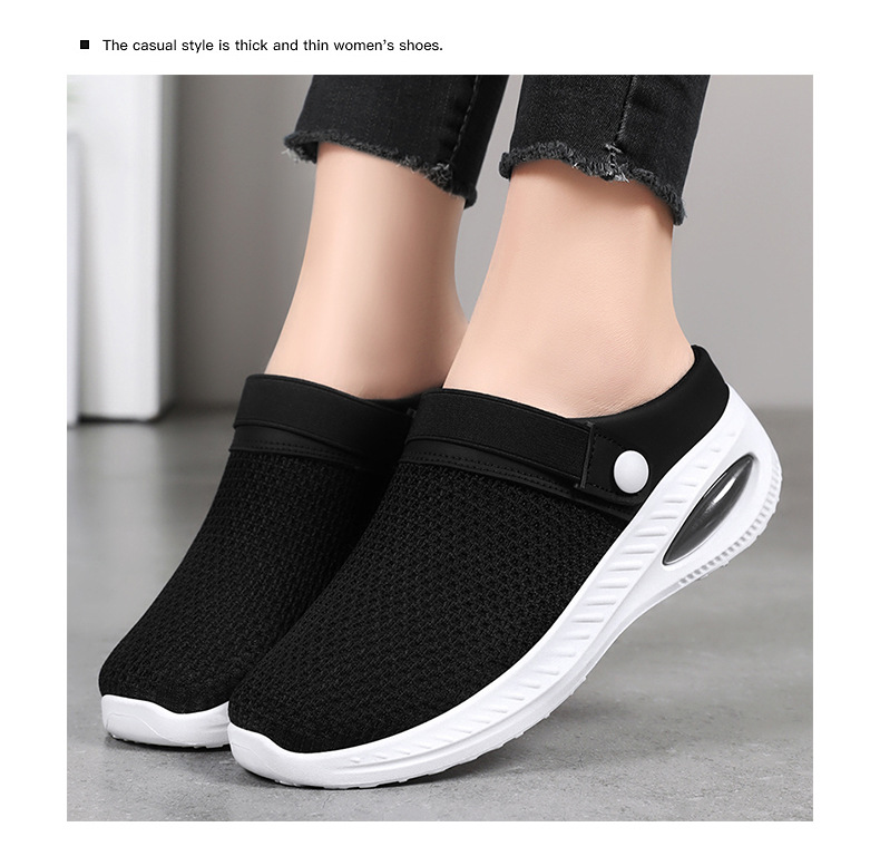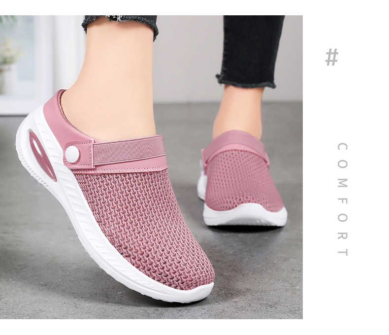 여성 신발 여름 신작 캐주얼 슬리퍼 플라이 짠 통기성 크로스 보더 여성 신발 슬립 온 하프 슬리퍼 여성용 슬리퍼스토어 가기